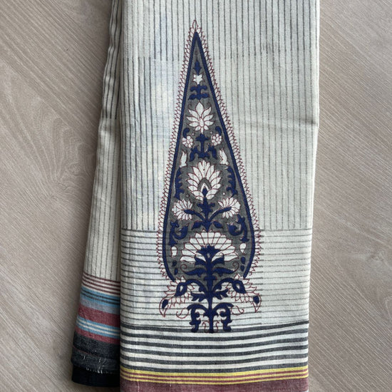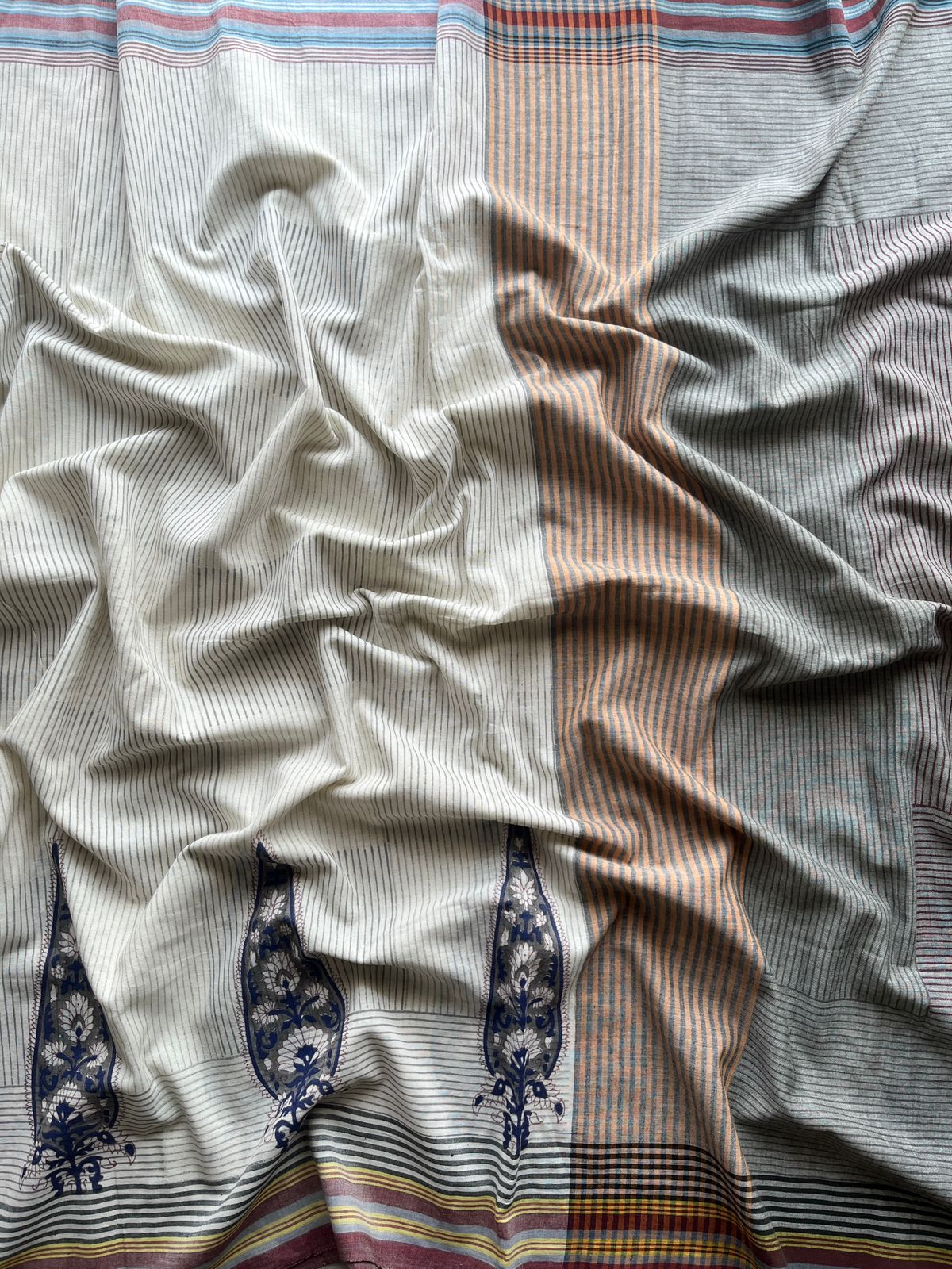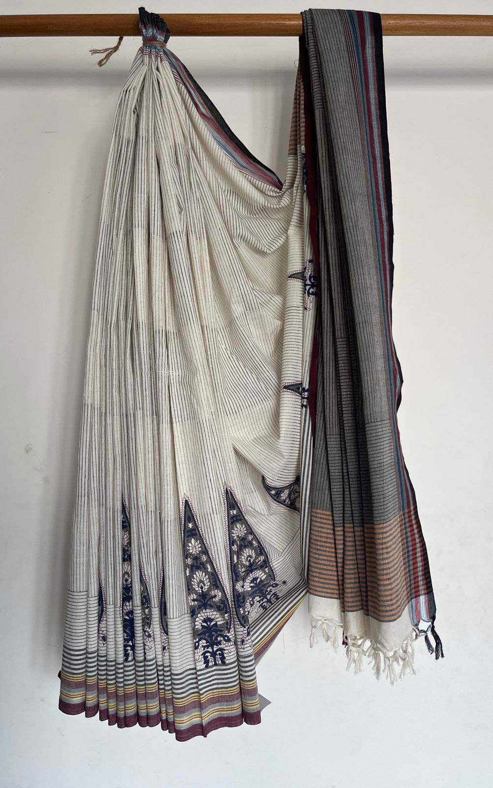 Handblock Printed Handloom Cotton Saree (without blouse)