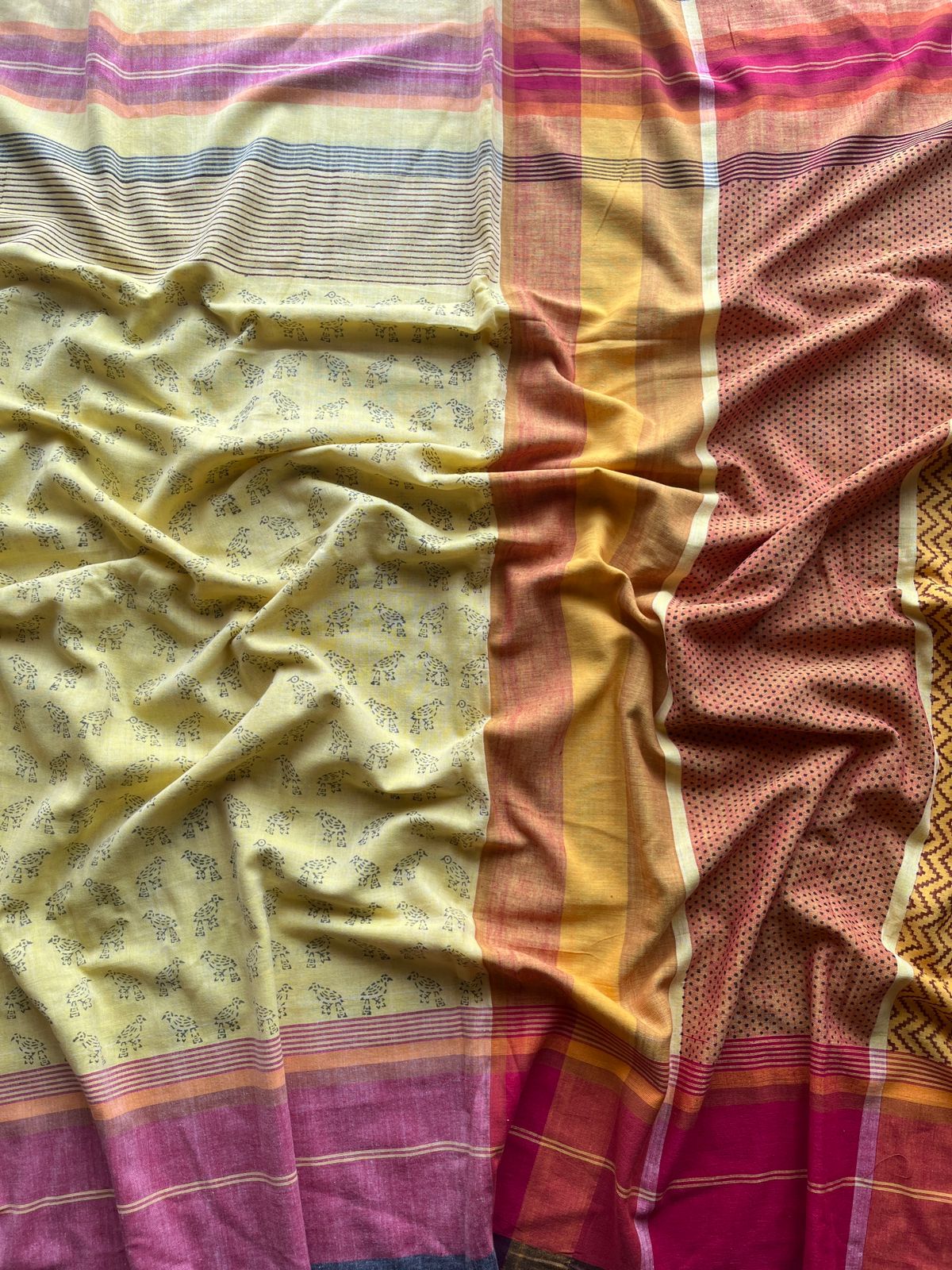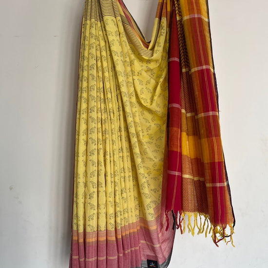 Handblock Printed Handloom Cotton Saree (without blouse)- 28458