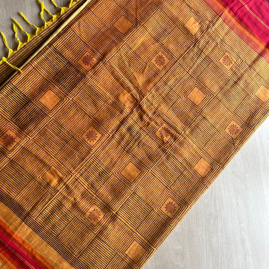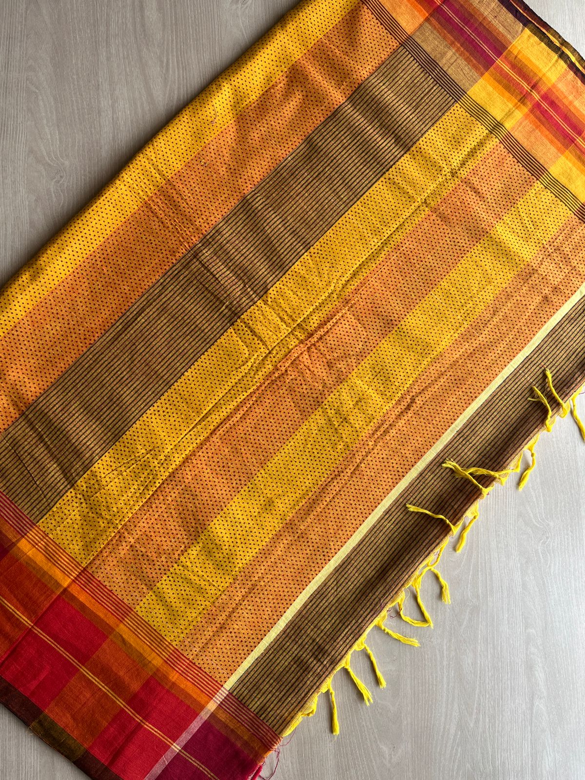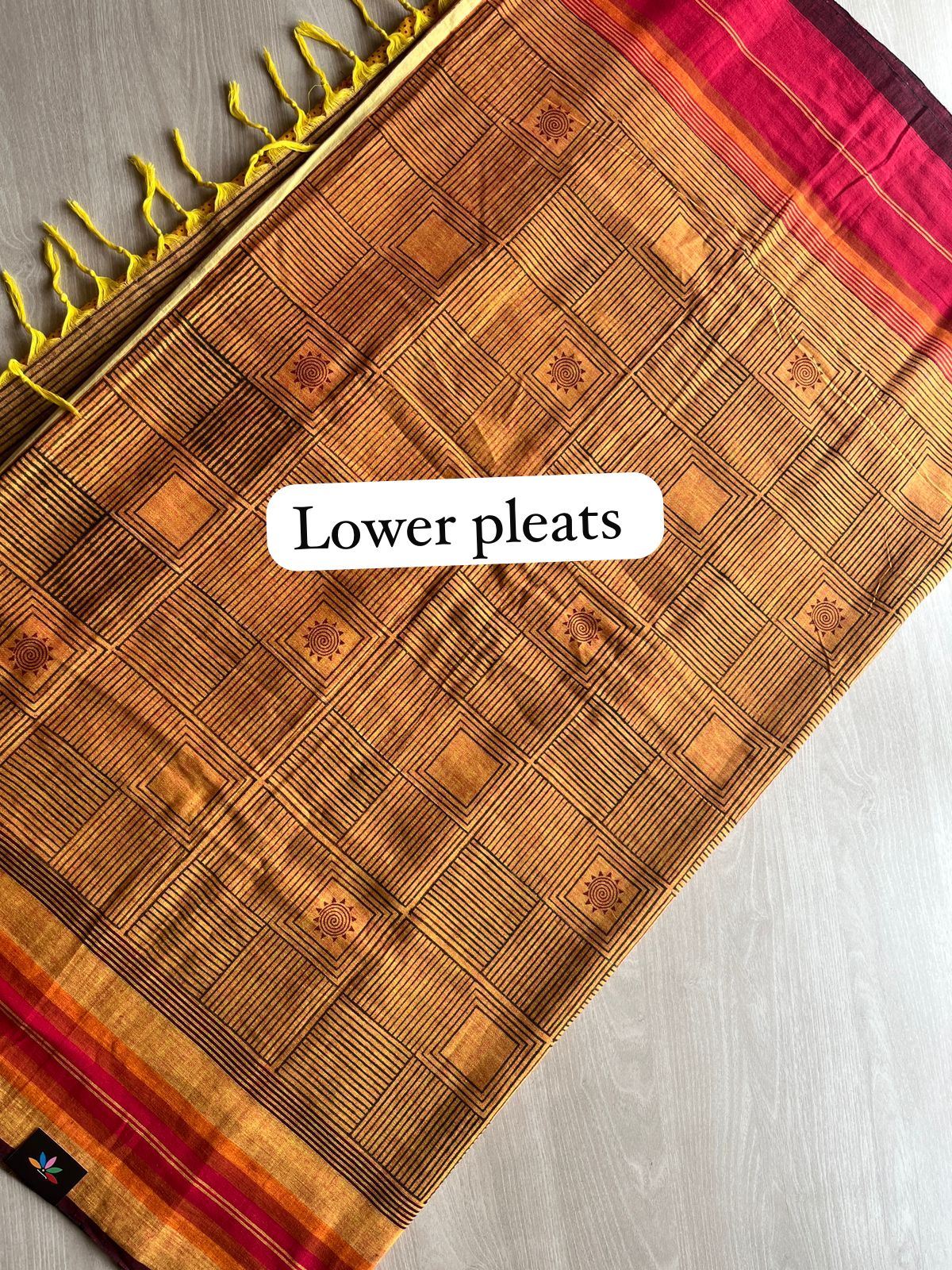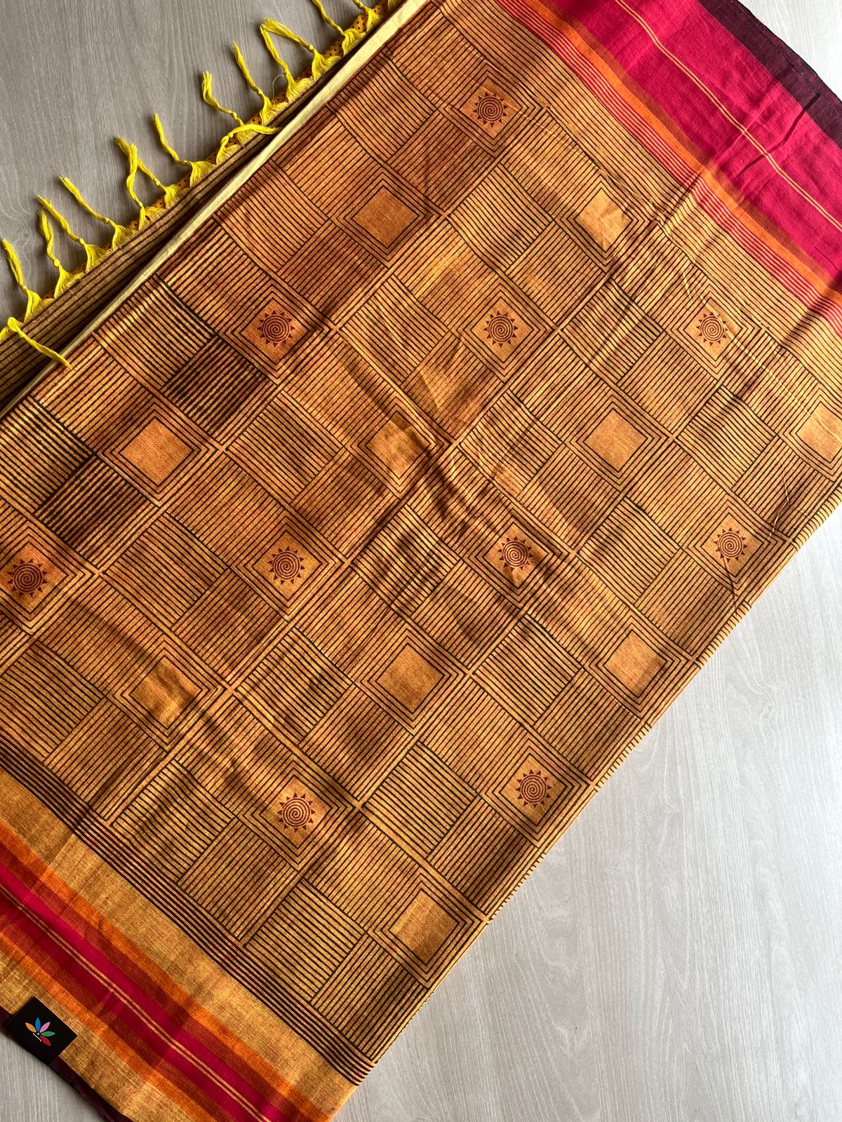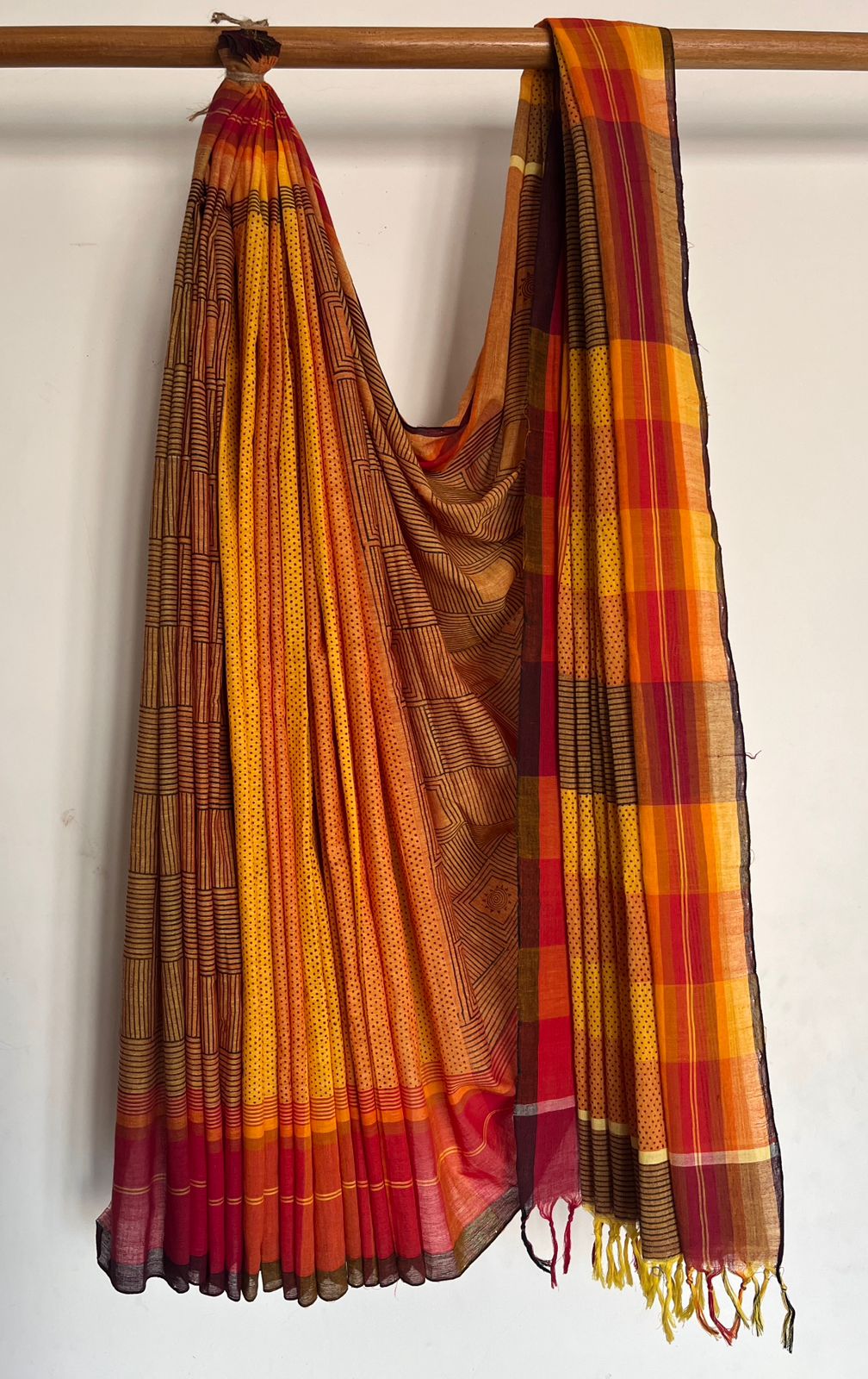 Handblock Printed Handloom Cotton Saree (without blouse)- 28459