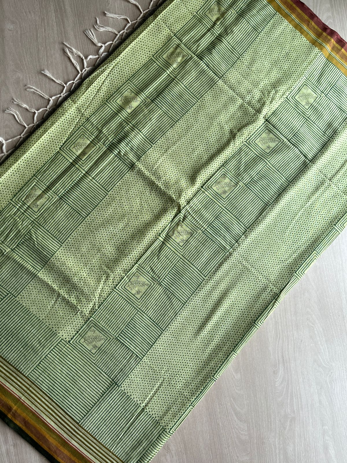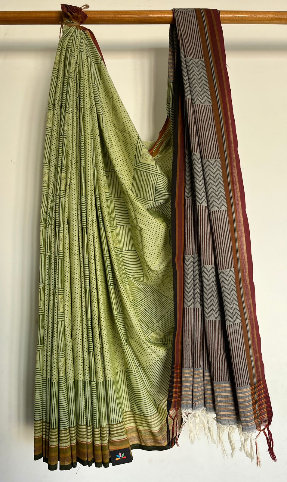 Handblock Printed Handloom Cotton Saree (without blouse)