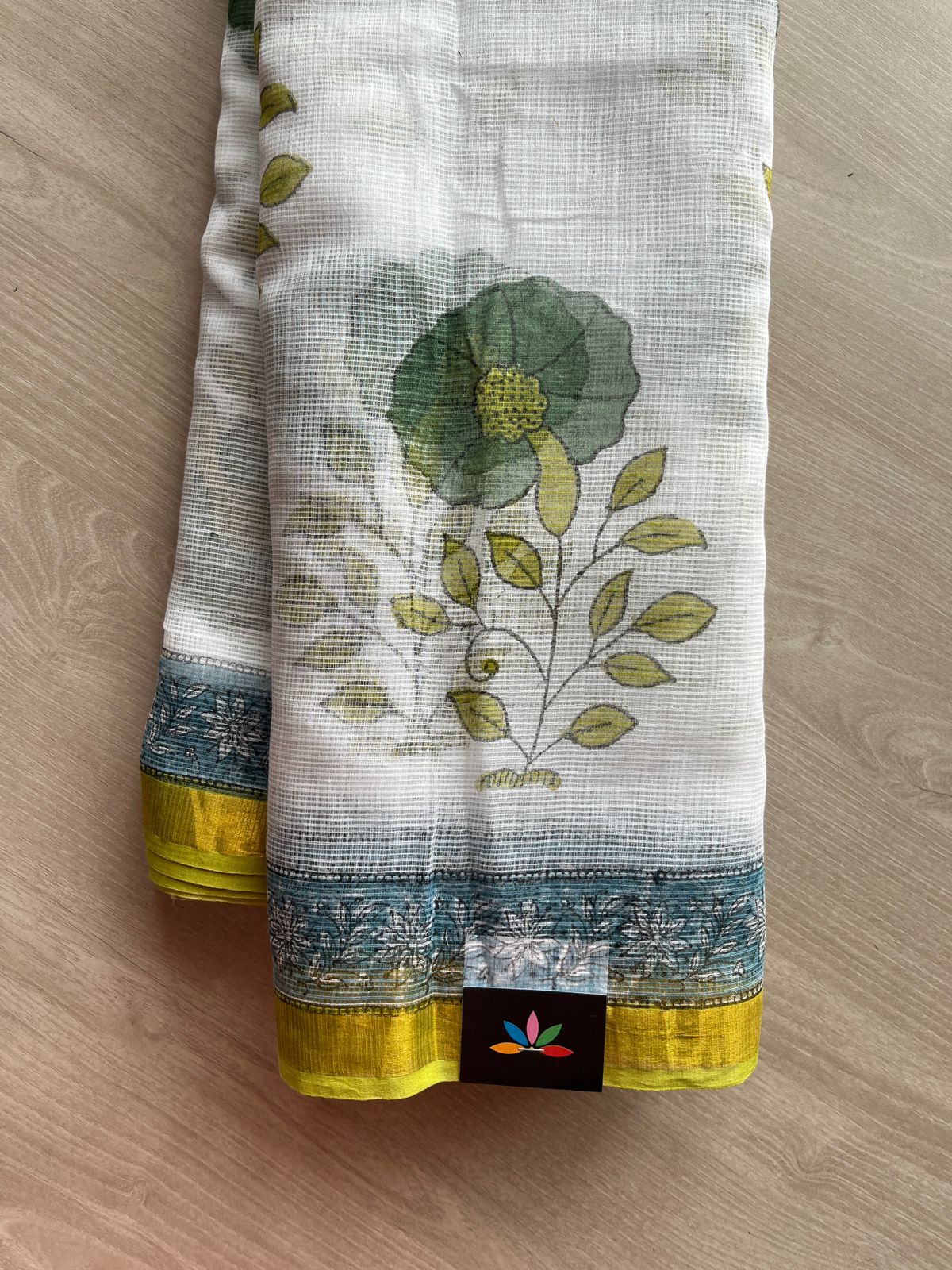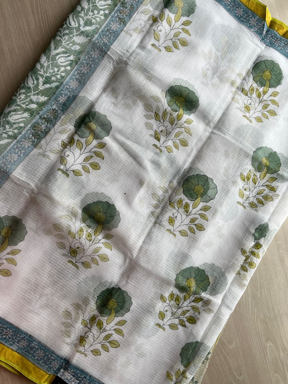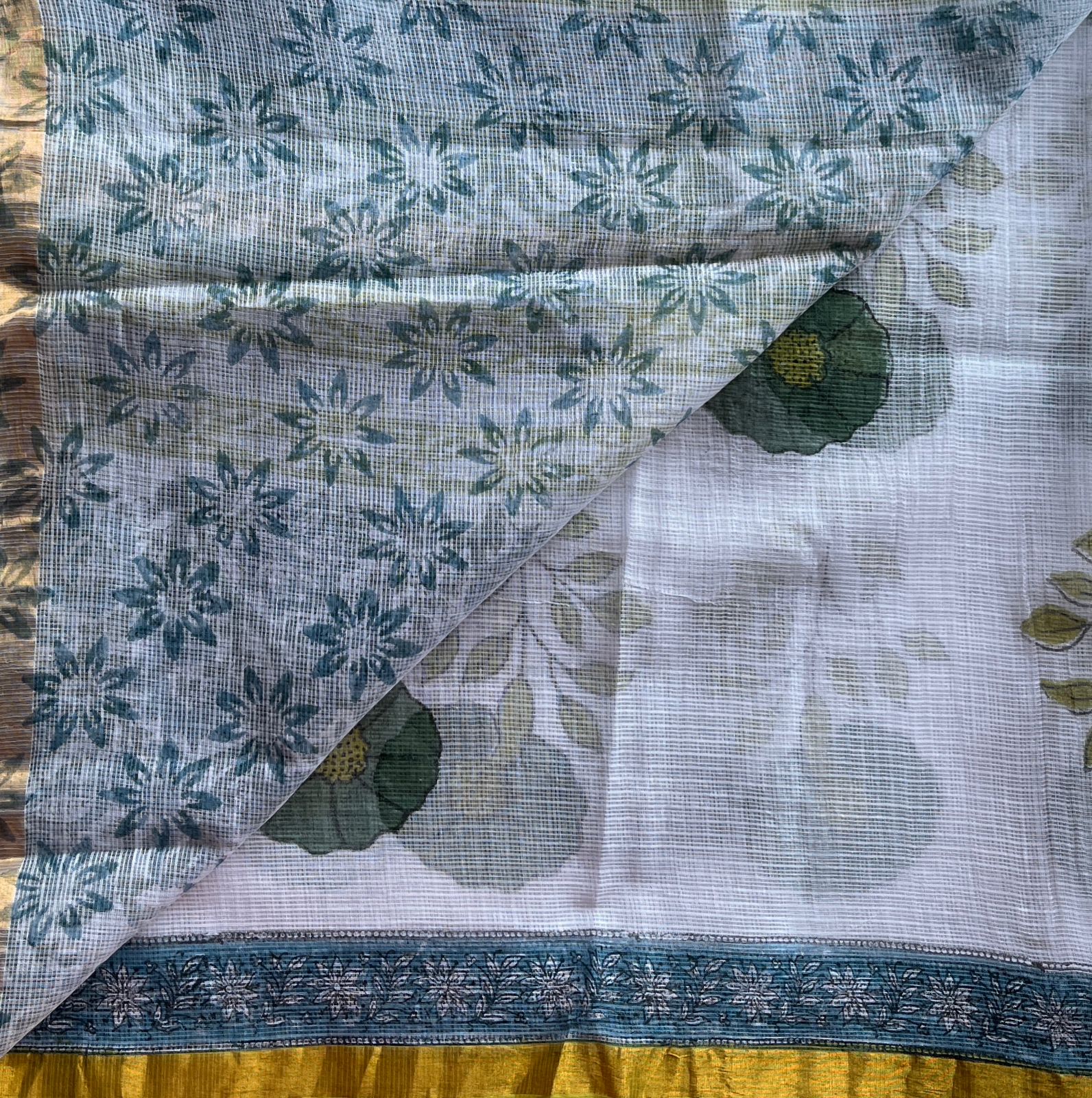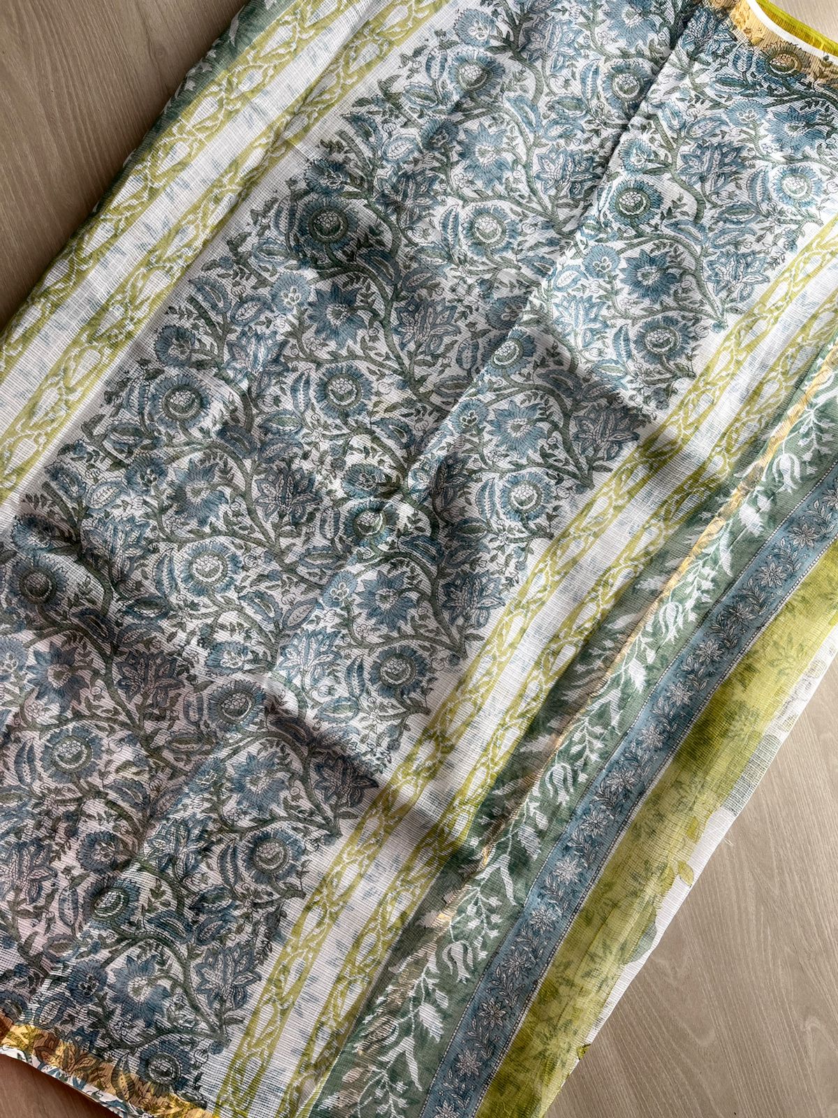 Handblock Printed Kota Doria Saree - 23961- 23962