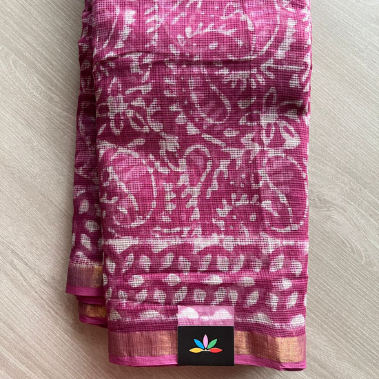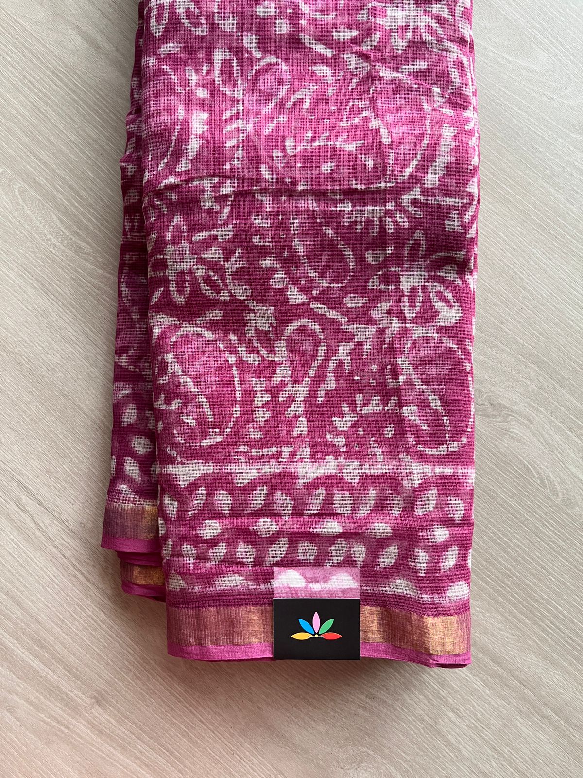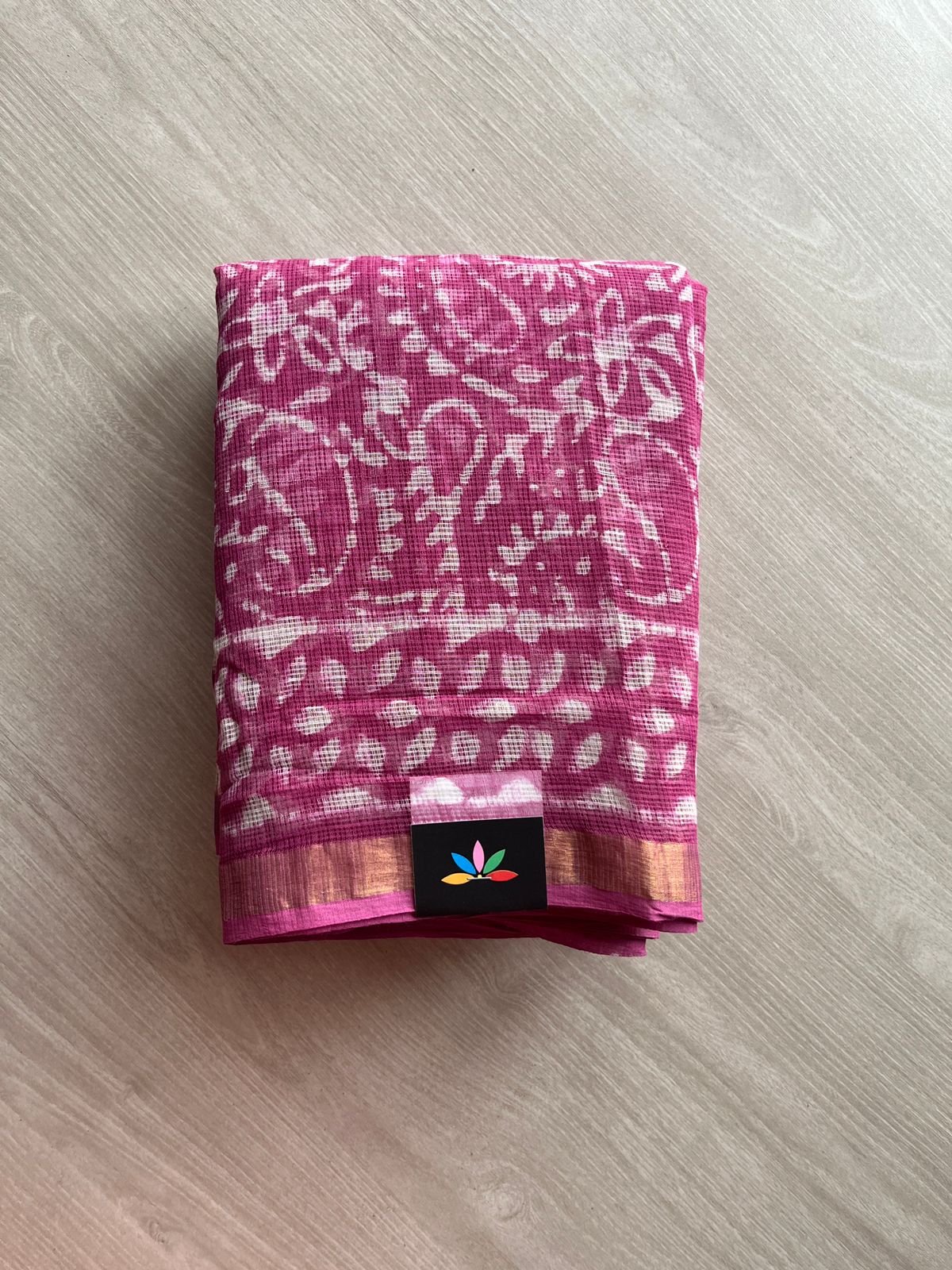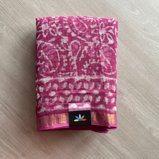 Handblock Printed Kota Doria Saree - 23977 - 23978