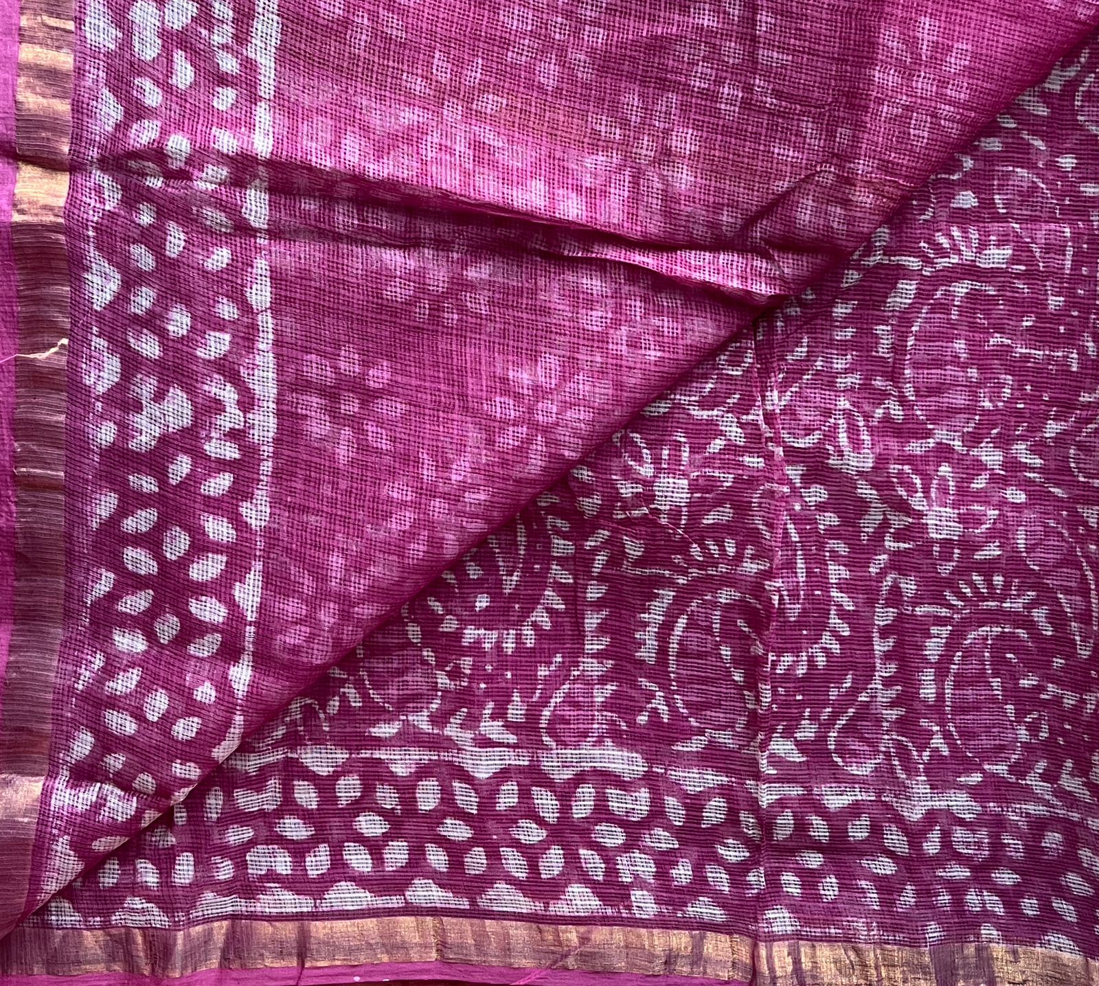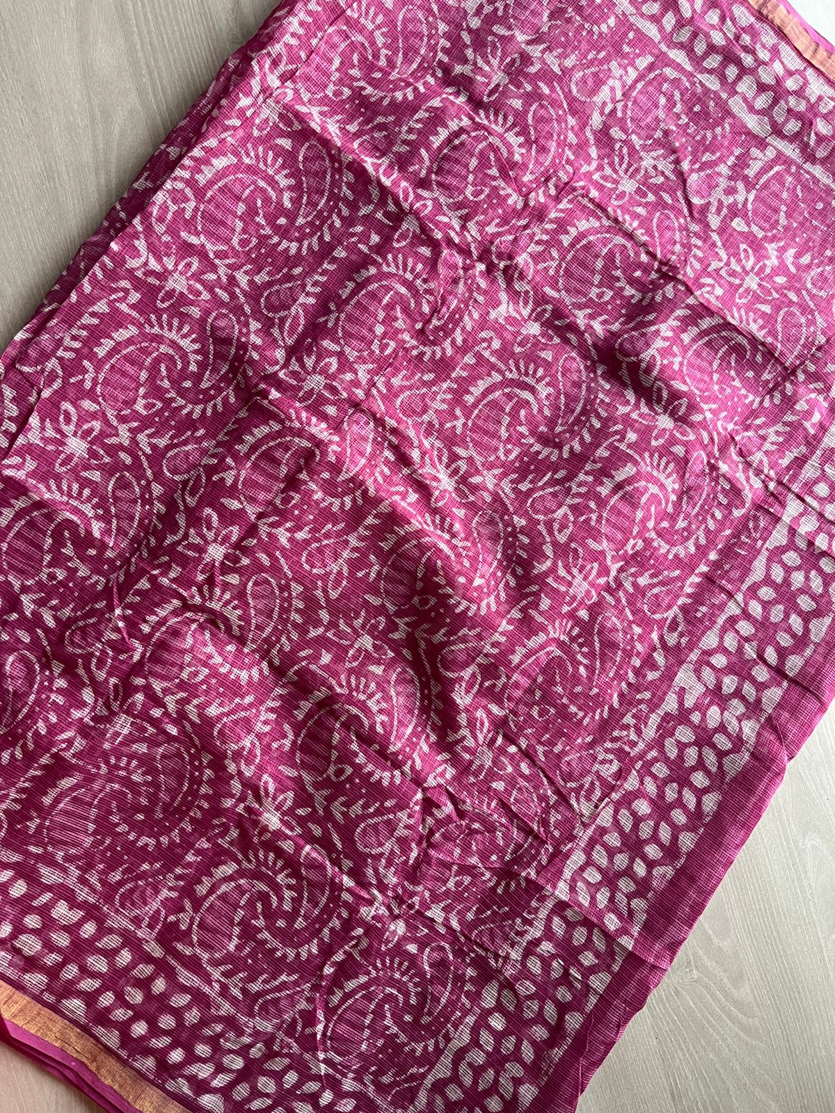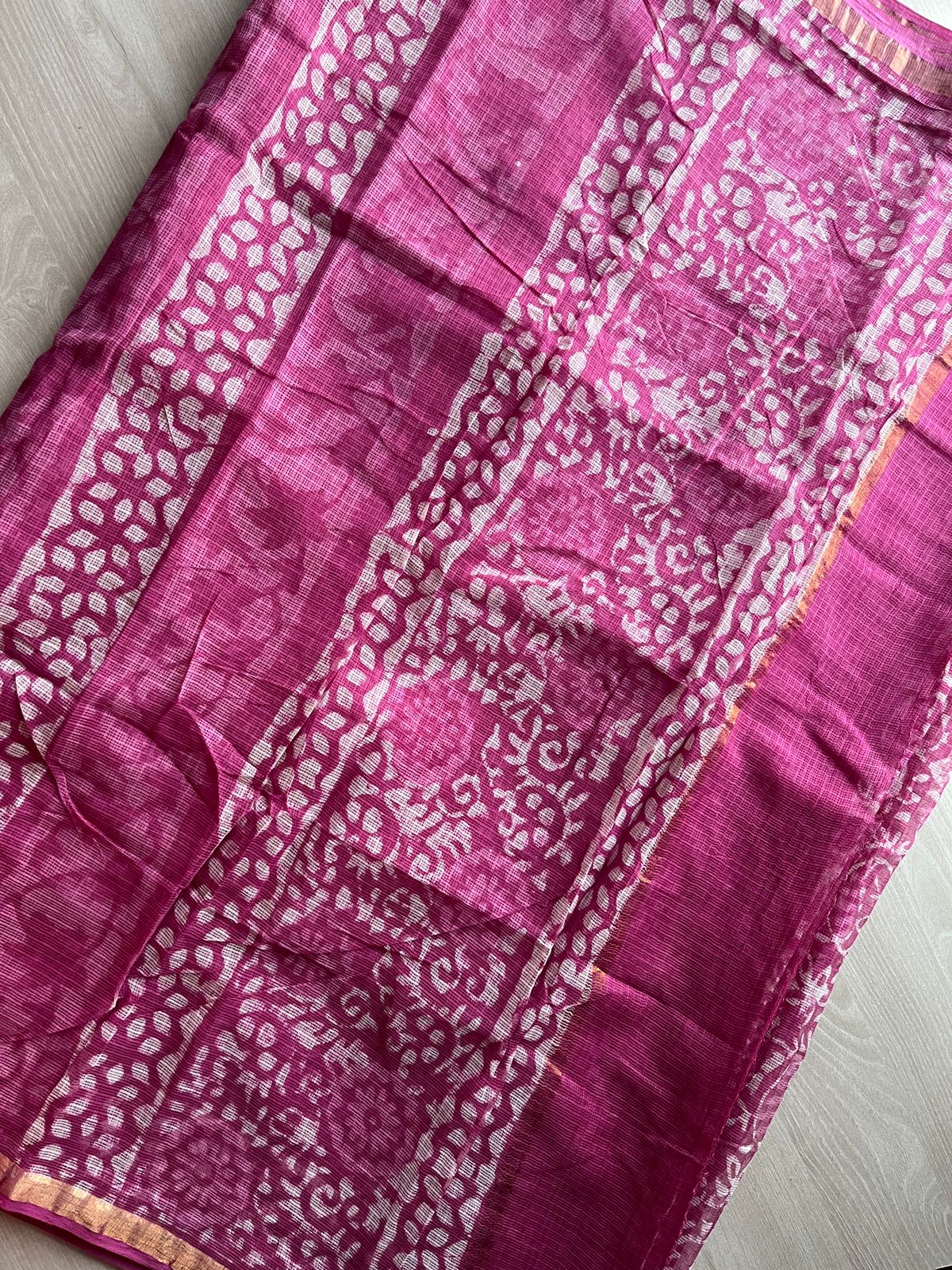 Handblock Printed Kota Doria Saree - 23977 - 23978