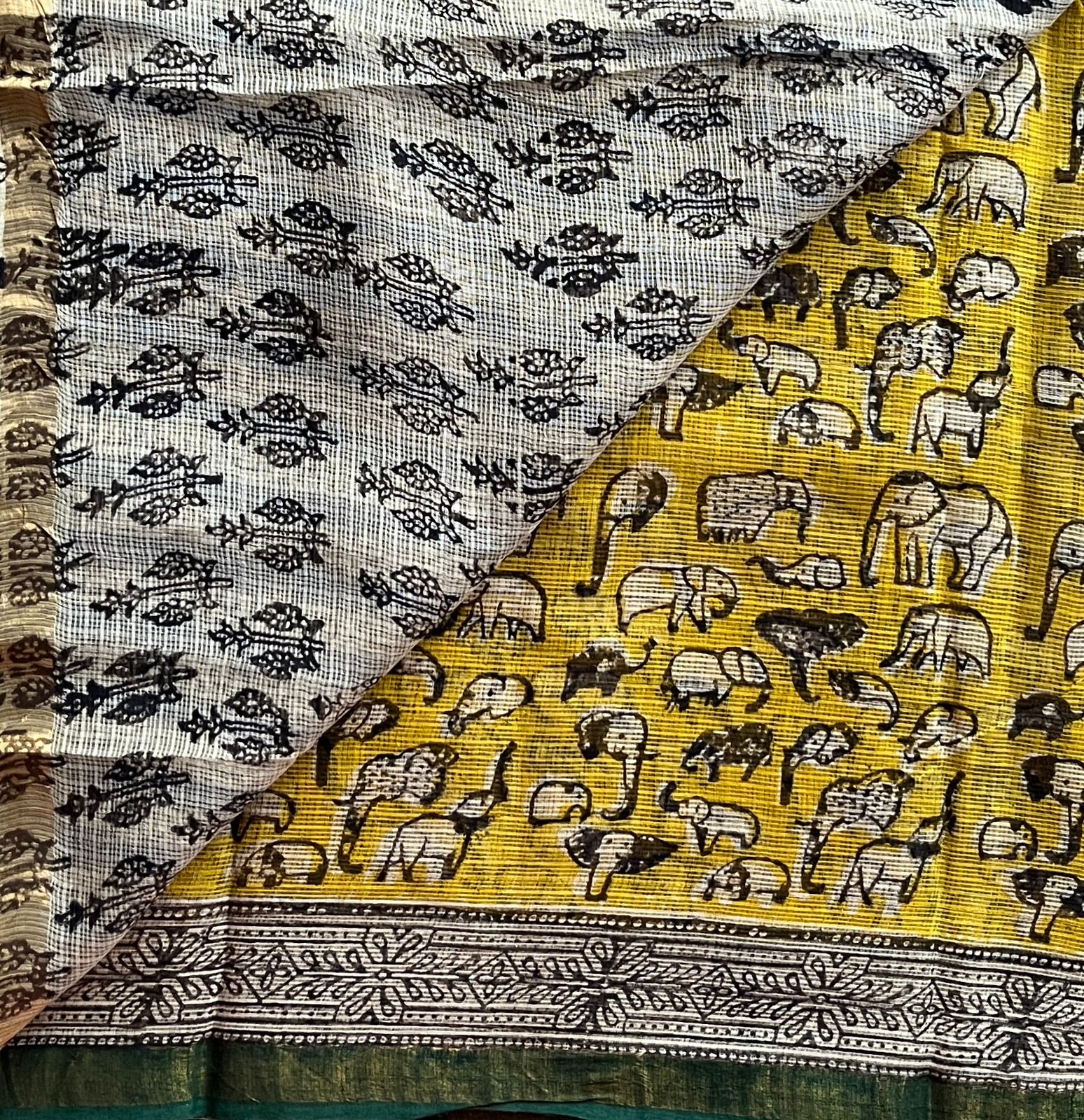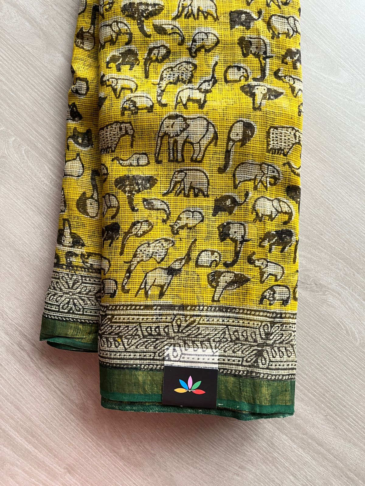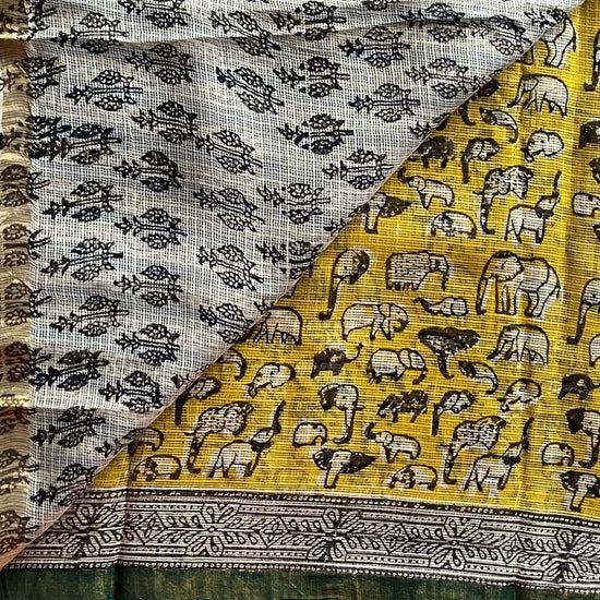 Handblock Printed Kota Doria Saree - 23981 - 23982