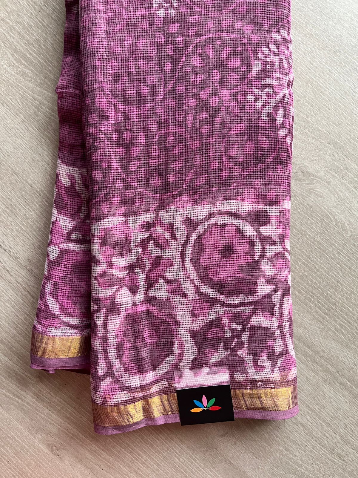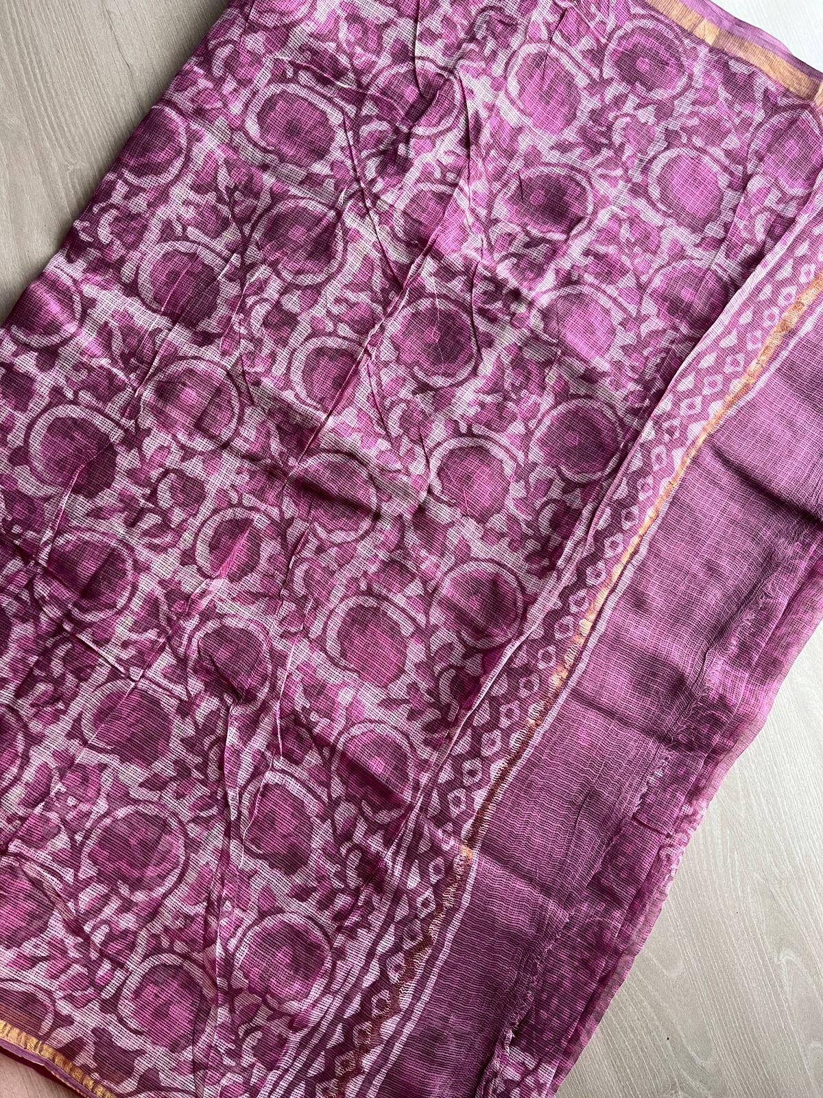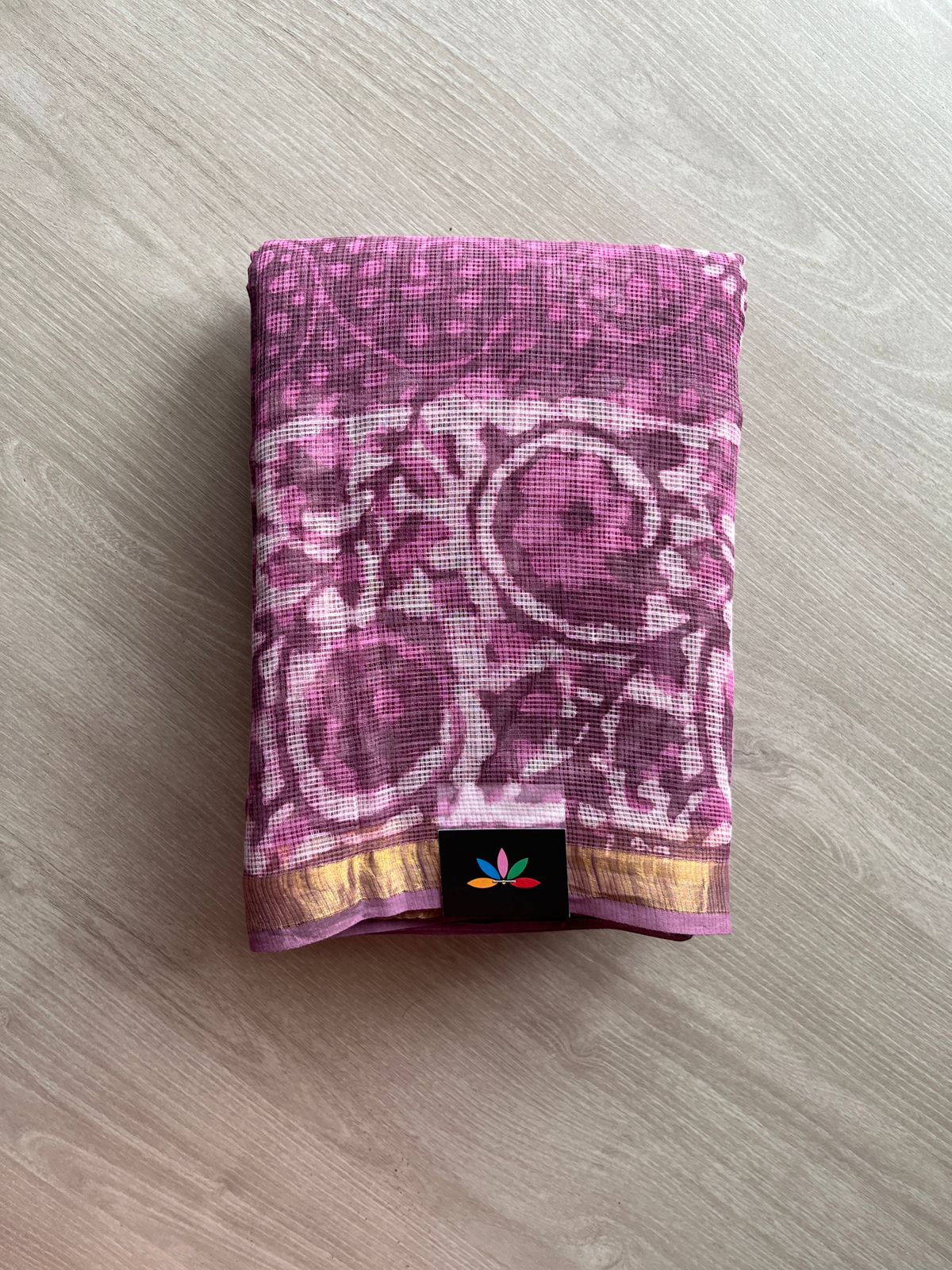Handblock Printed Kota Doria Saree - 23989 - 23990
