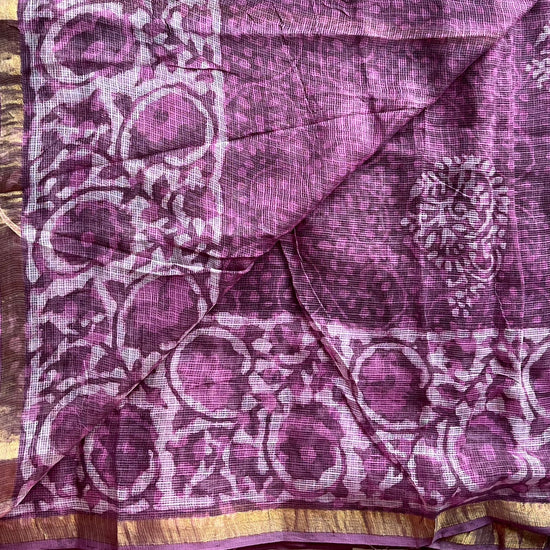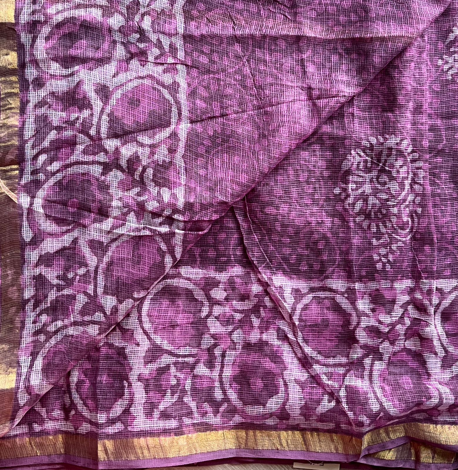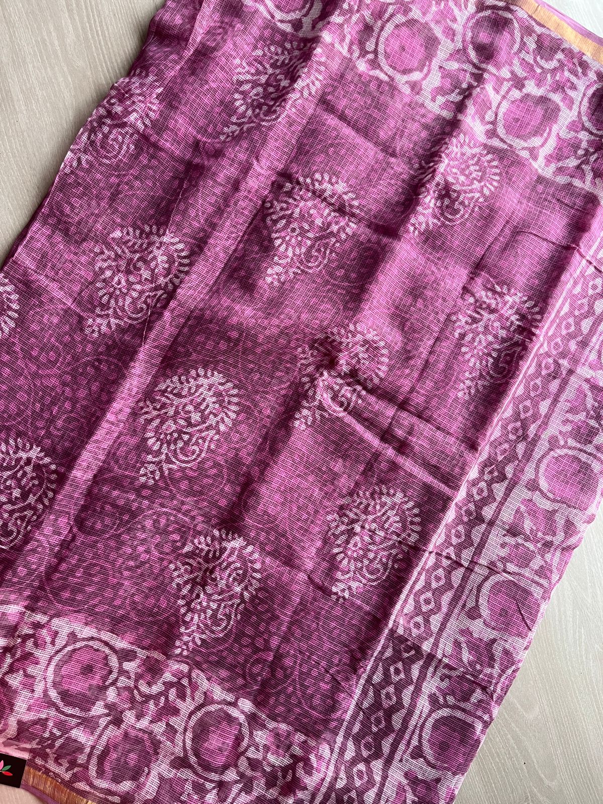 Handblock Printed Kota Doria Saree - 23989 - 23990