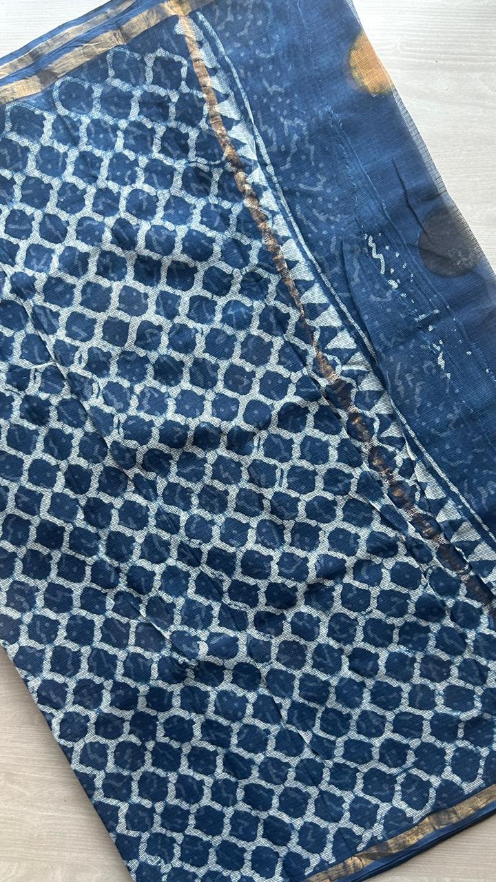 Handblock Printed Kota Doria Saree