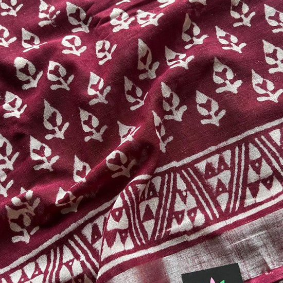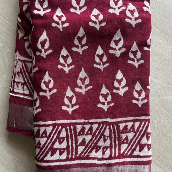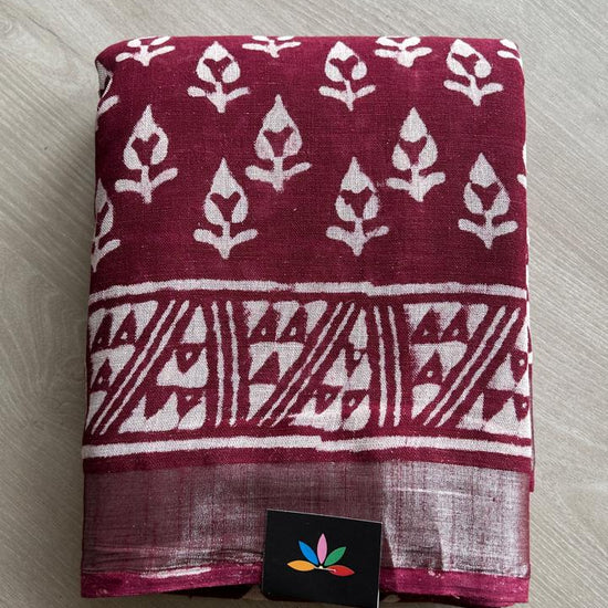Handblock Printed Linen Cotton Saree-24559-24560