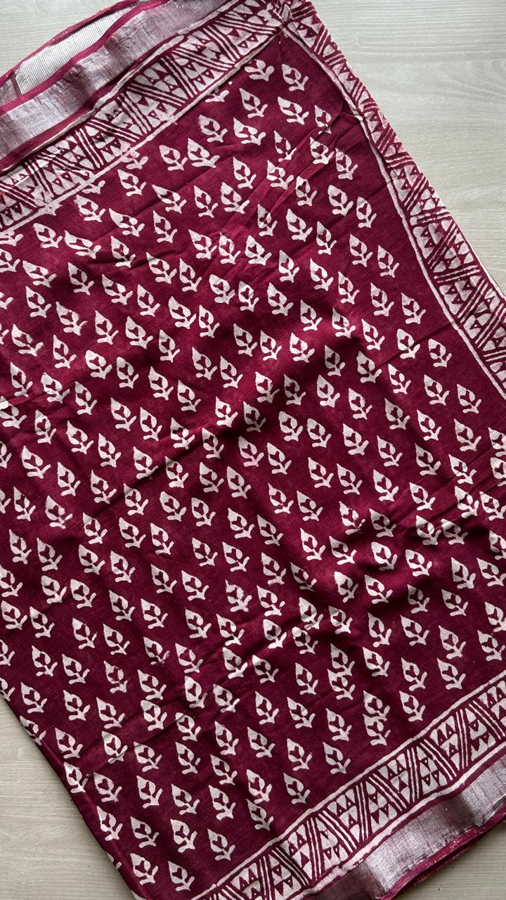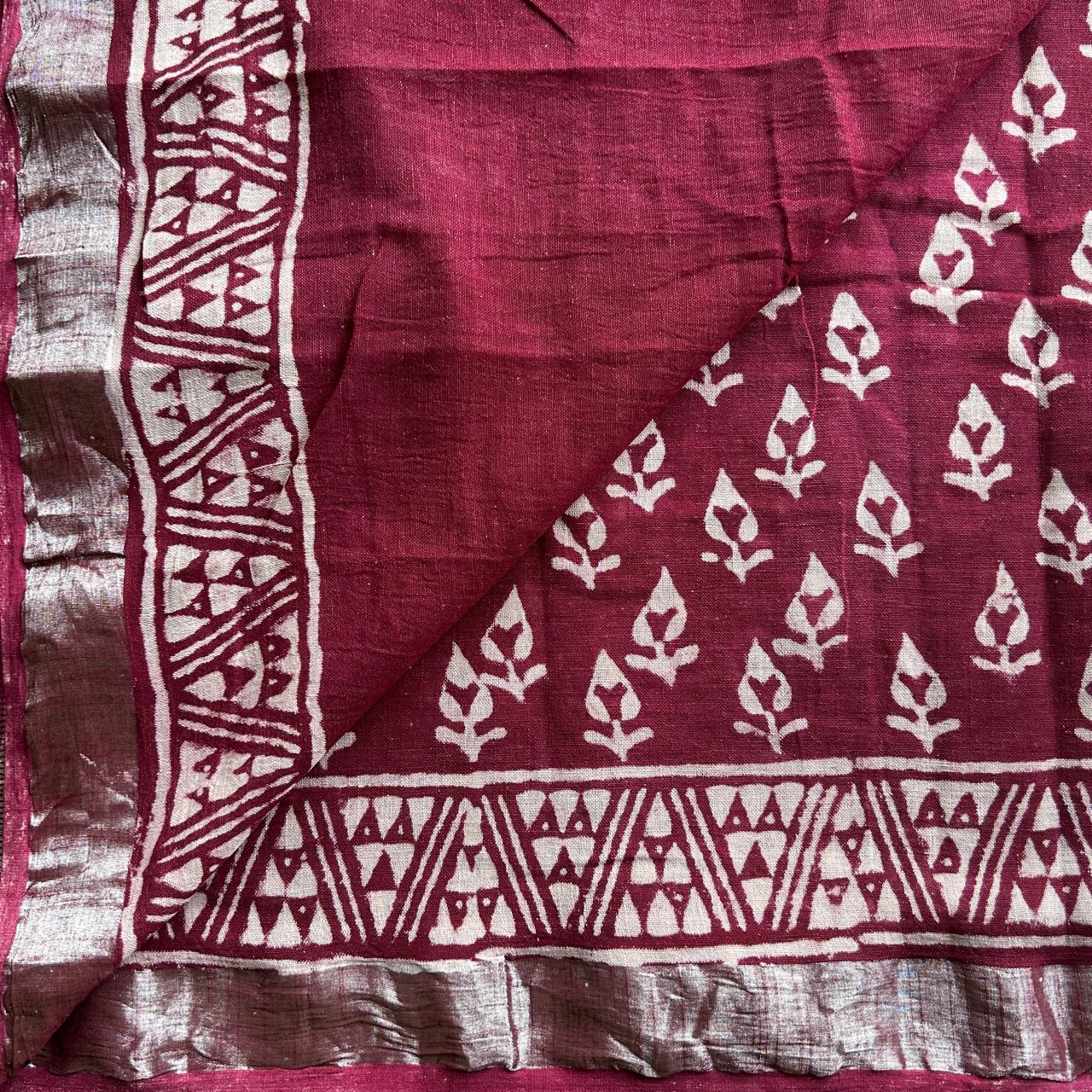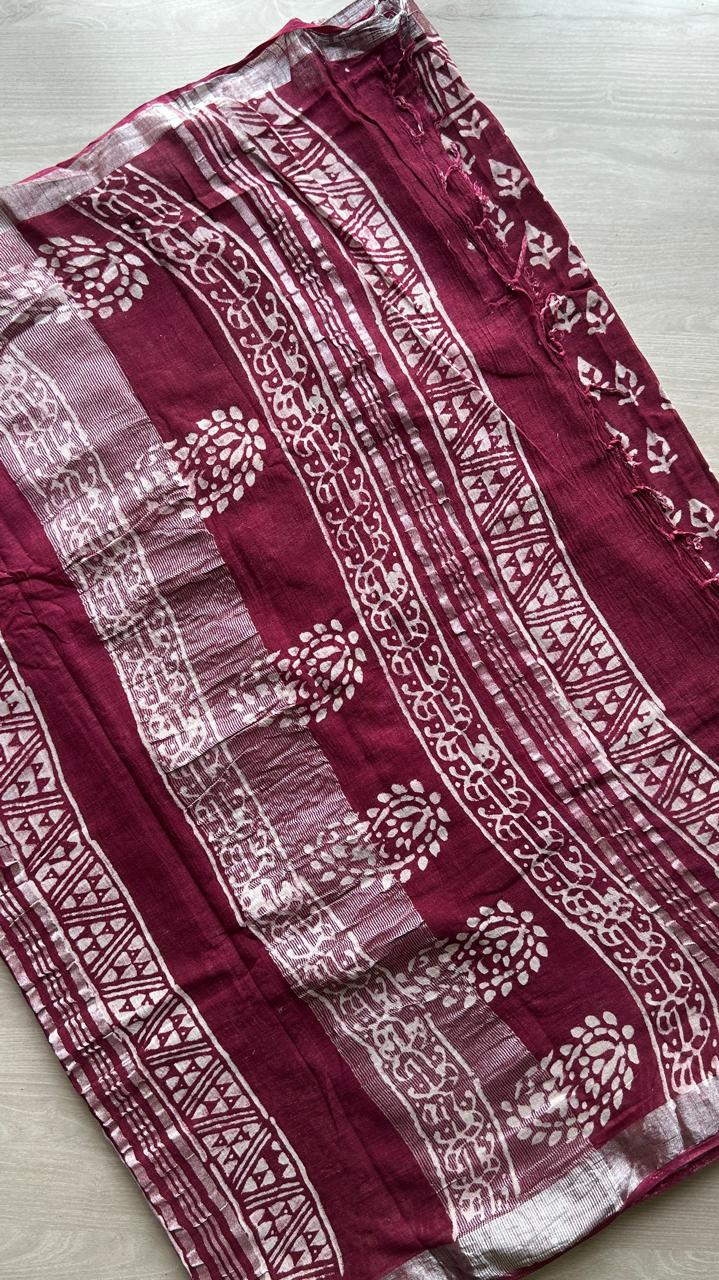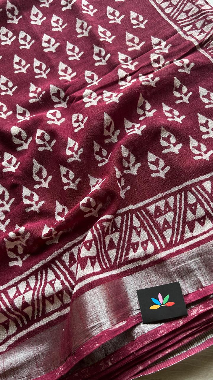 Handblock Printed Linen Cotton Saree