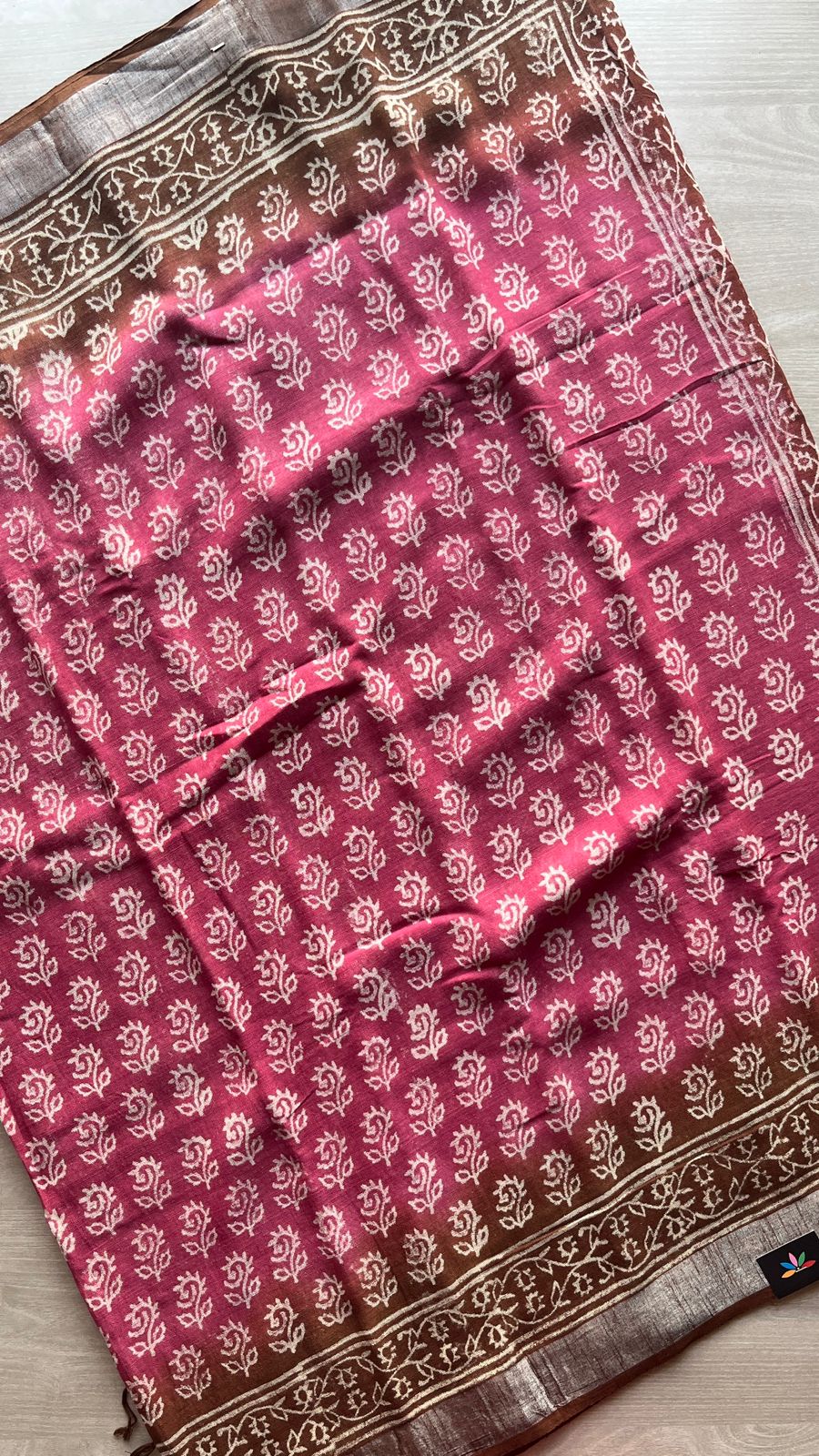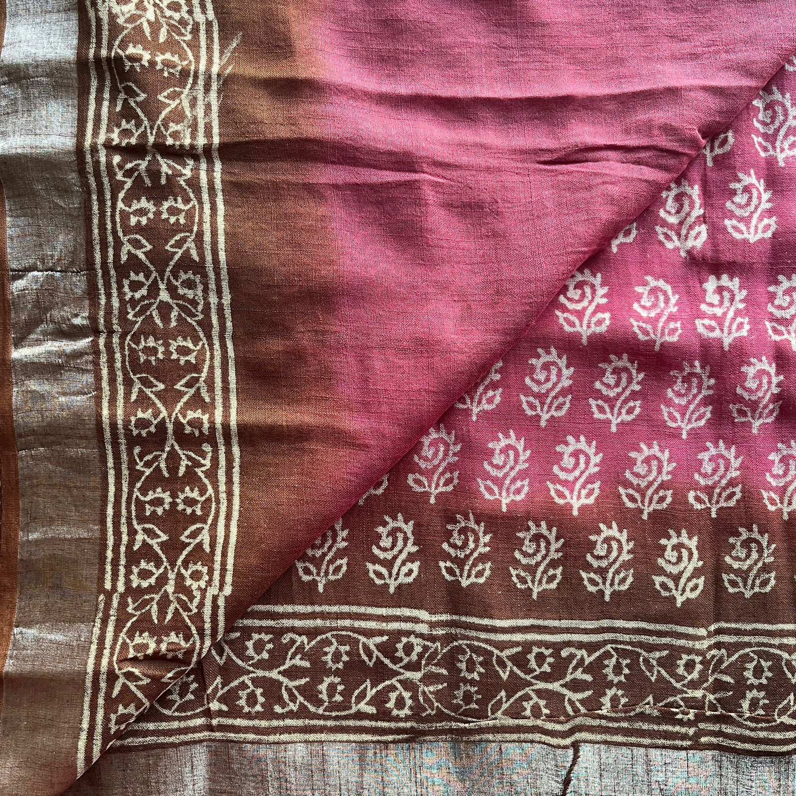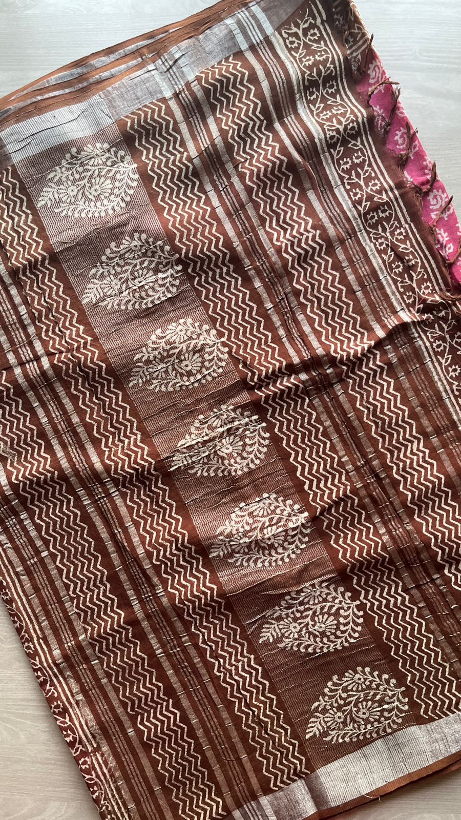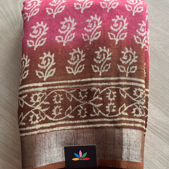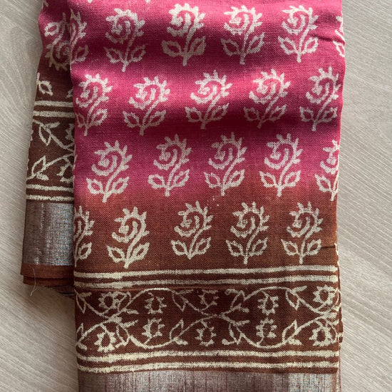 Handblock Printed Linen Cotton Saree-25187-25188