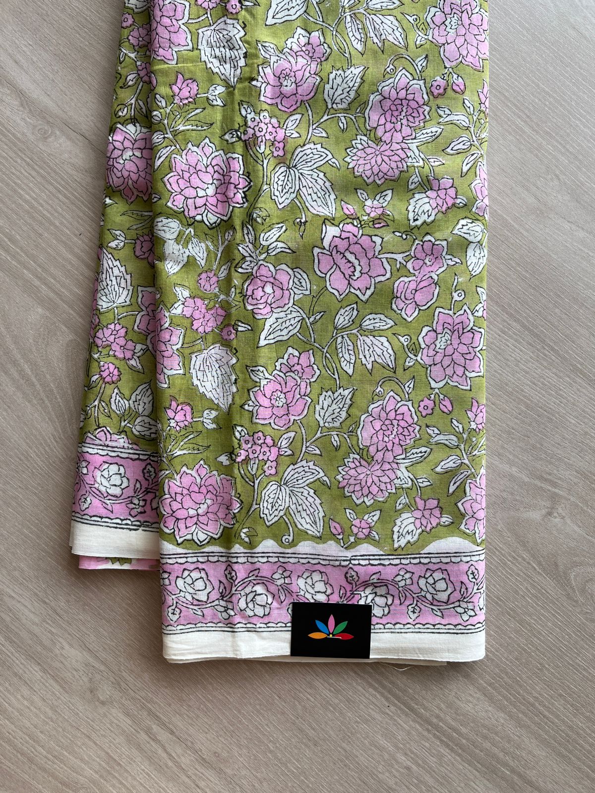 Handblock Printed Mul Cotton Saree- 23890-23891