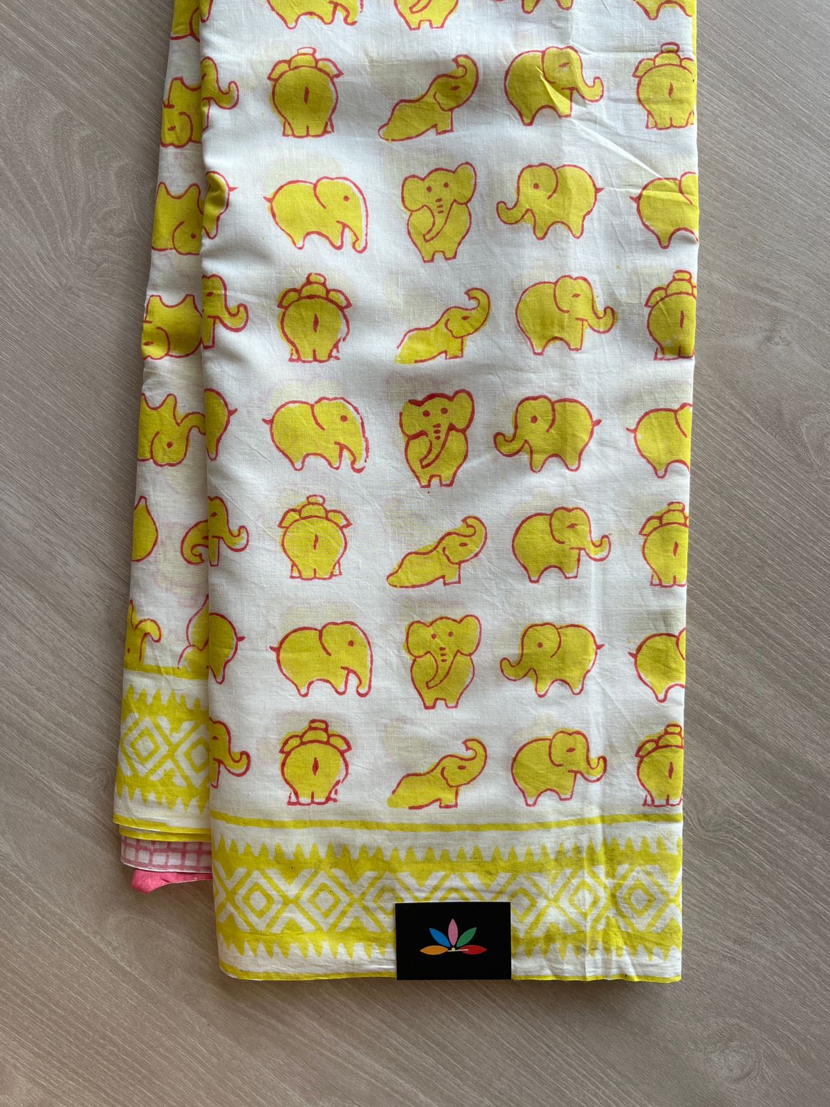 Handblock Printed Mul Cotton Saree- 23898-23899