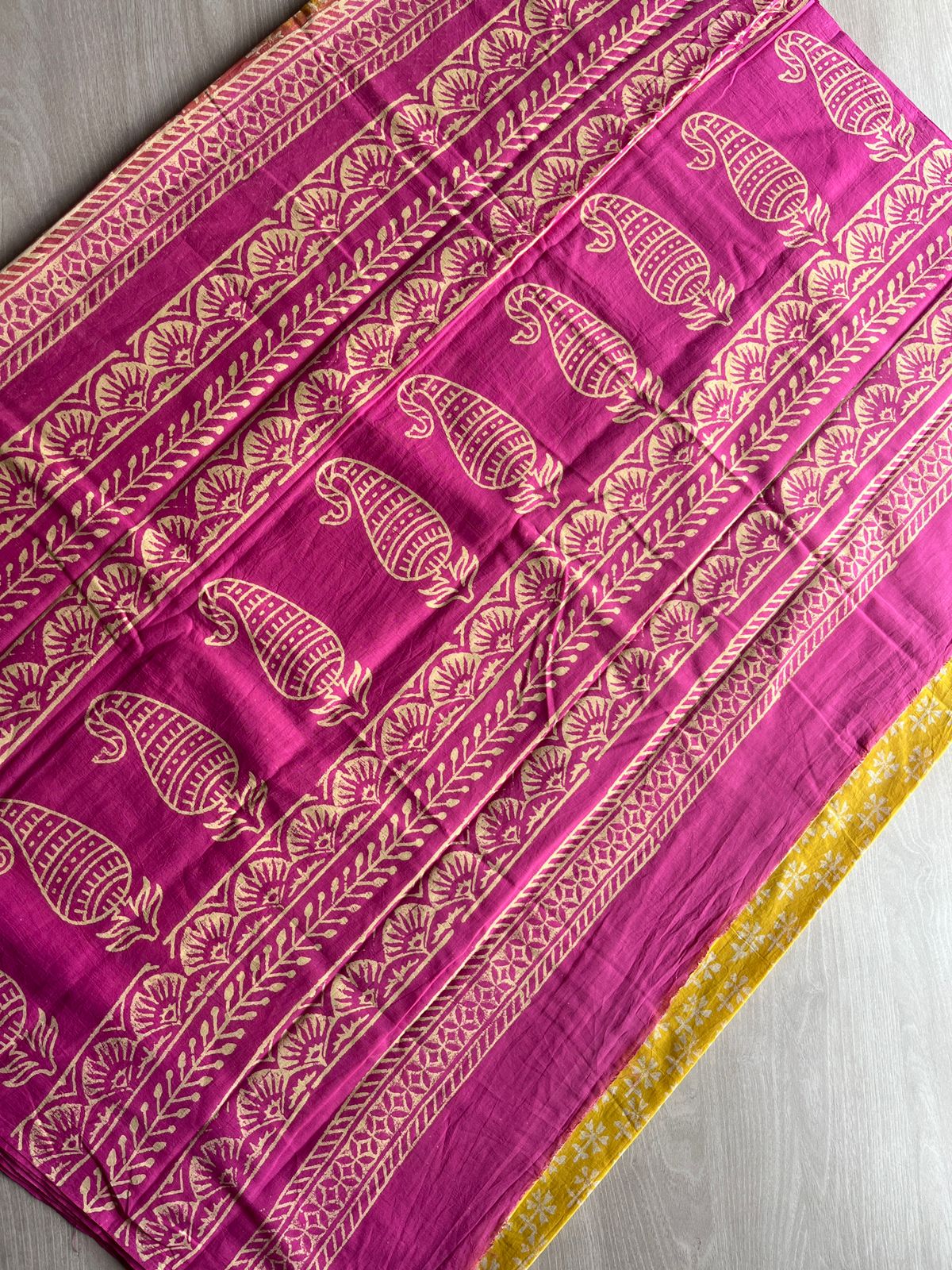 Handblock Printed Mul Cotton Saree- 27421-27422