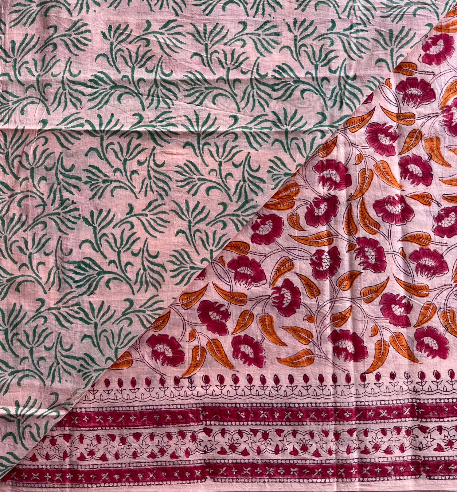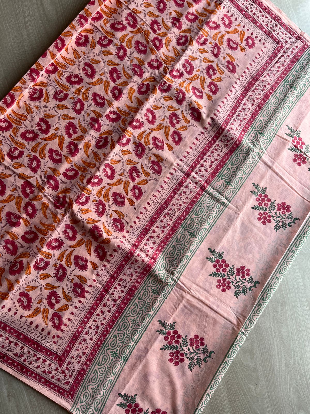 Handblock Printed Mul Cotton Saree- 27447-27448