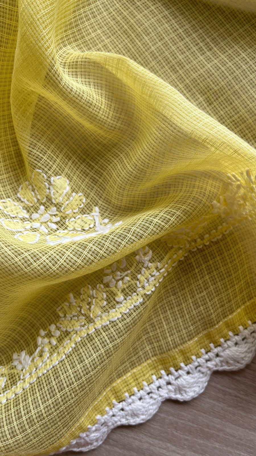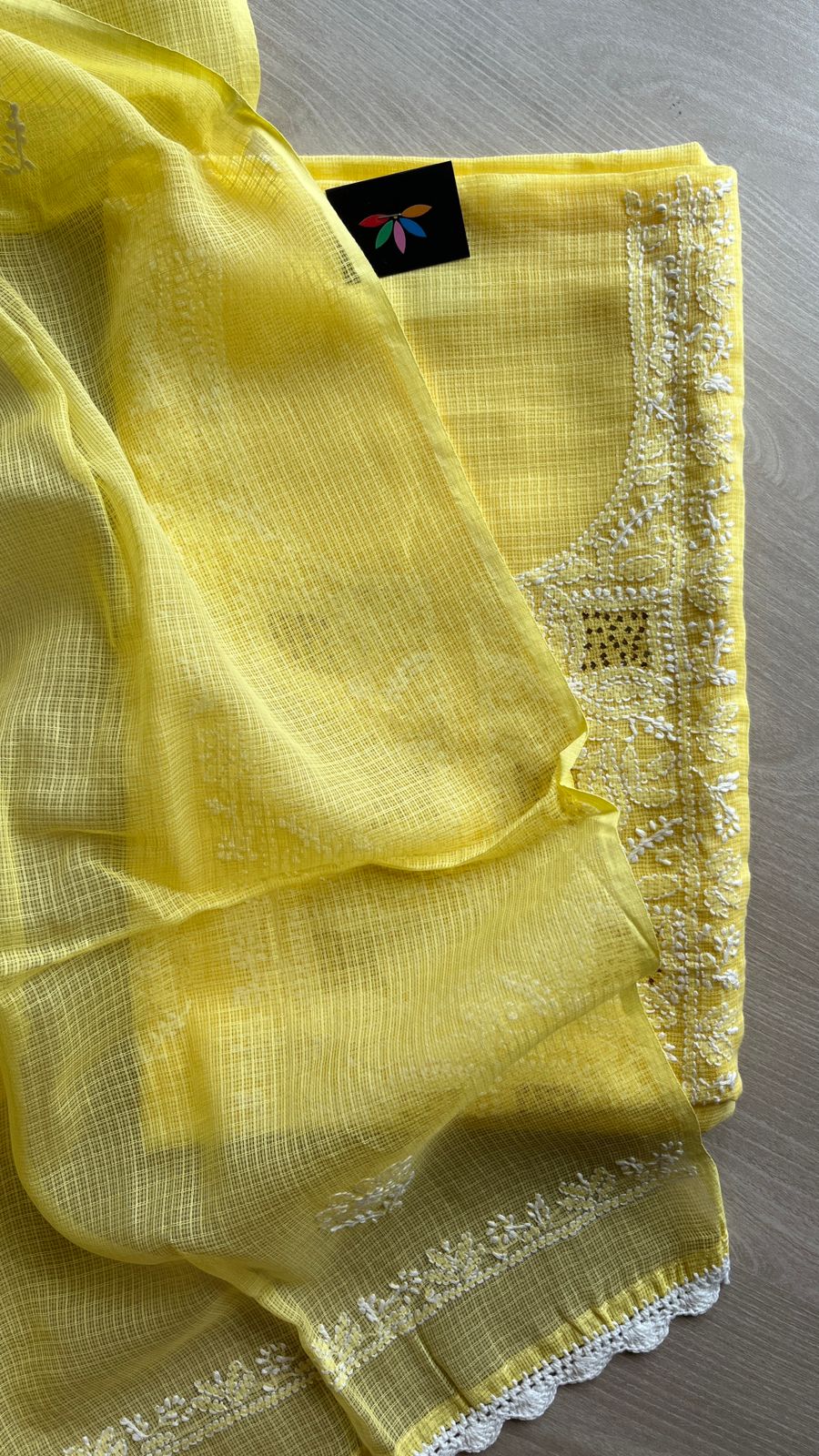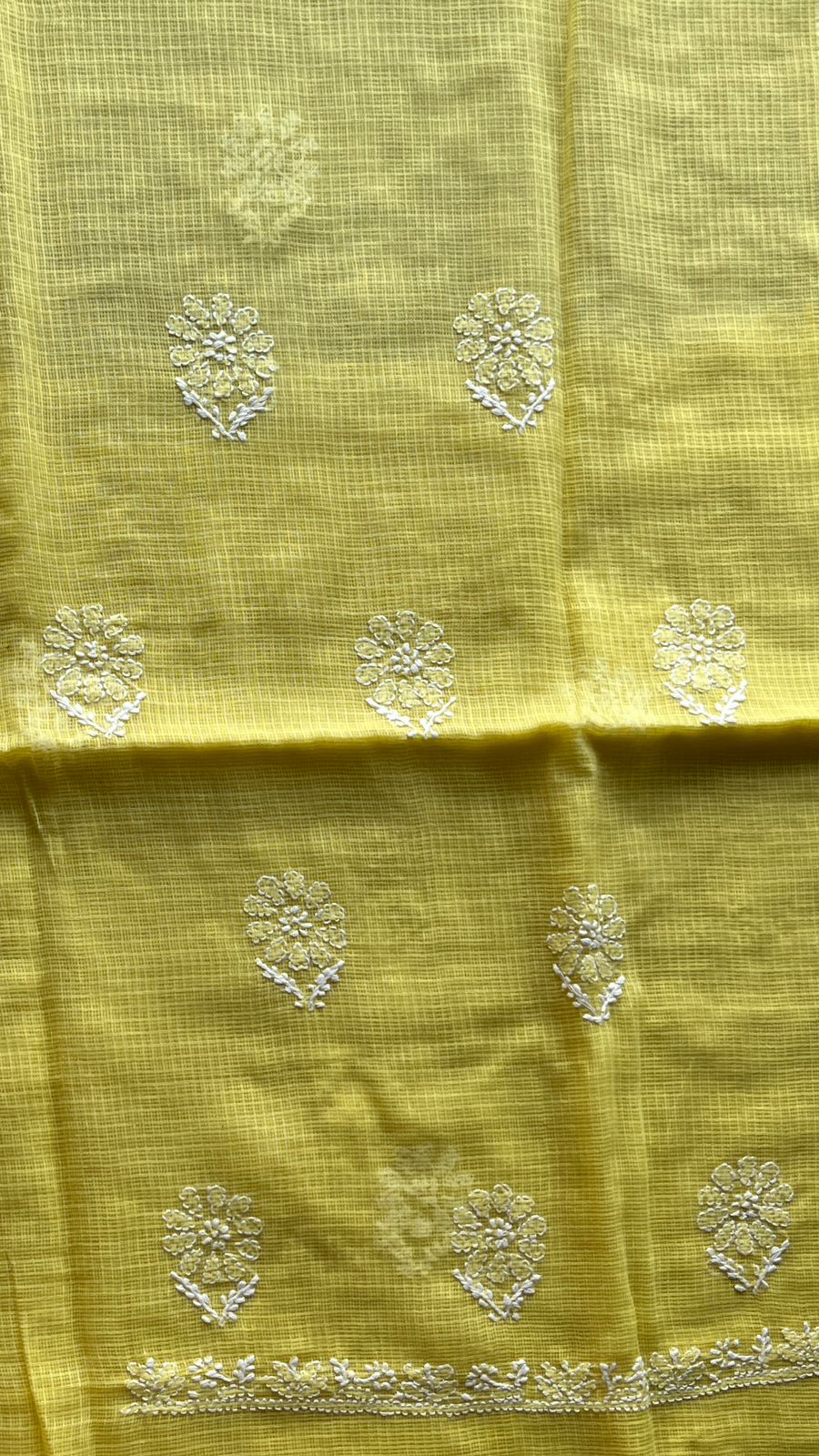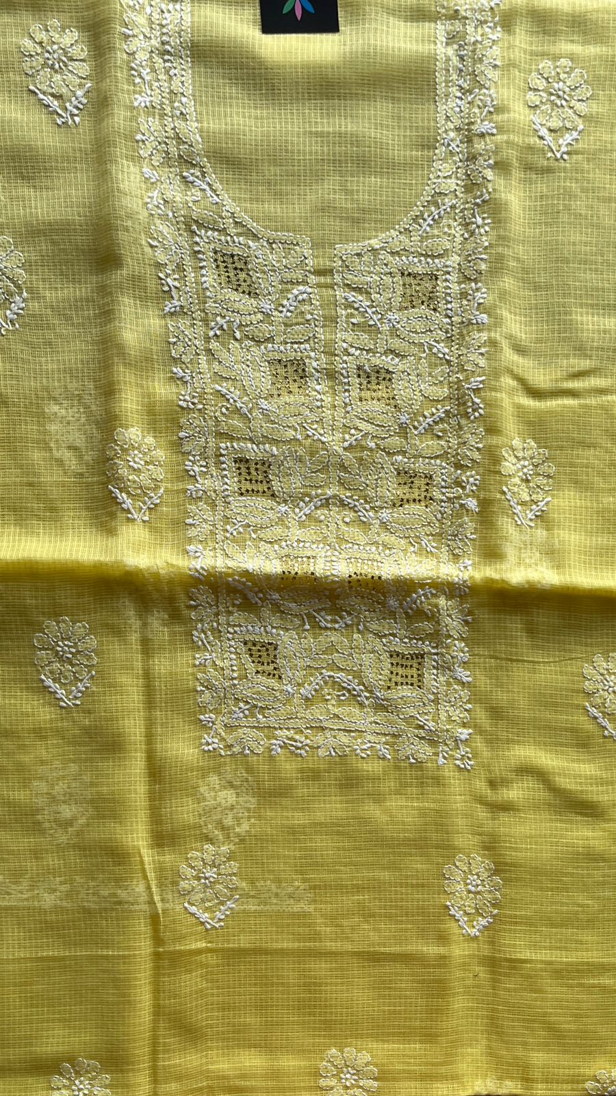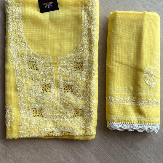 Handembroidered Chikankari Kota Kurti Fabric with Dupatta
