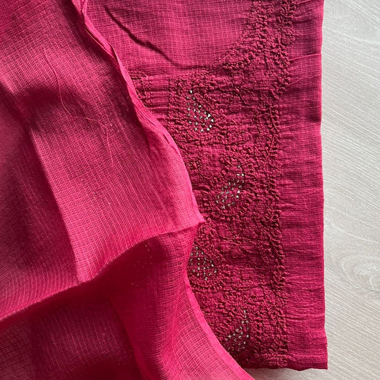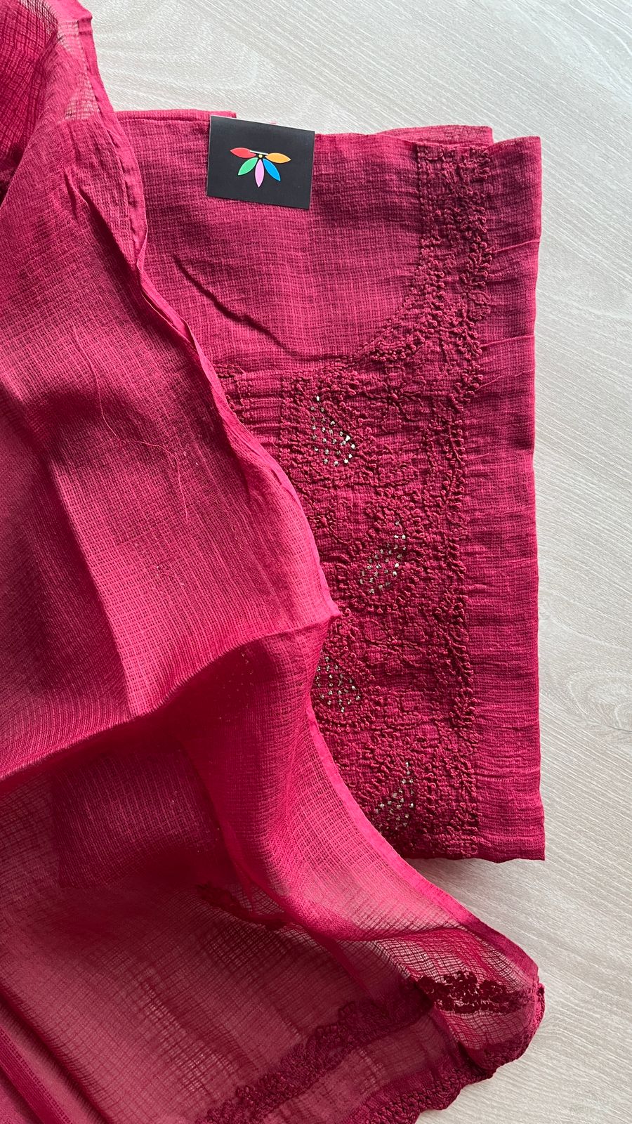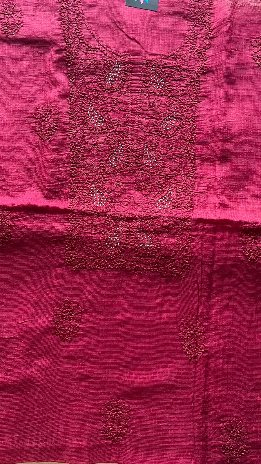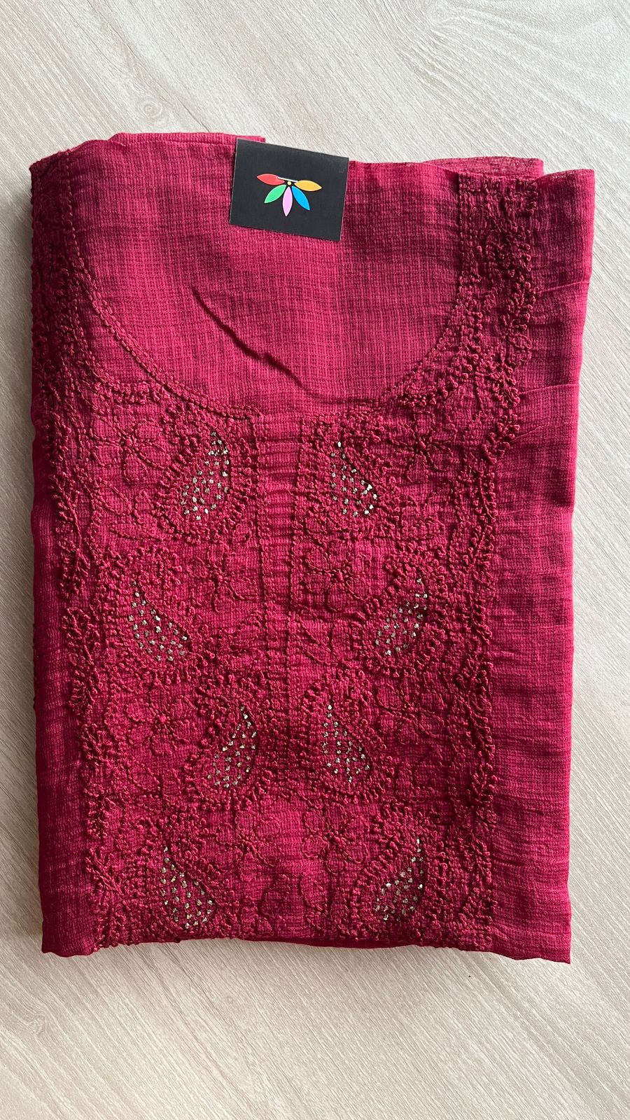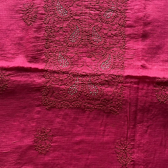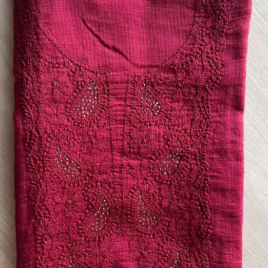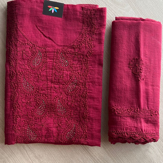 Handembroidered Chikankari Kota Kurti Fabric with Dupatta