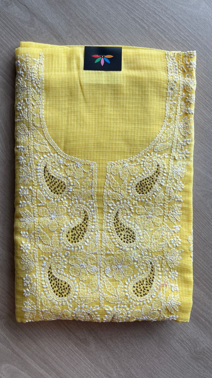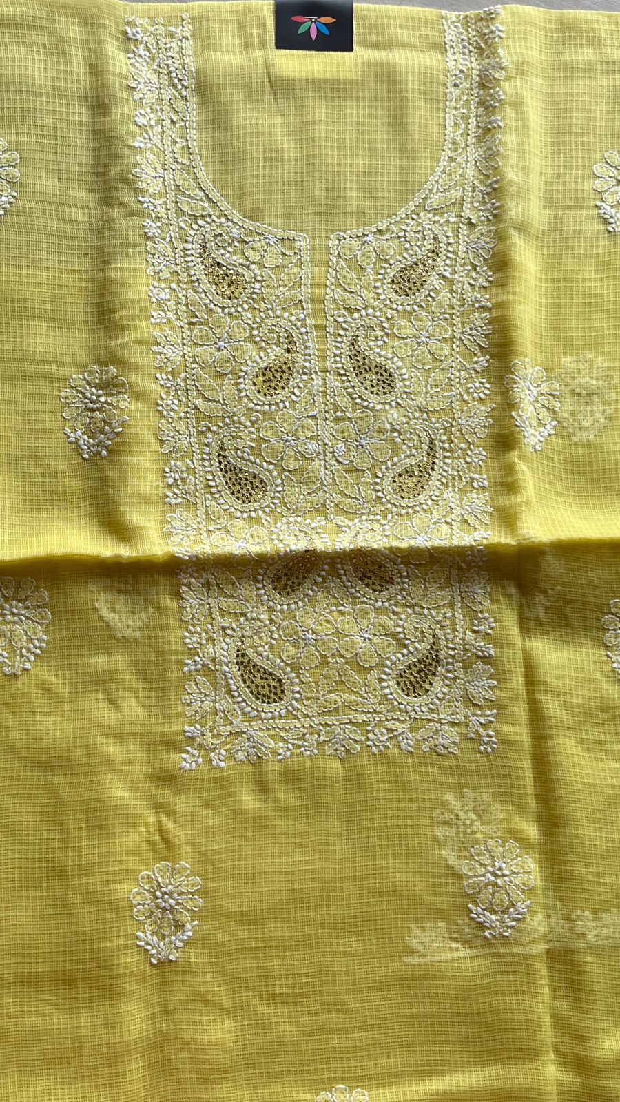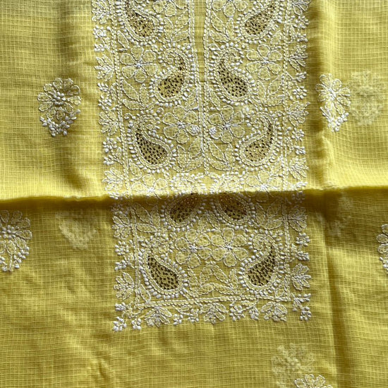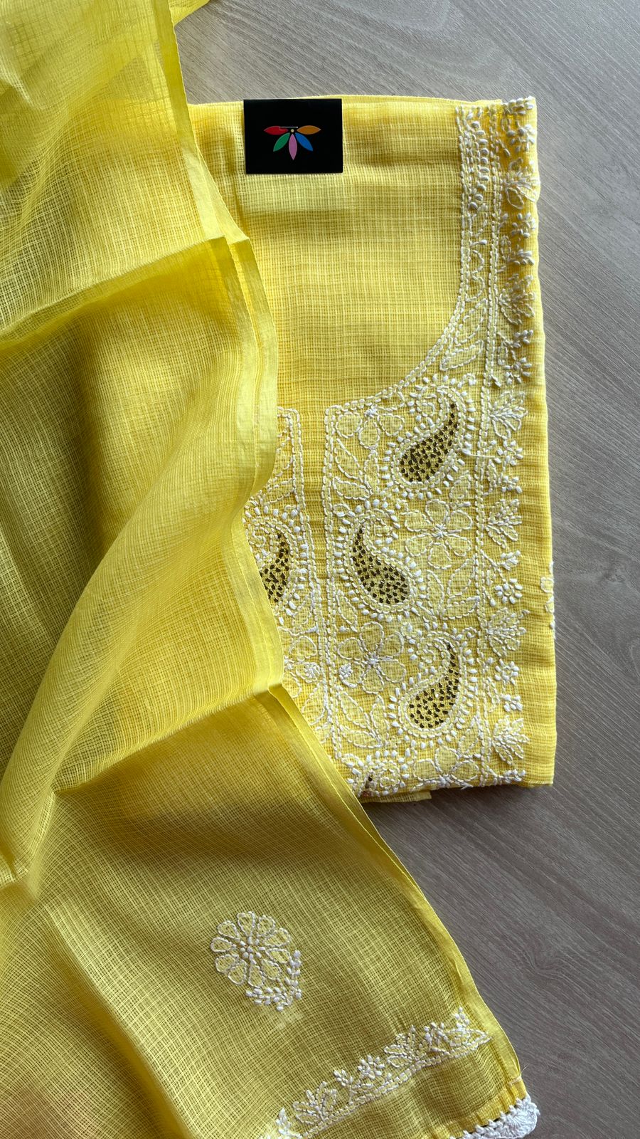 Handembroidered Chikankari Kota Kurti Fabric with Dupatta- 25475