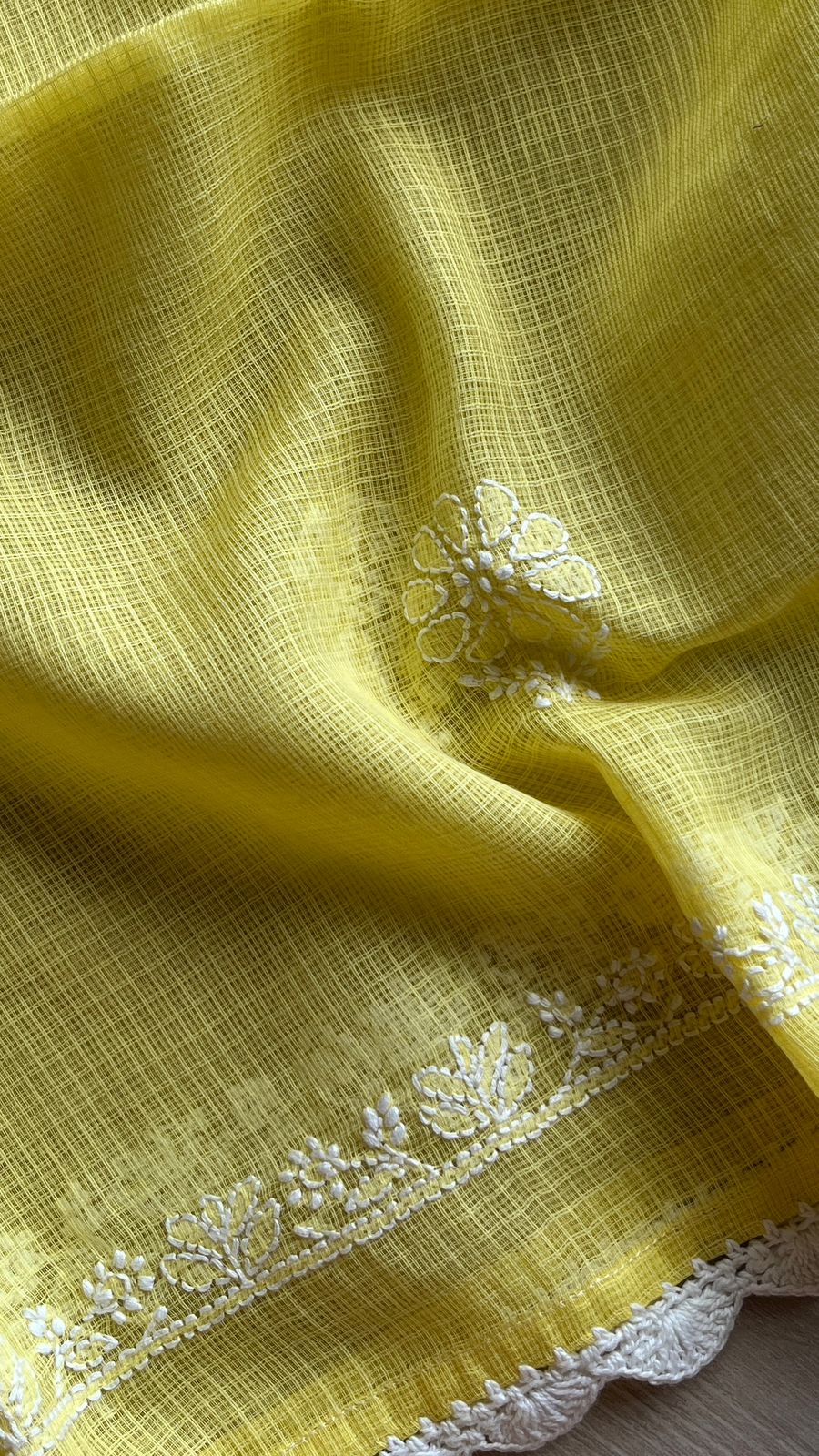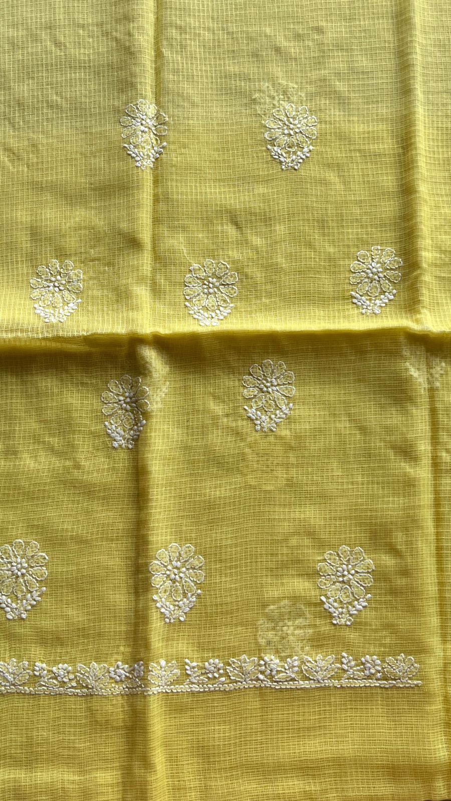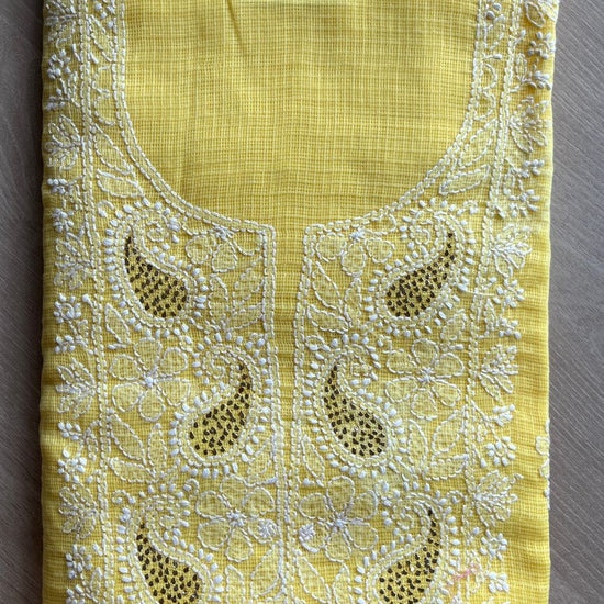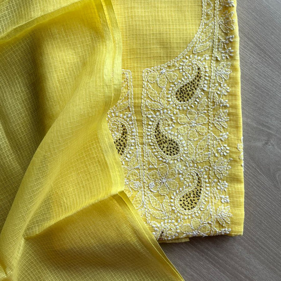Handembroidered Chikankari Kota Kurti Fabric with Dupatta- 25475