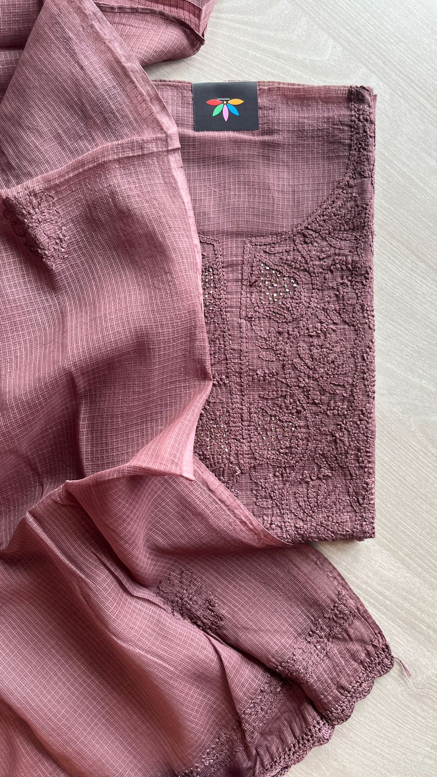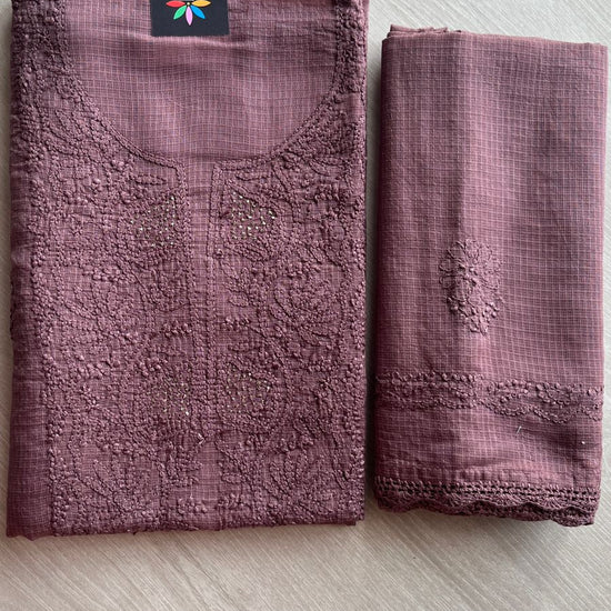 Handembroidered Chikankari Kota Kurti Fabric with Dupatta