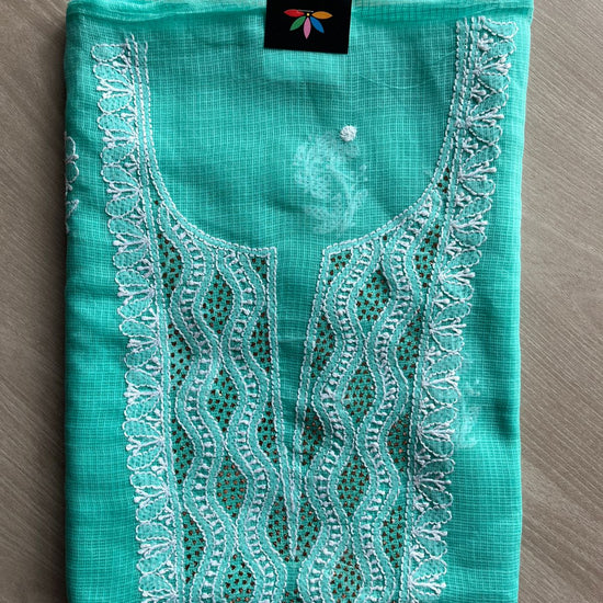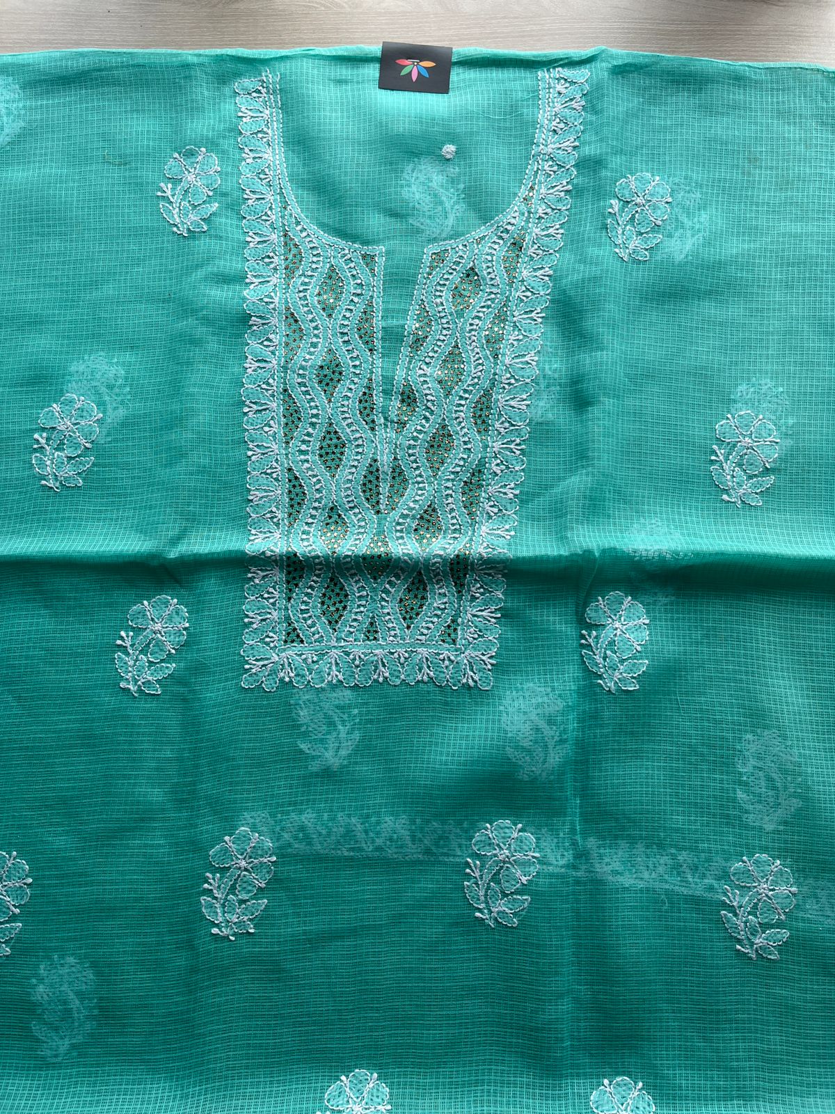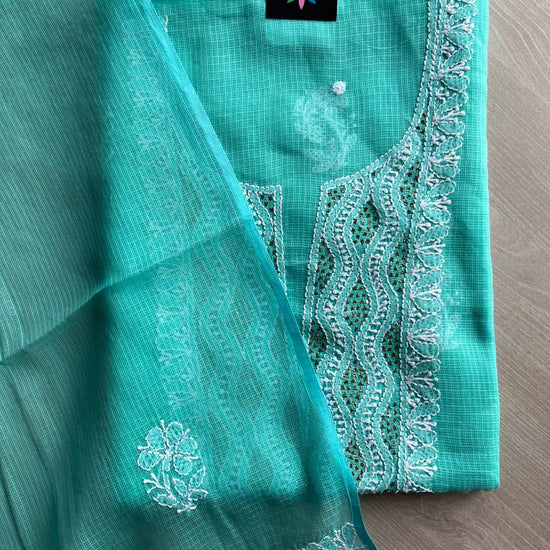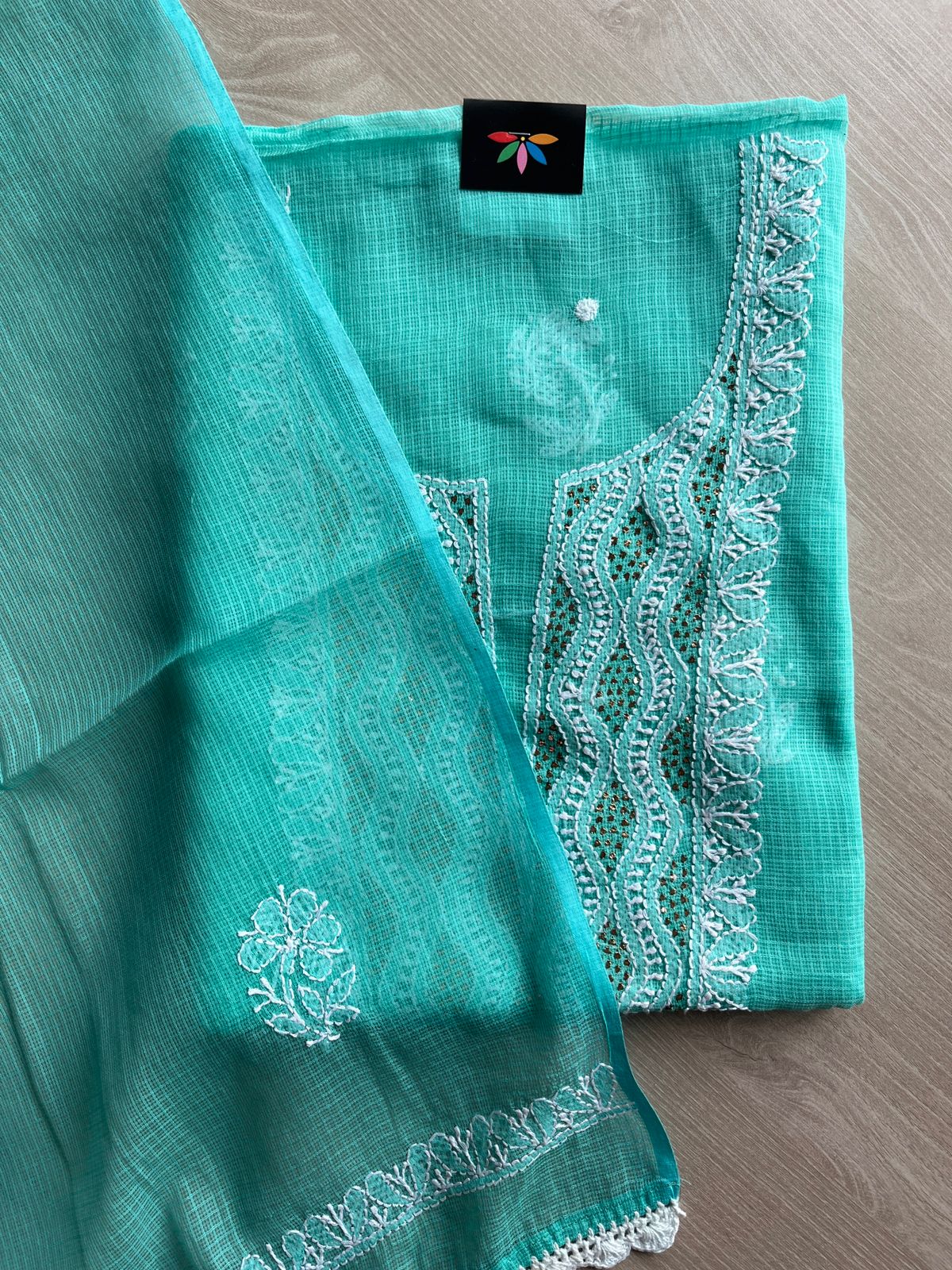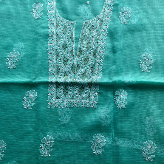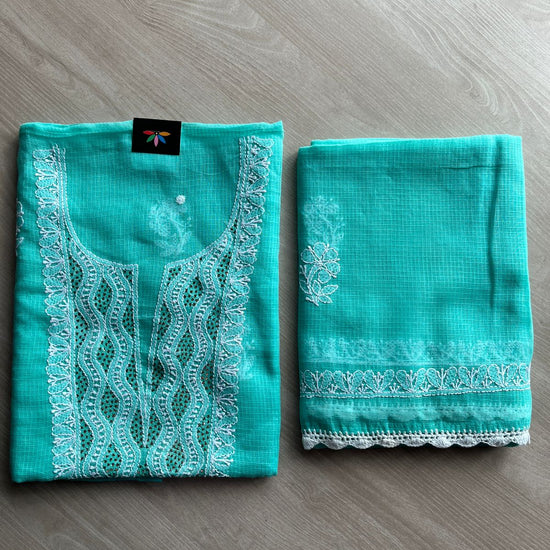 Handembroidered Chikankari Kota Kurti Fabric with Dupatta- 27285