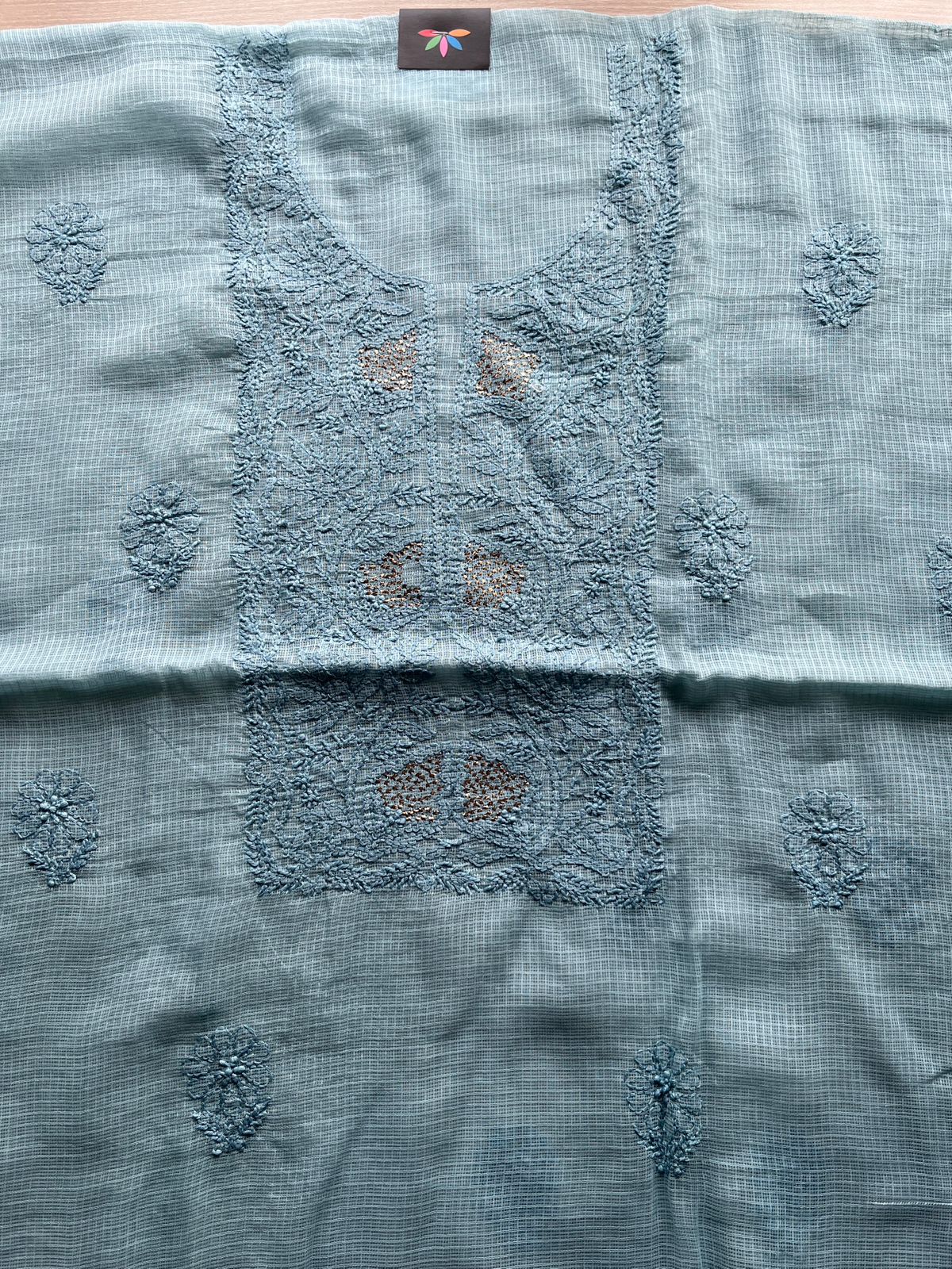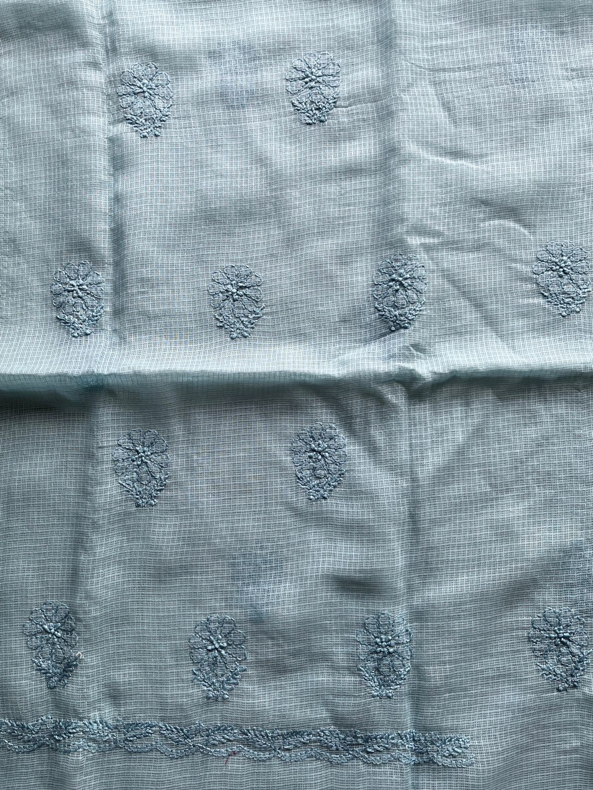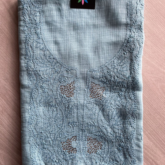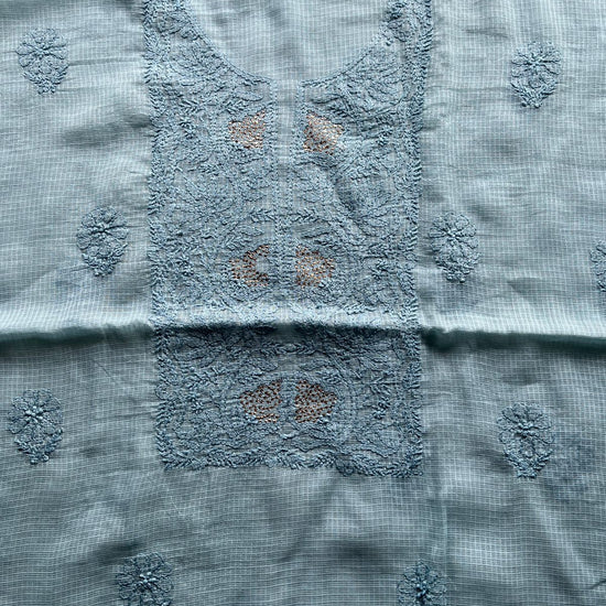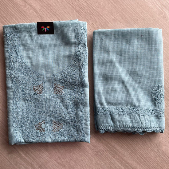 Handembroidered Chikankari Kota Kurti Fabric with Dupatta- 27293