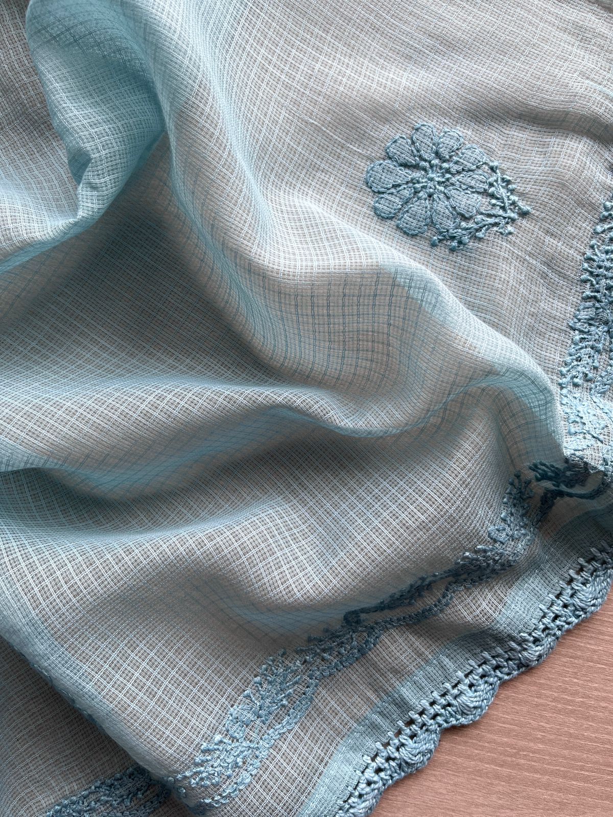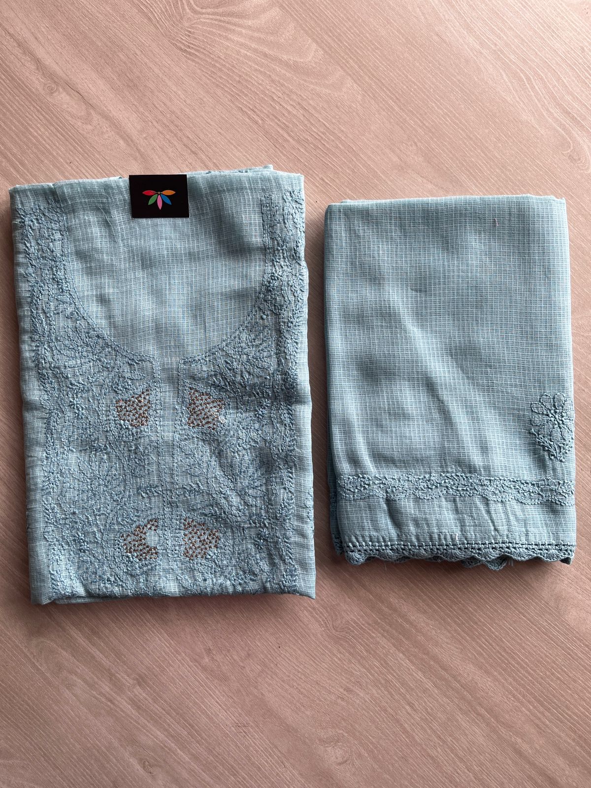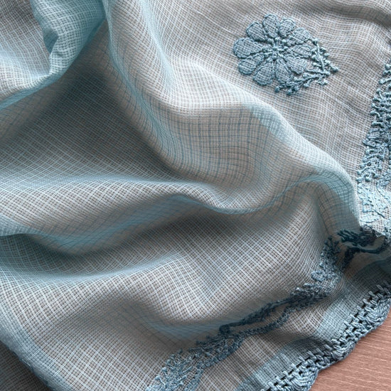 Handembroidered Chikankari Kota Kurti Fabric with Dupatta