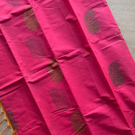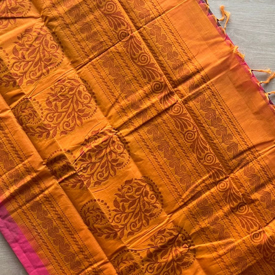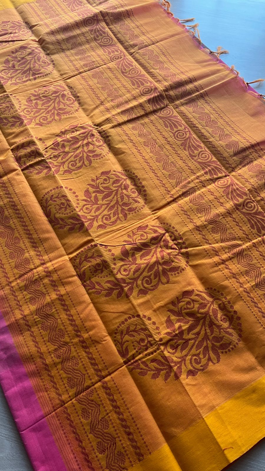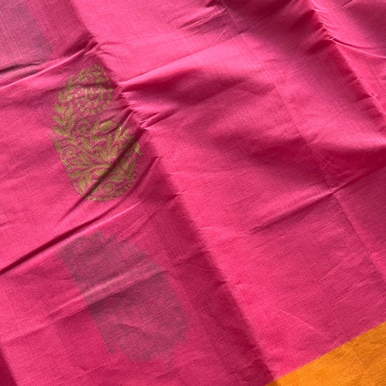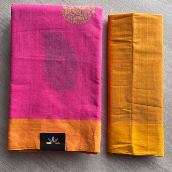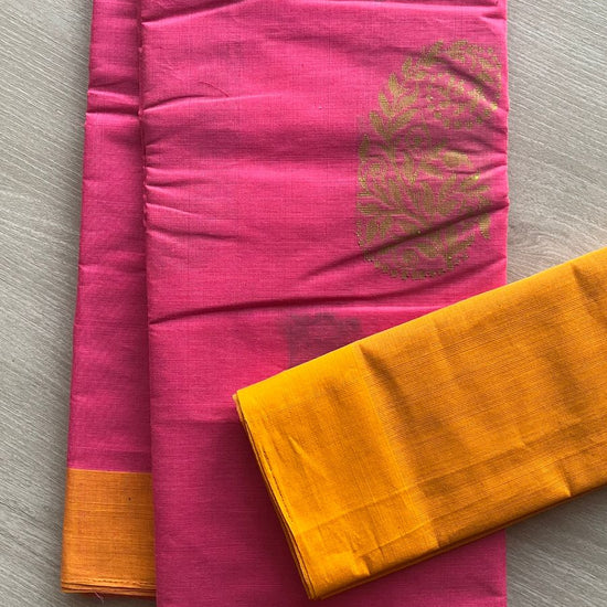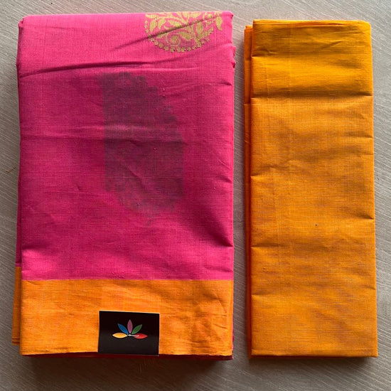 Handloom Fine Cotton Saree with Contrast Pallu and Blouse
