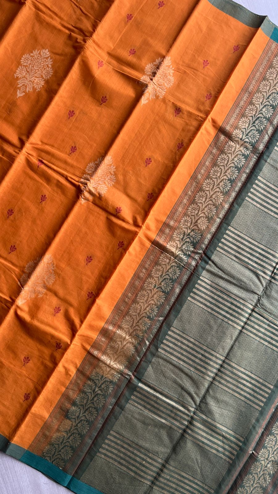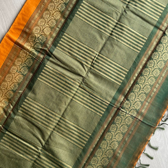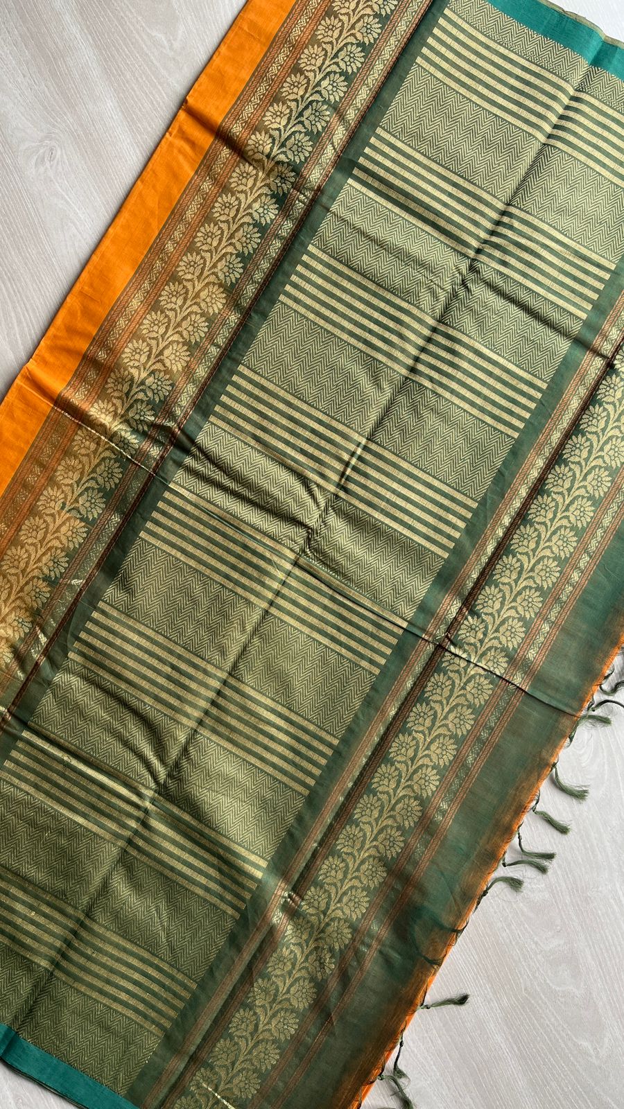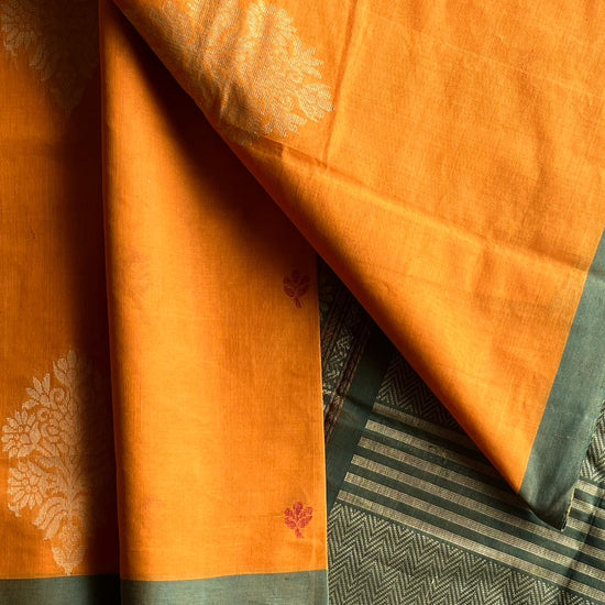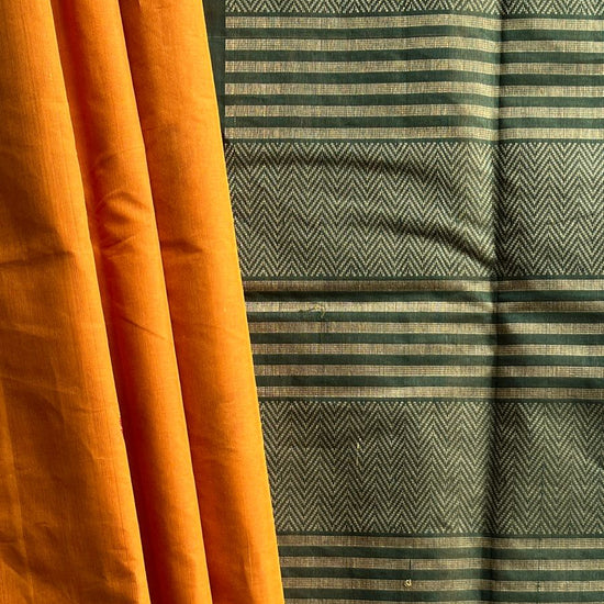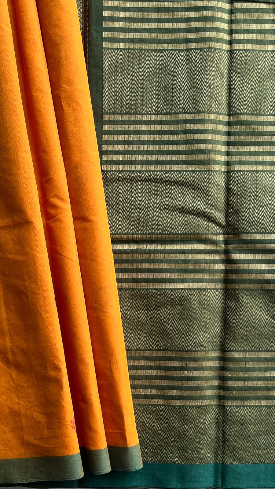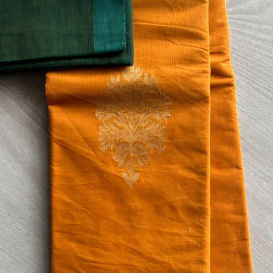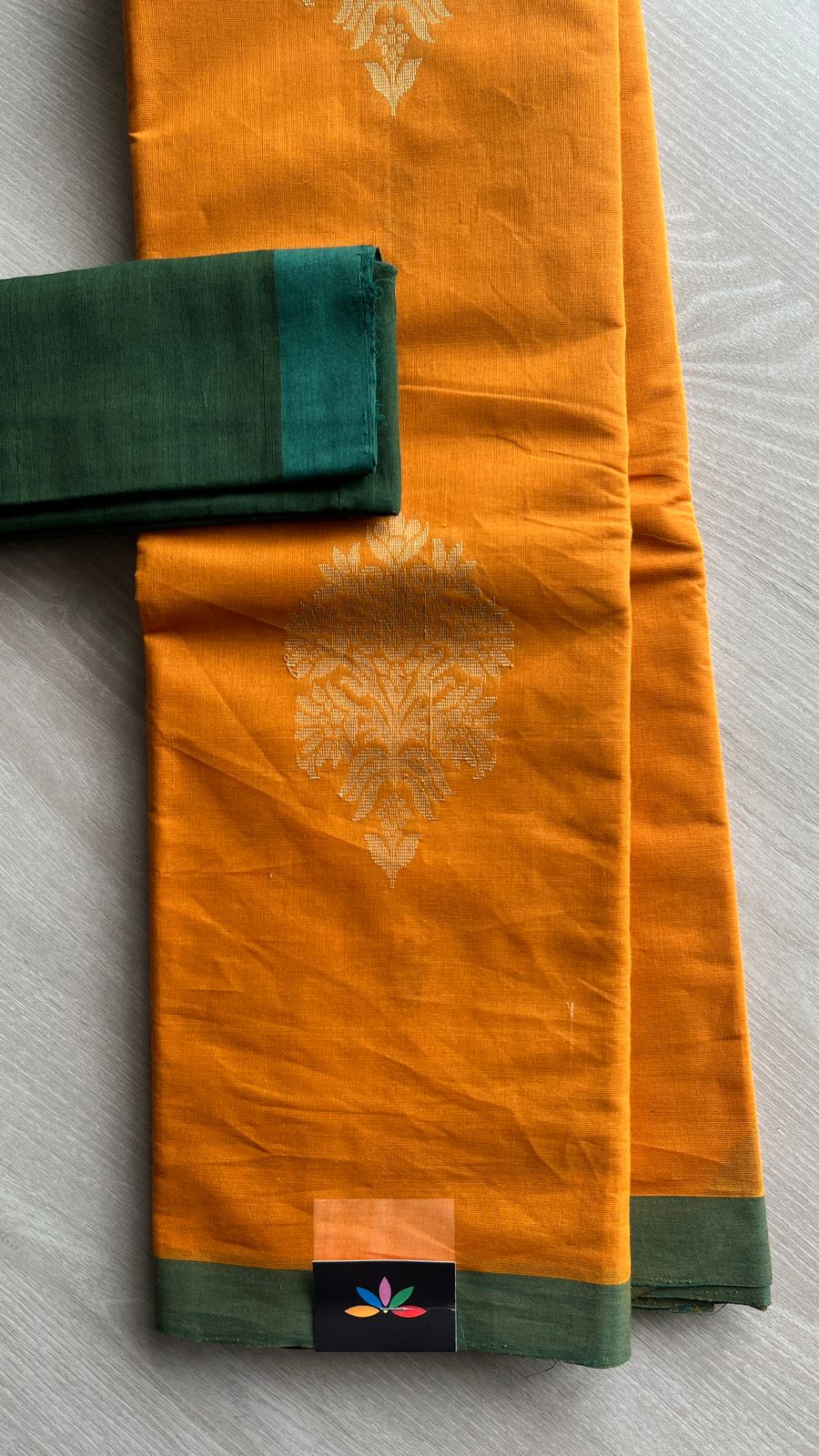 Handloom Fine Cotton Saree with Contrast Pallu and Blouse