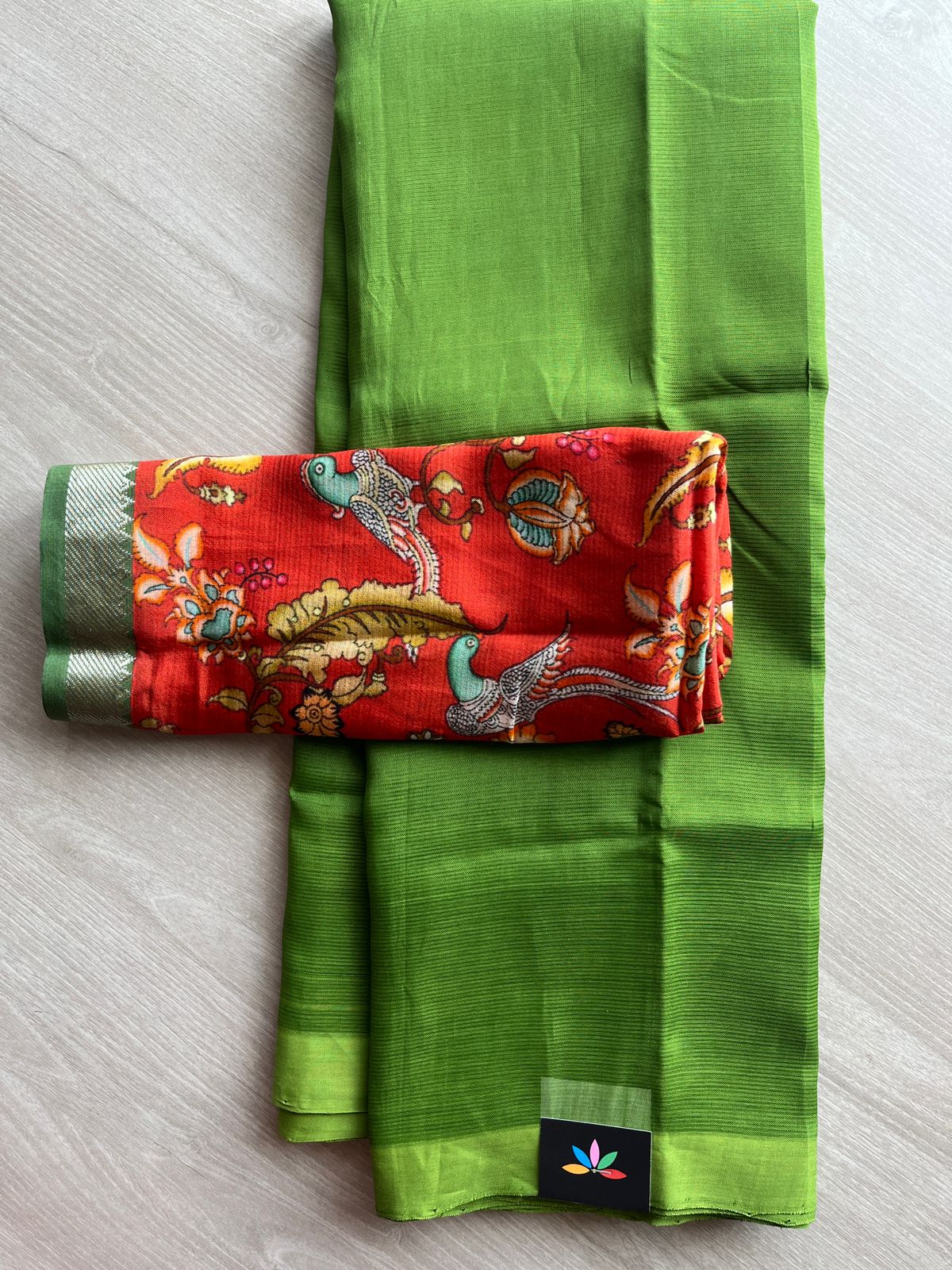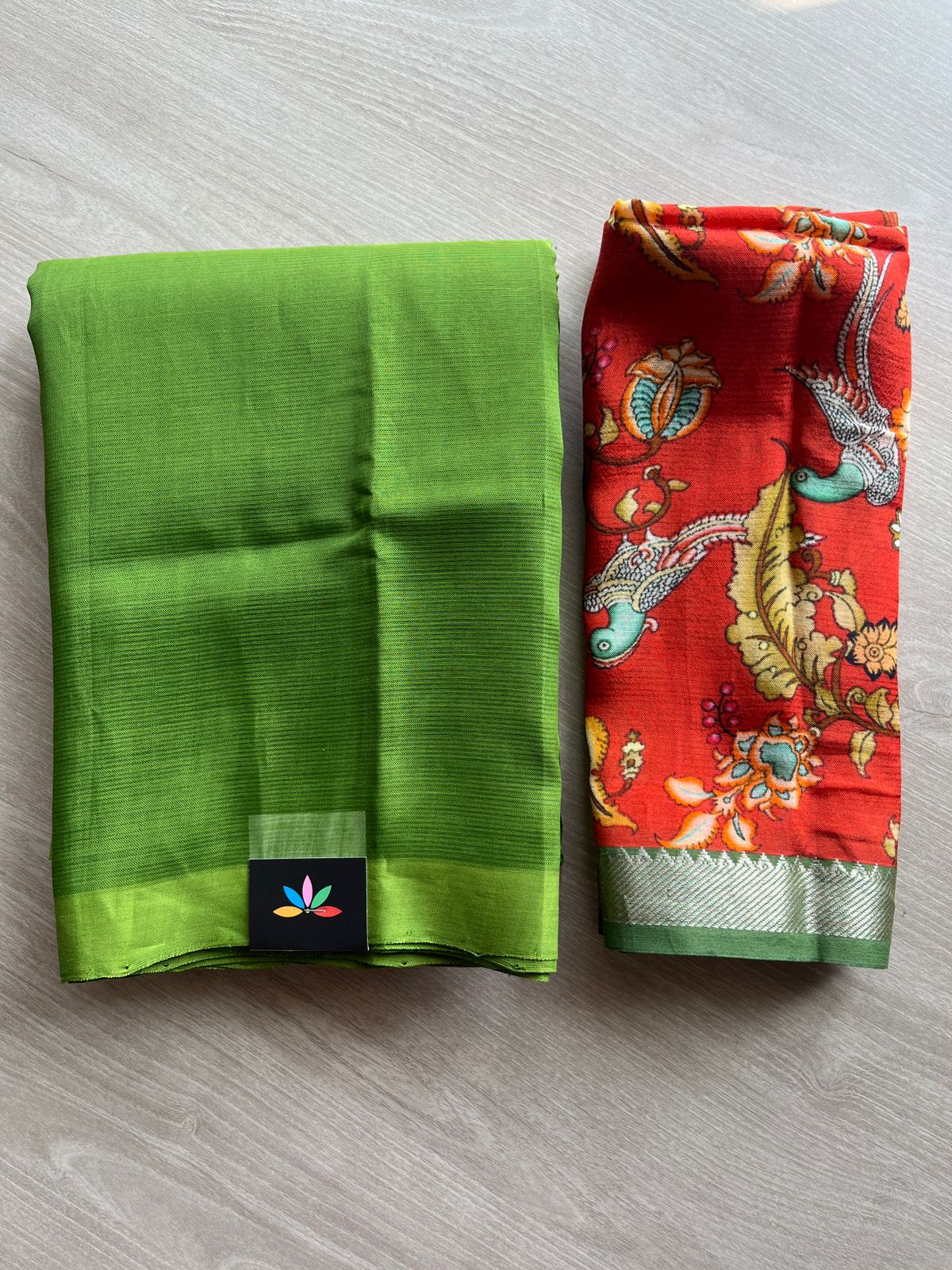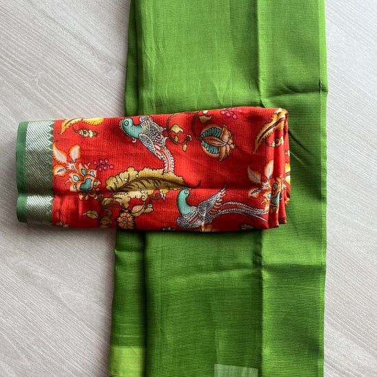 Handloom Mangalagiri Silk Cotton Saree with Digital Printed Blouse Fabric
