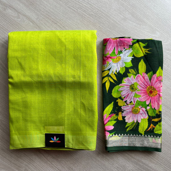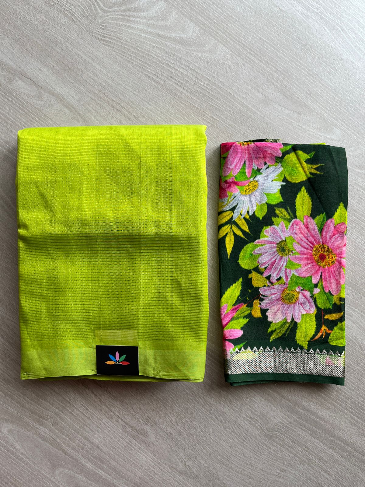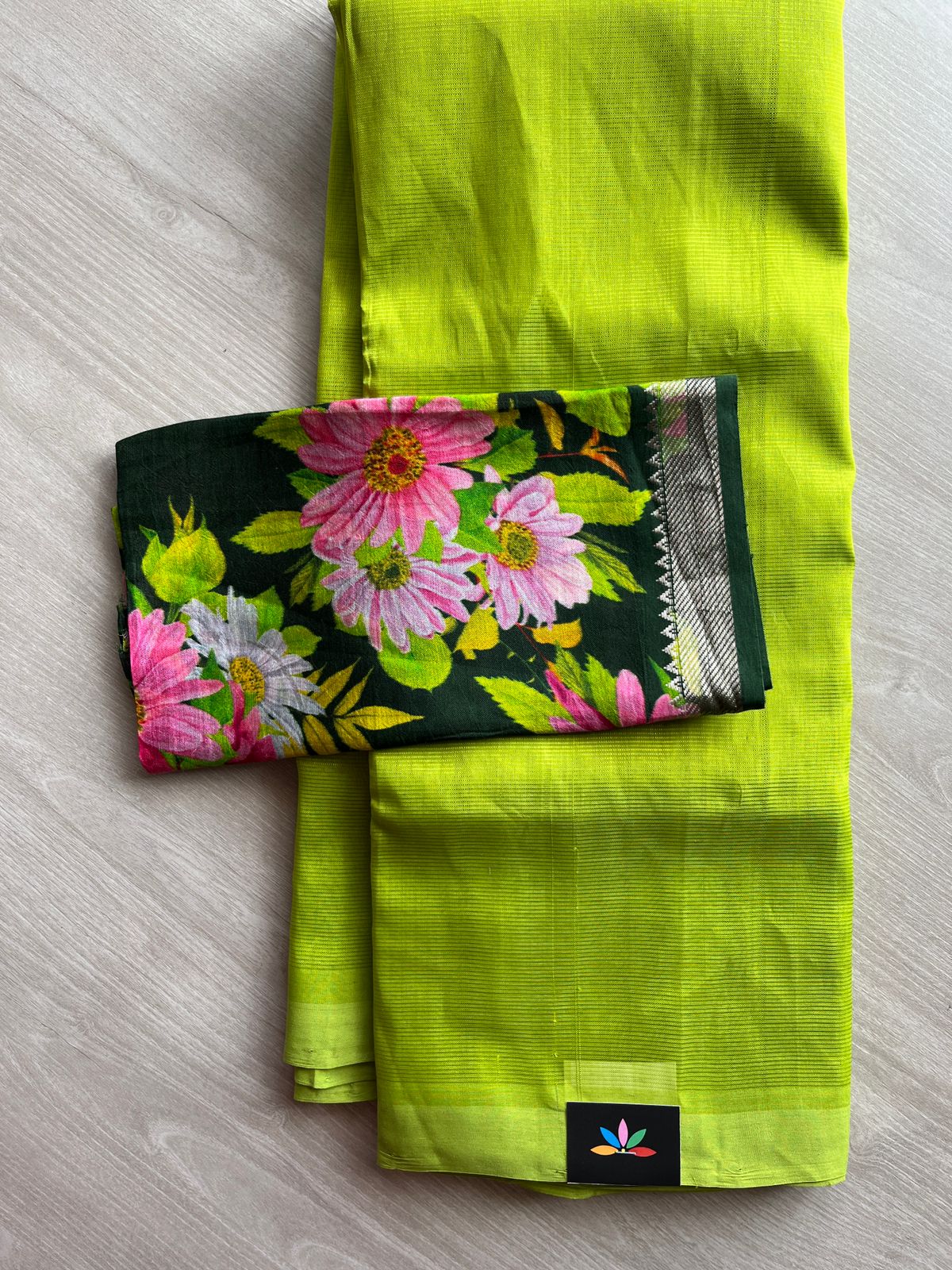 Handloom Mangalagiri Silk Cotton Saree with Digital Printed Blouse Fabric