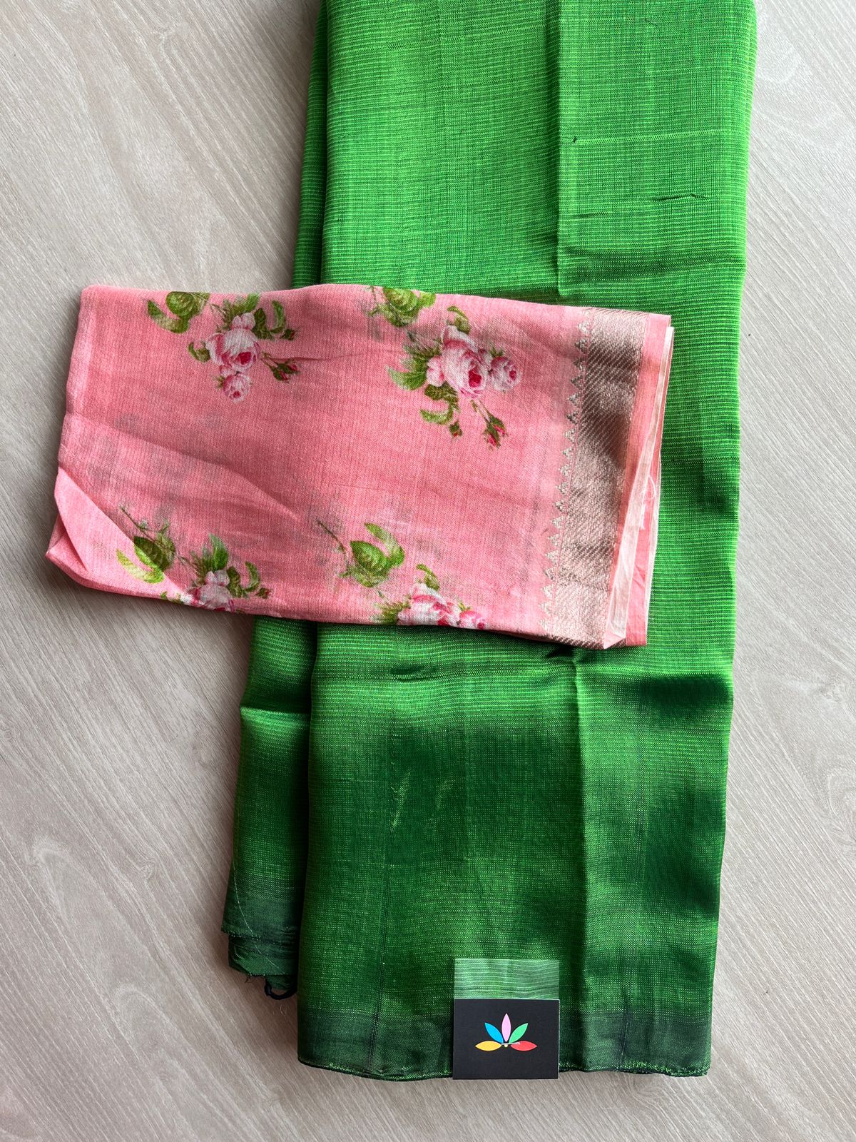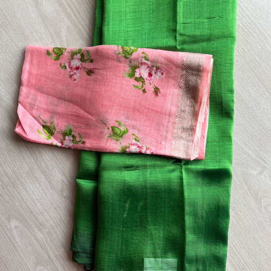 Handloom Mangalagiri Silk Cotton Saree with Digital Printed Blouse Fabric