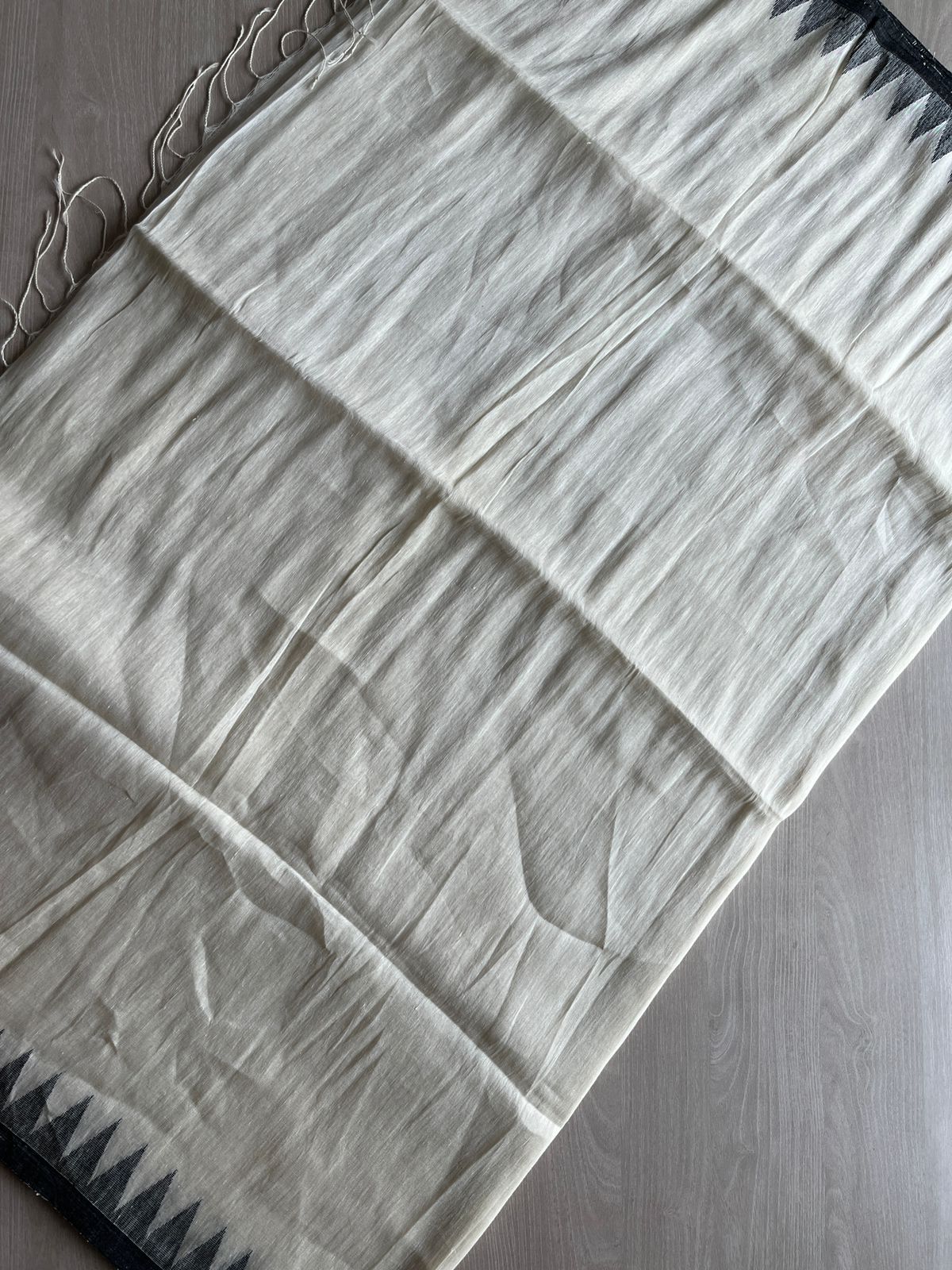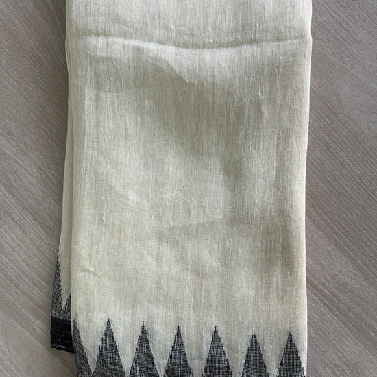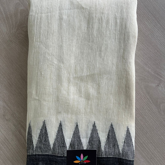 Handwoven Temple Border Fine Linen Saree