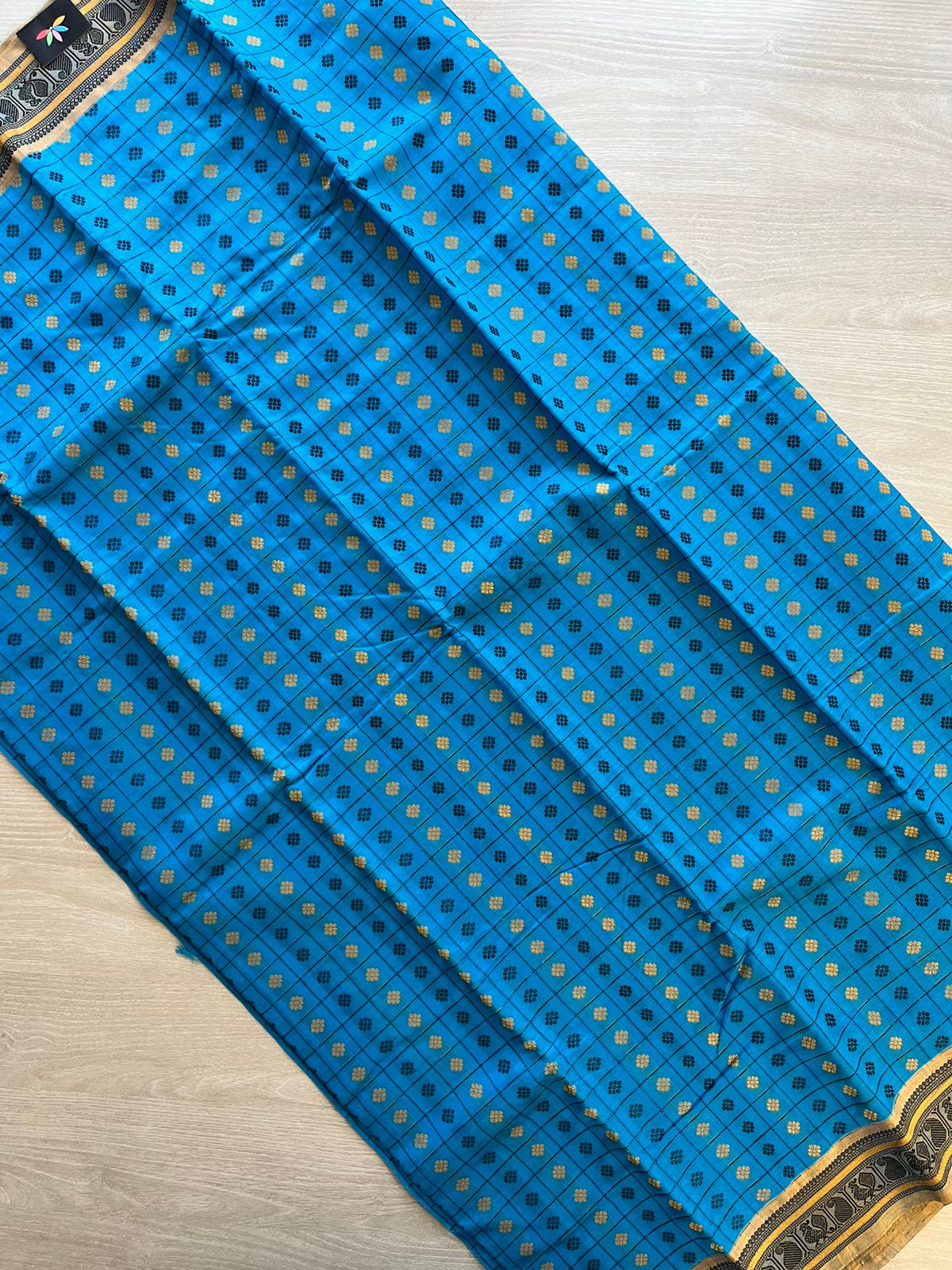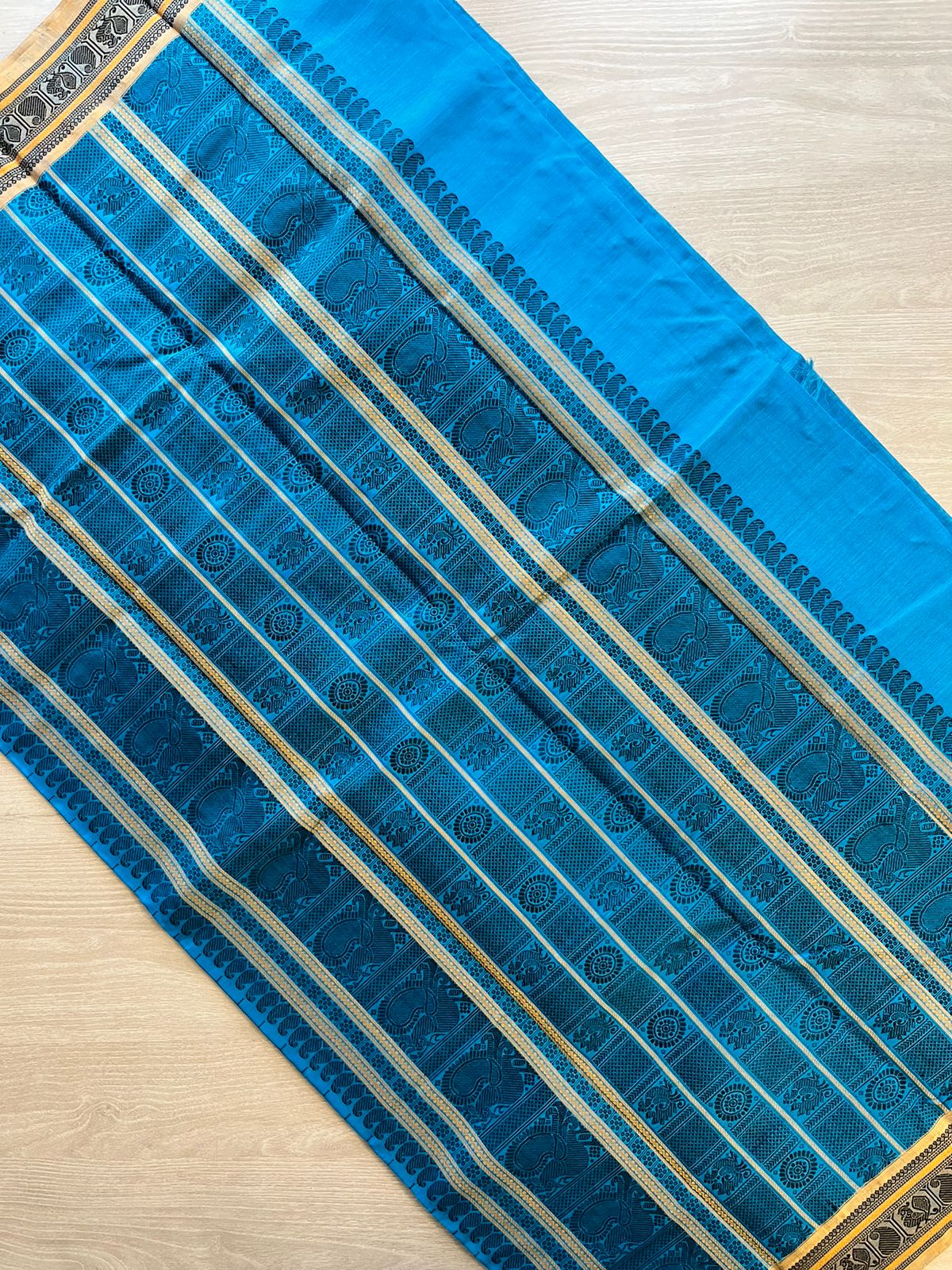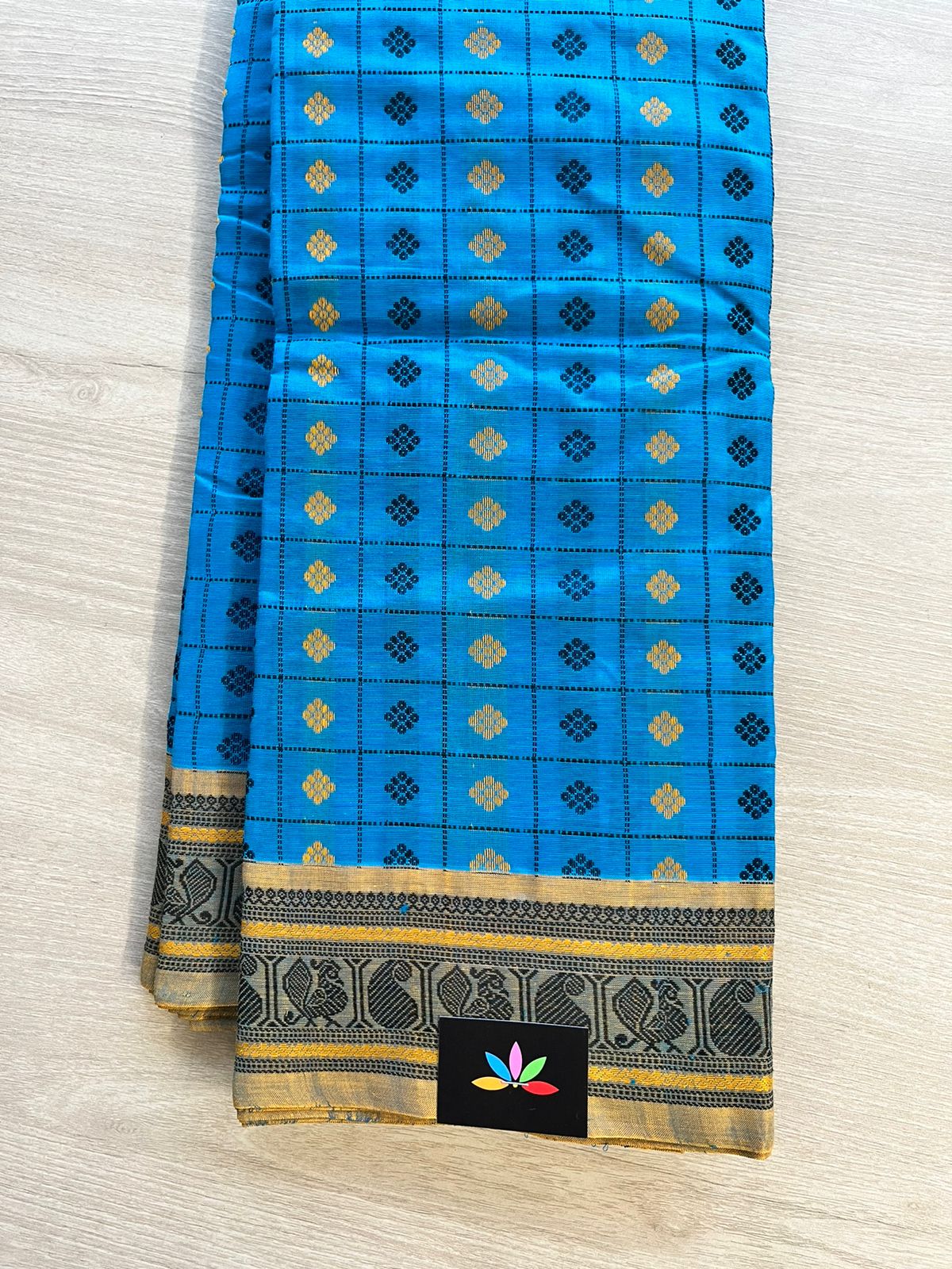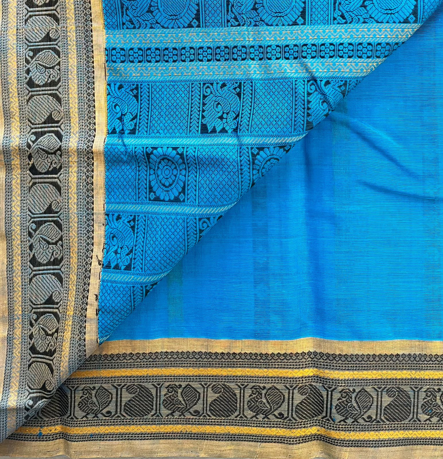 Handwoven 1000 Butta Kanchi Silk Cotton Saree (Blue)-585