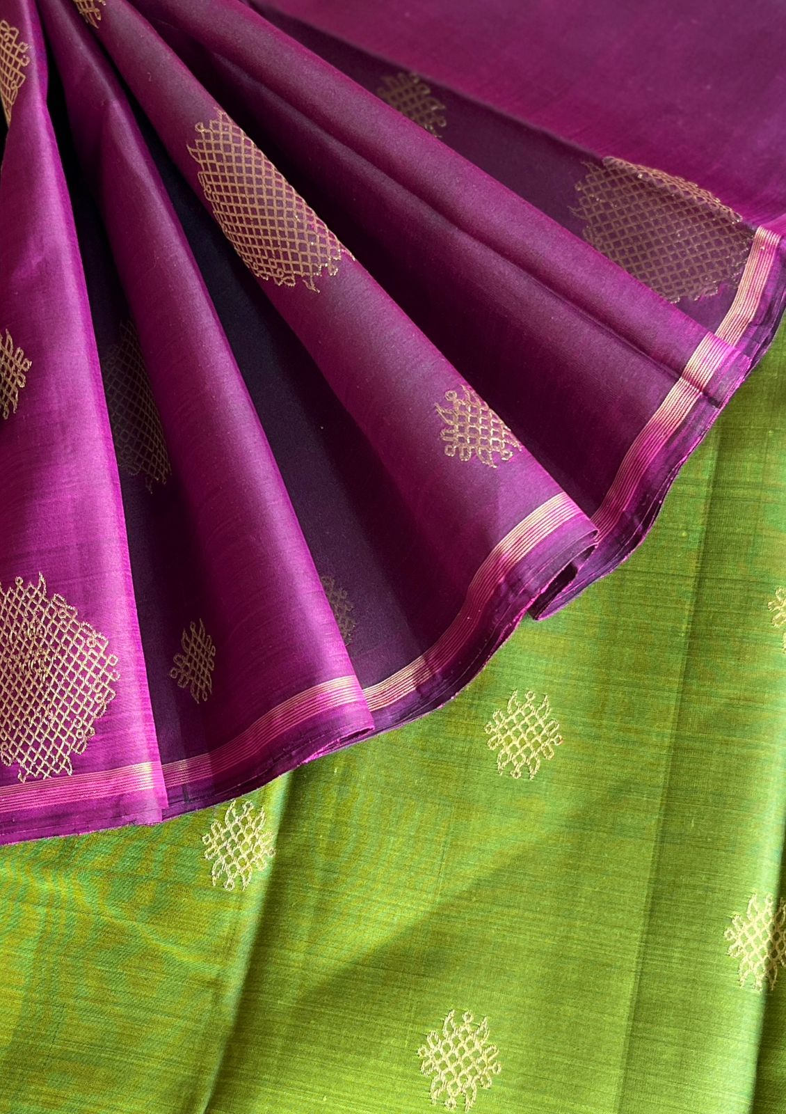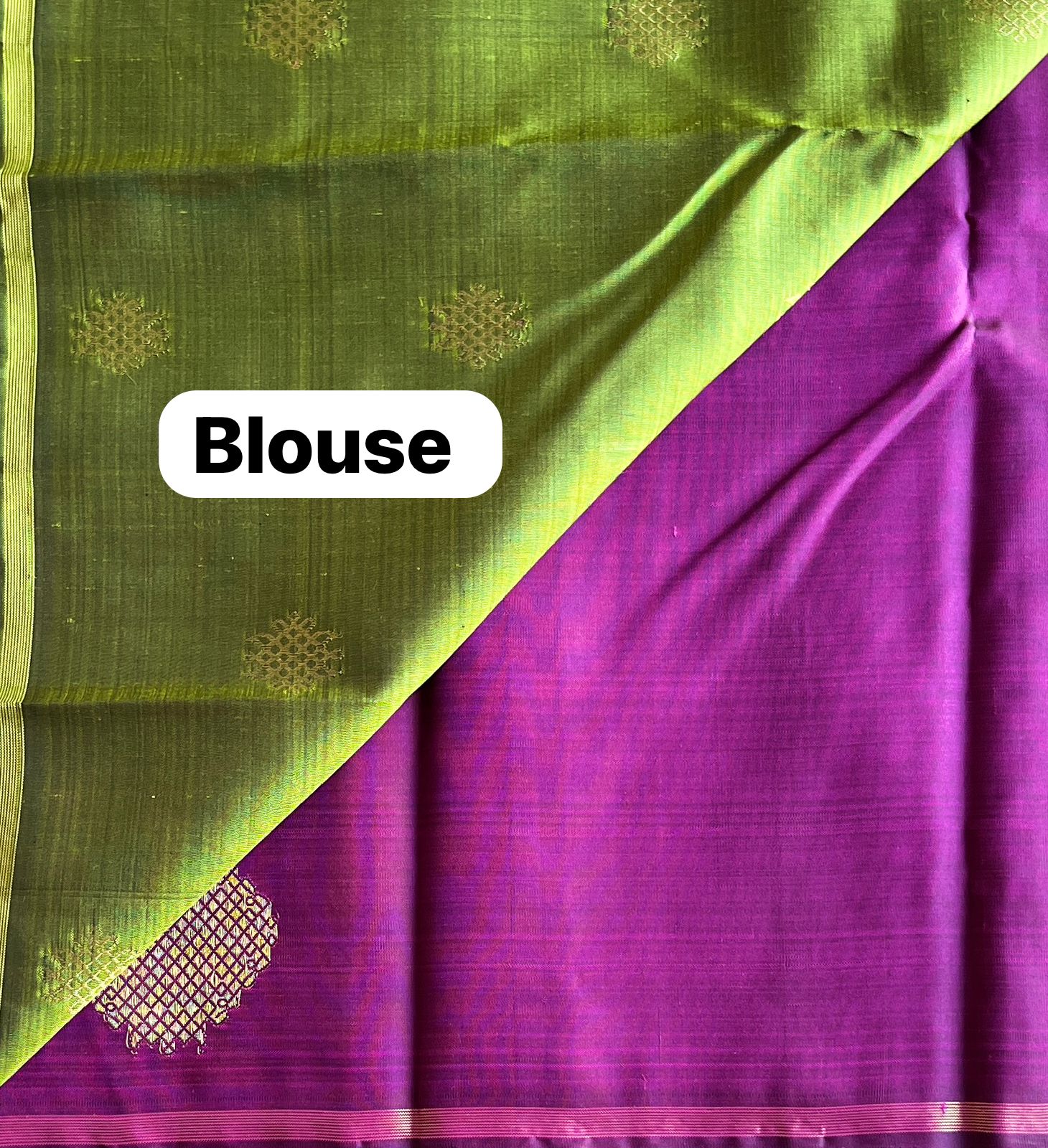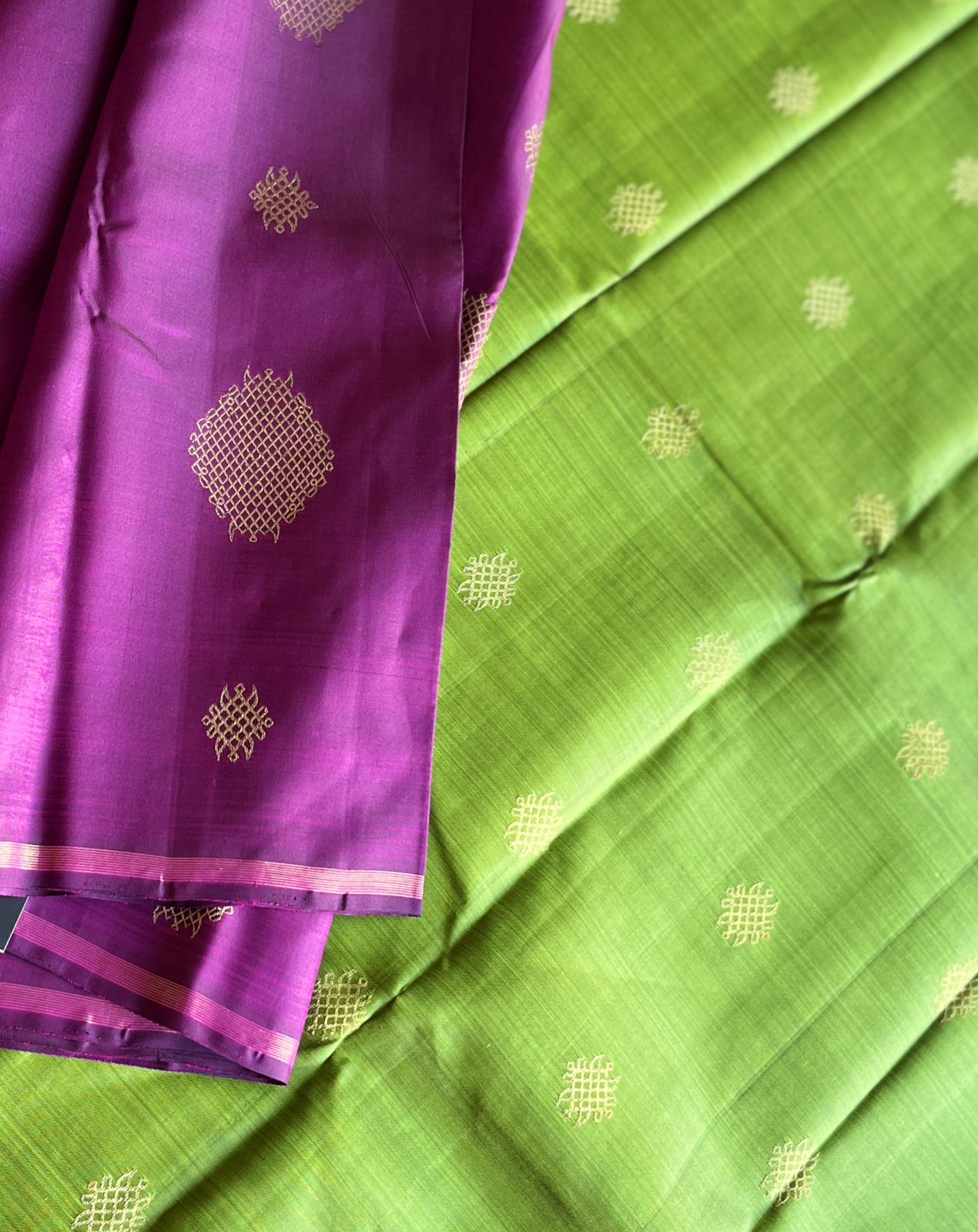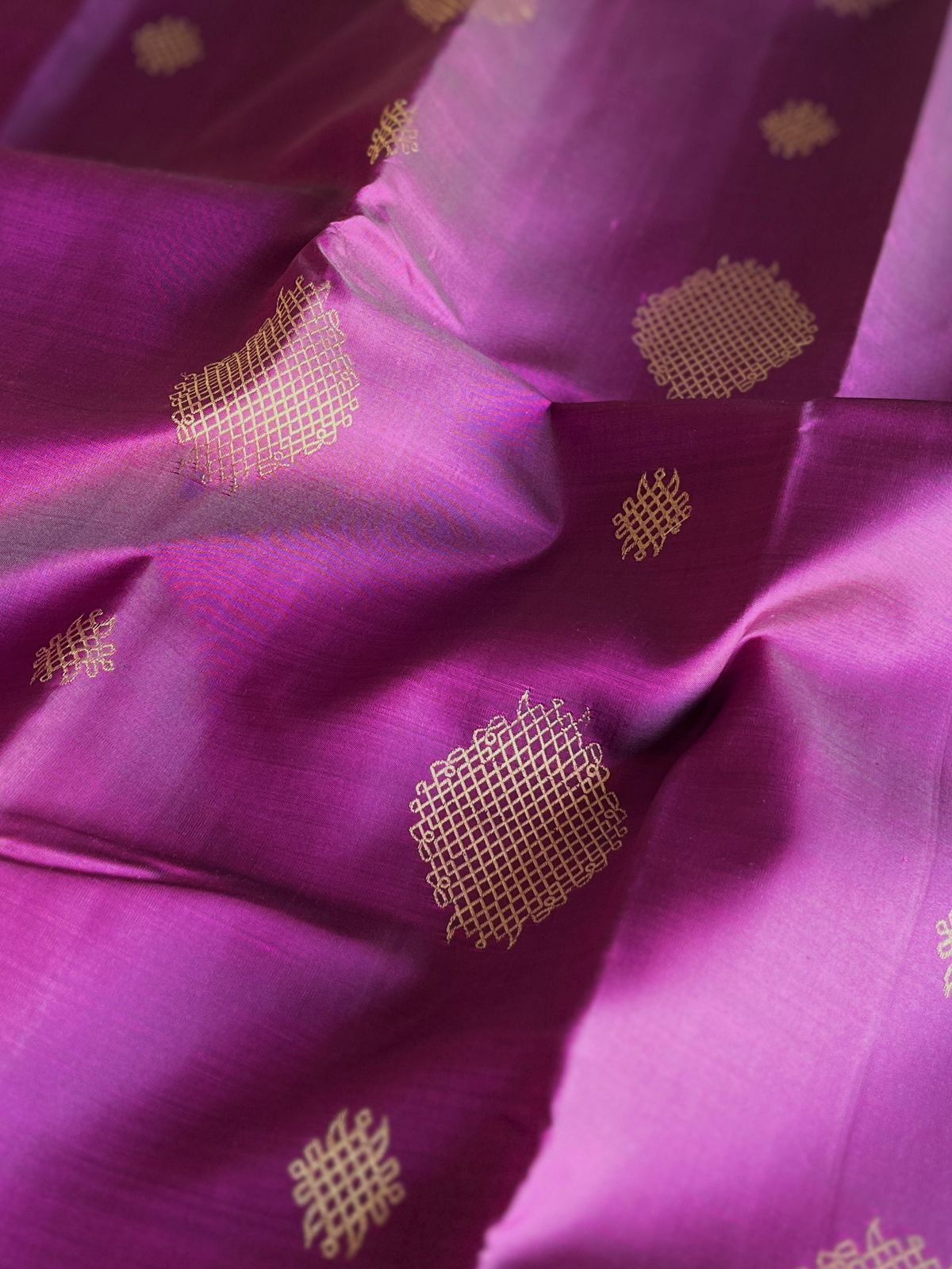 Handwoven All over Kolam Weave Pure Kancheevaram Silk Saree with Contrast Pallu and Blouse - Purple