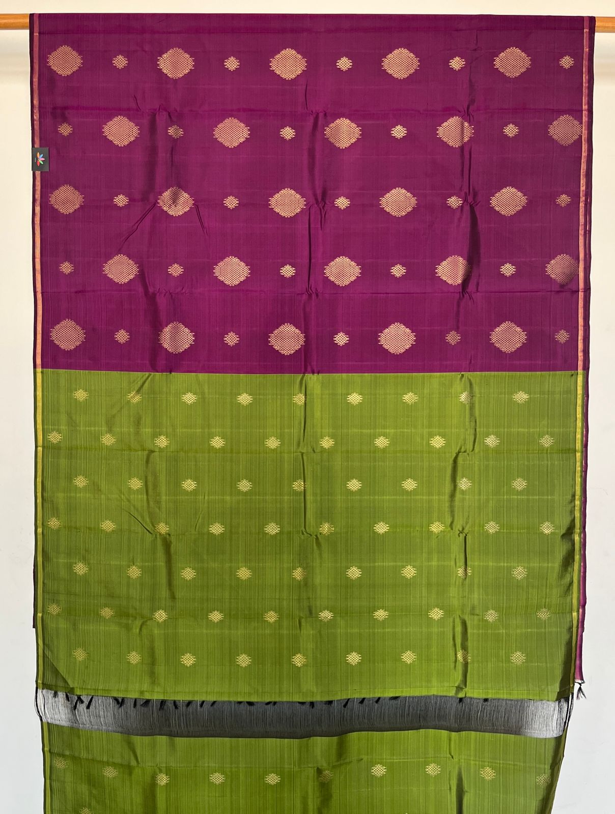 Handwoven All over Kolam Weave Pure Kancheevaram Silk Saree-2635