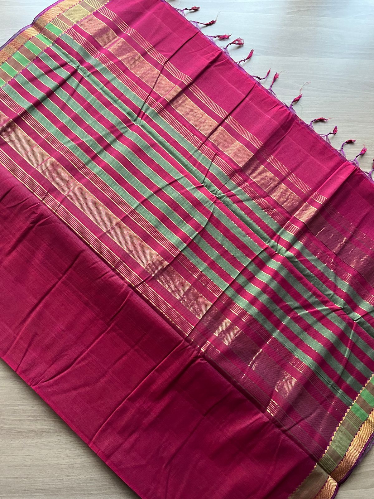 Handwoven Contrast Border Mangalagiri Cotton Saree -14807-14809