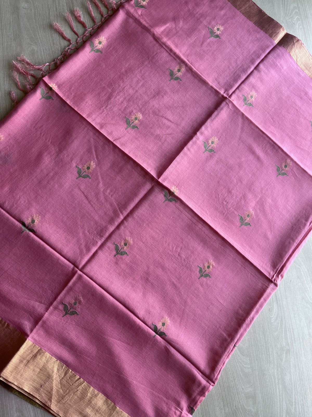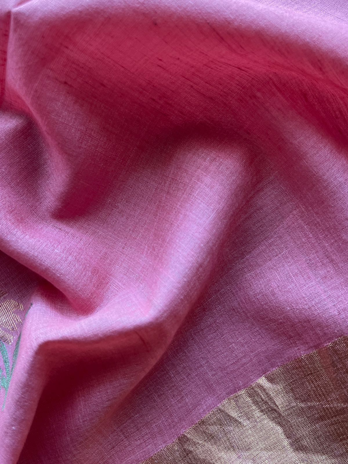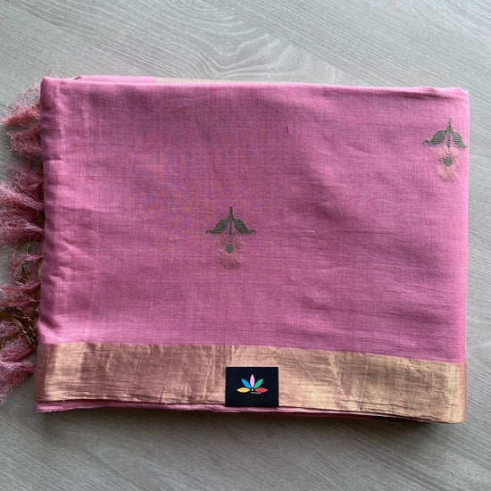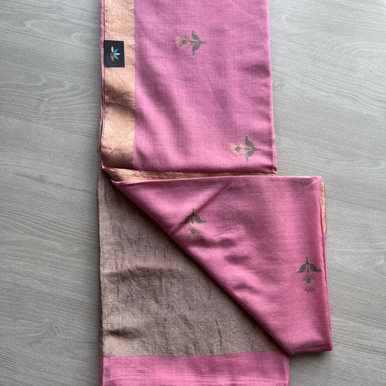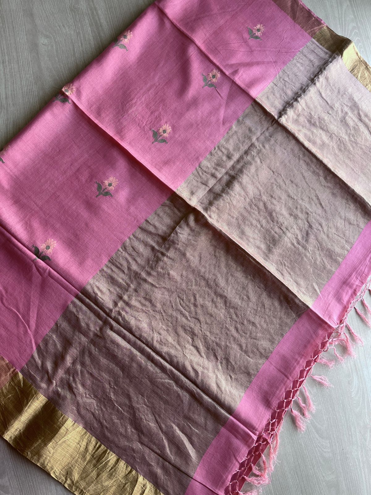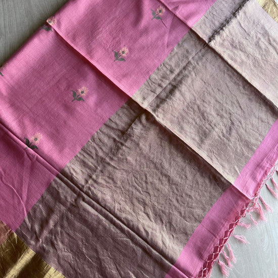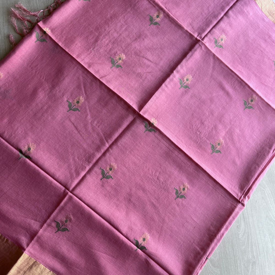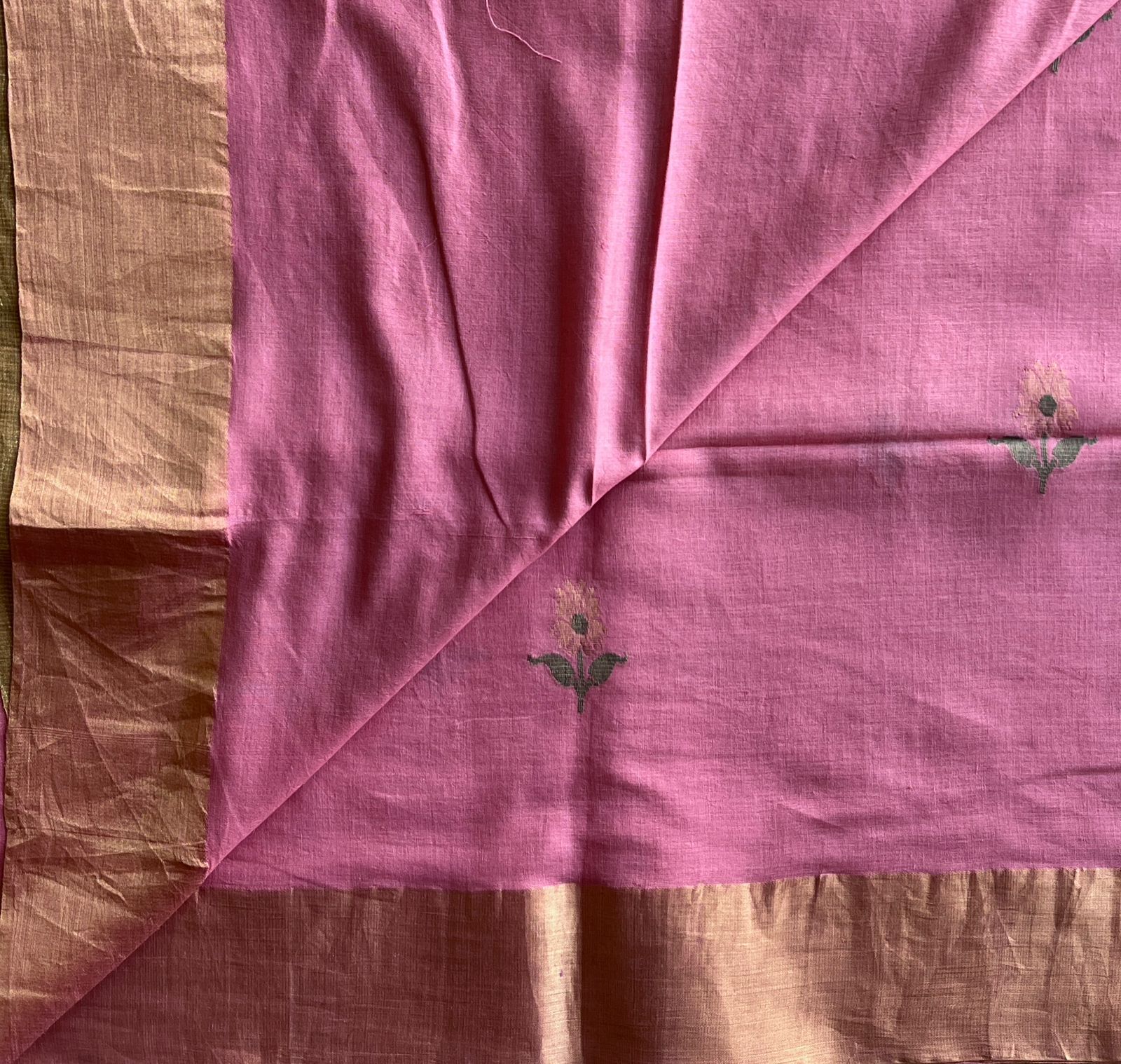 Handwoven Fine Cotton Silk Saree with Floral Butta