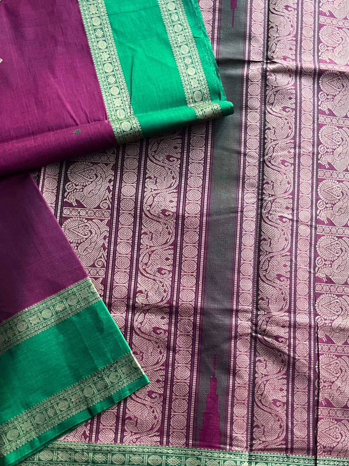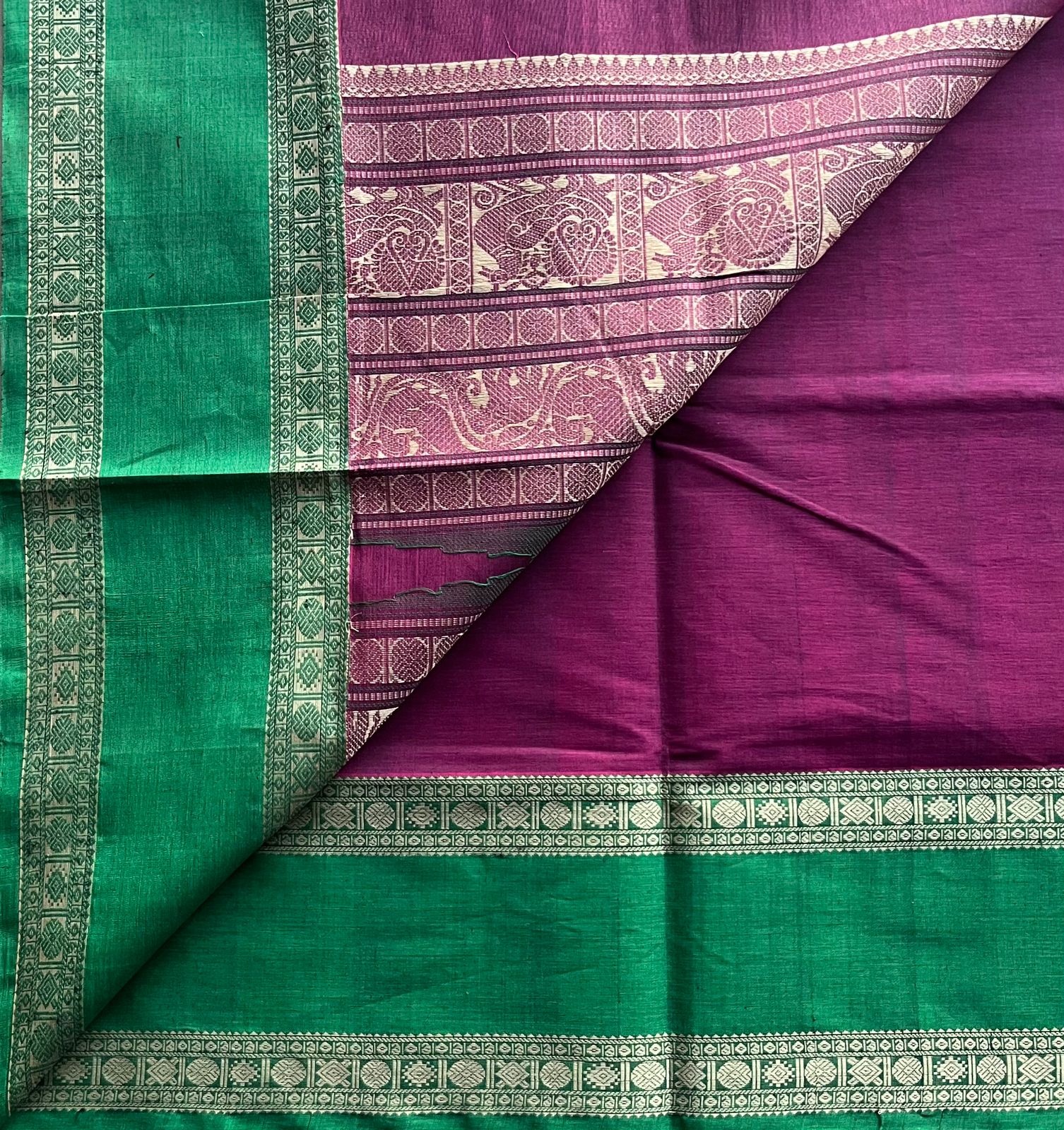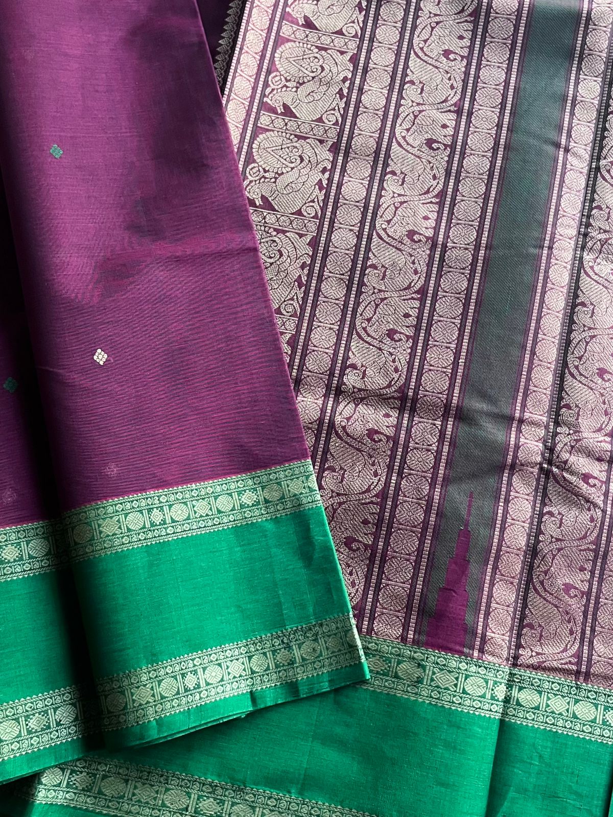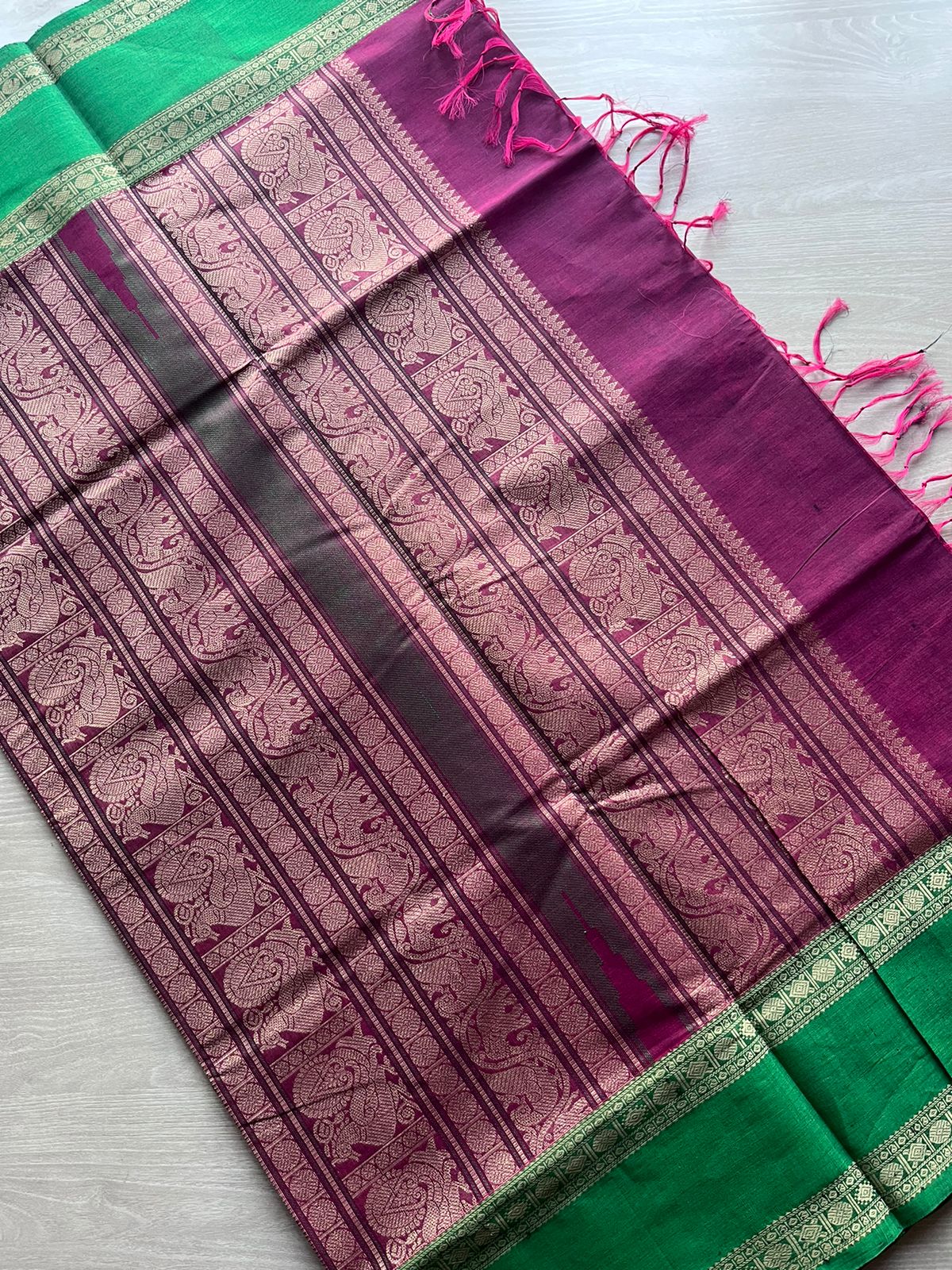 Handwoven Kanchi cotton saree with stunningly woven pallu