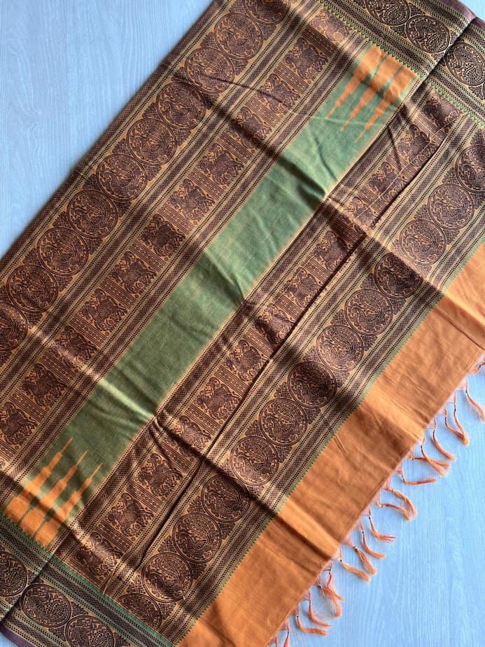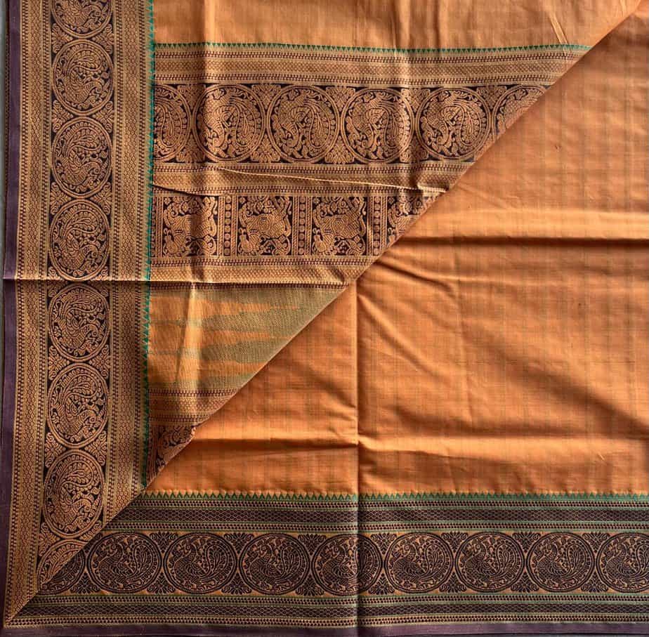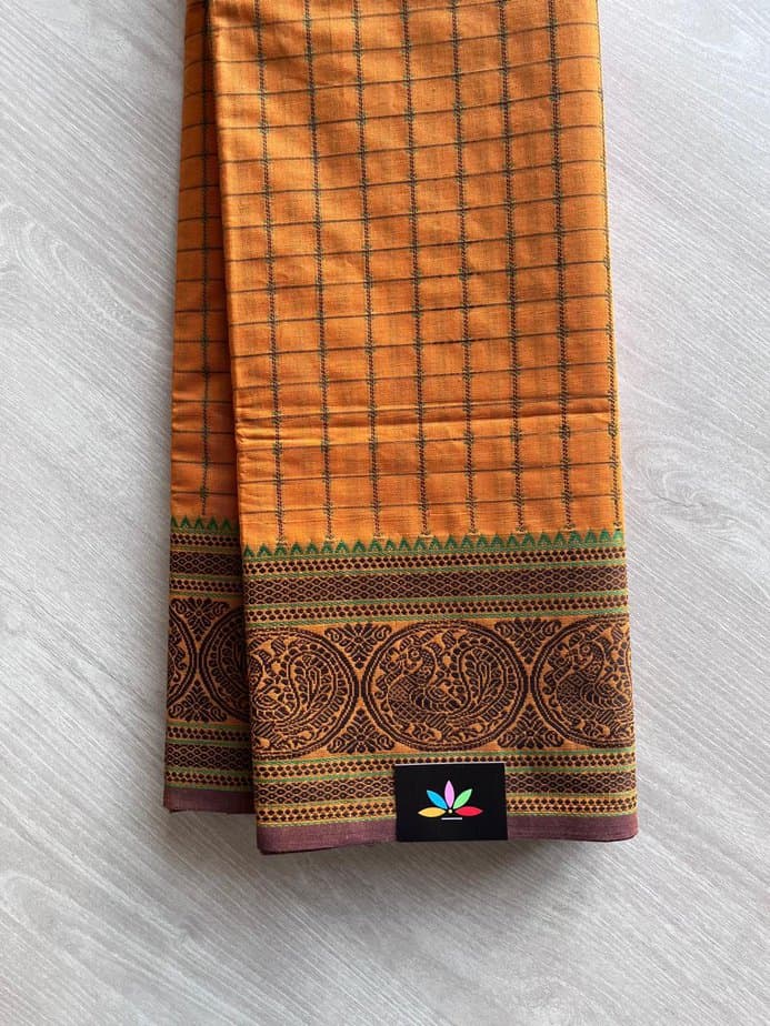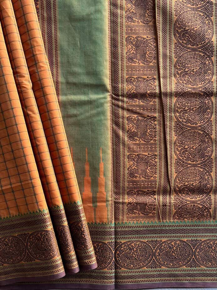 Mustard Annam Border Handloom Kanchi Cotton Saree