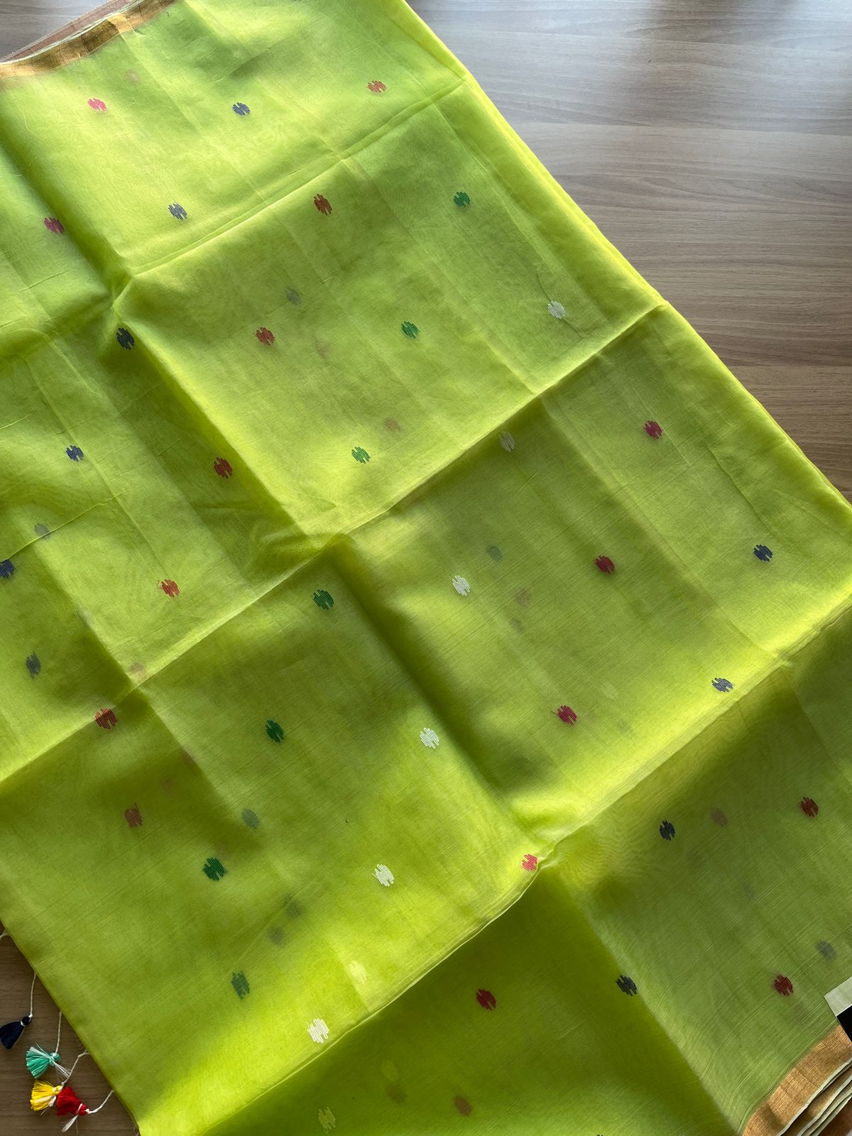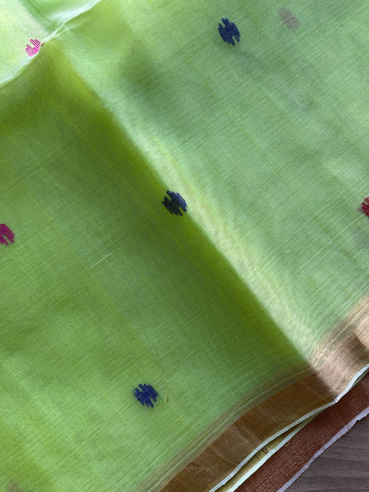 Handwoven Muslin Silk Jamdani Saree with Paithani Design Pallu