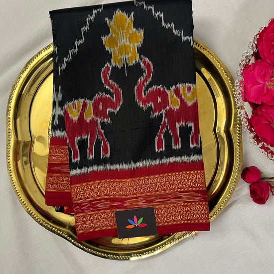 Handwoven Black Elephant Weave Orissa Ikkat Silk Saree