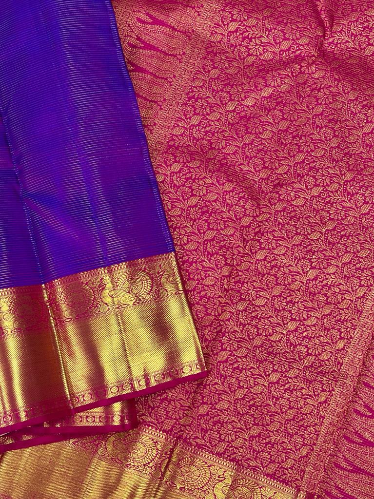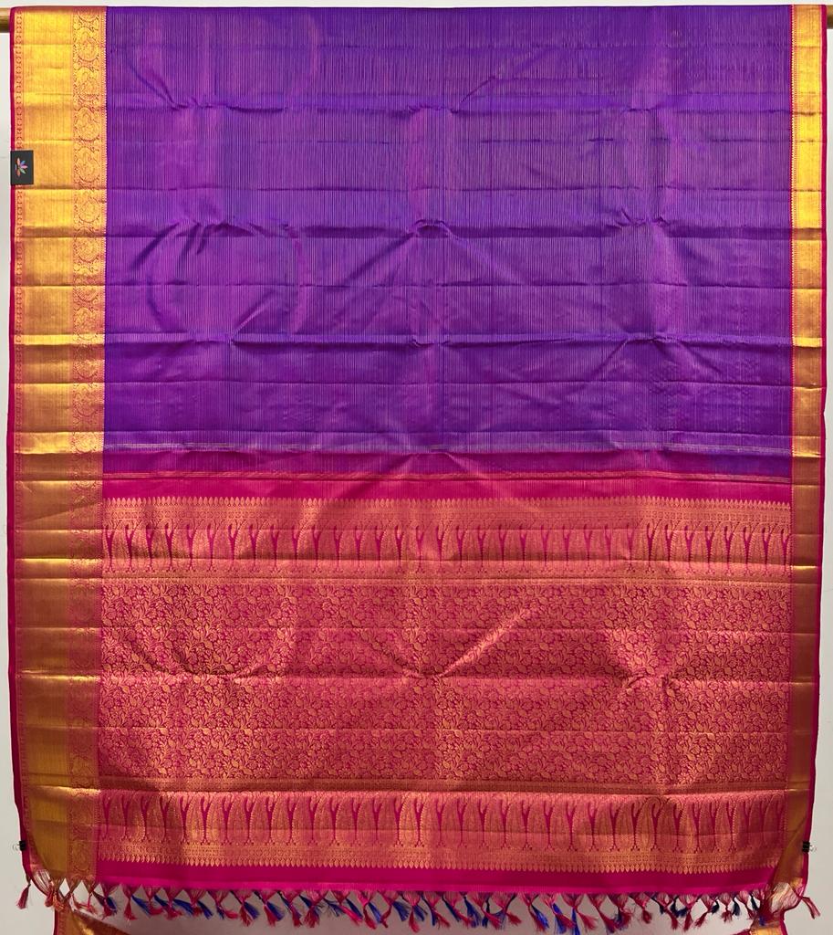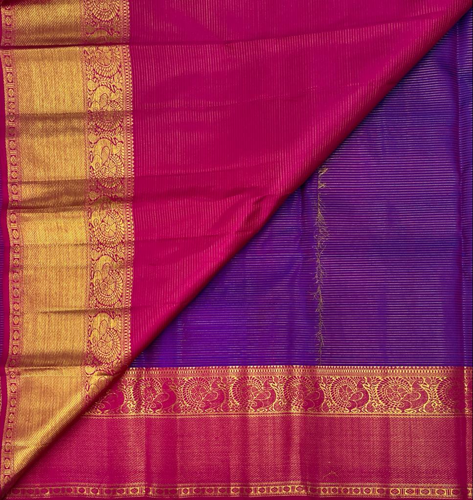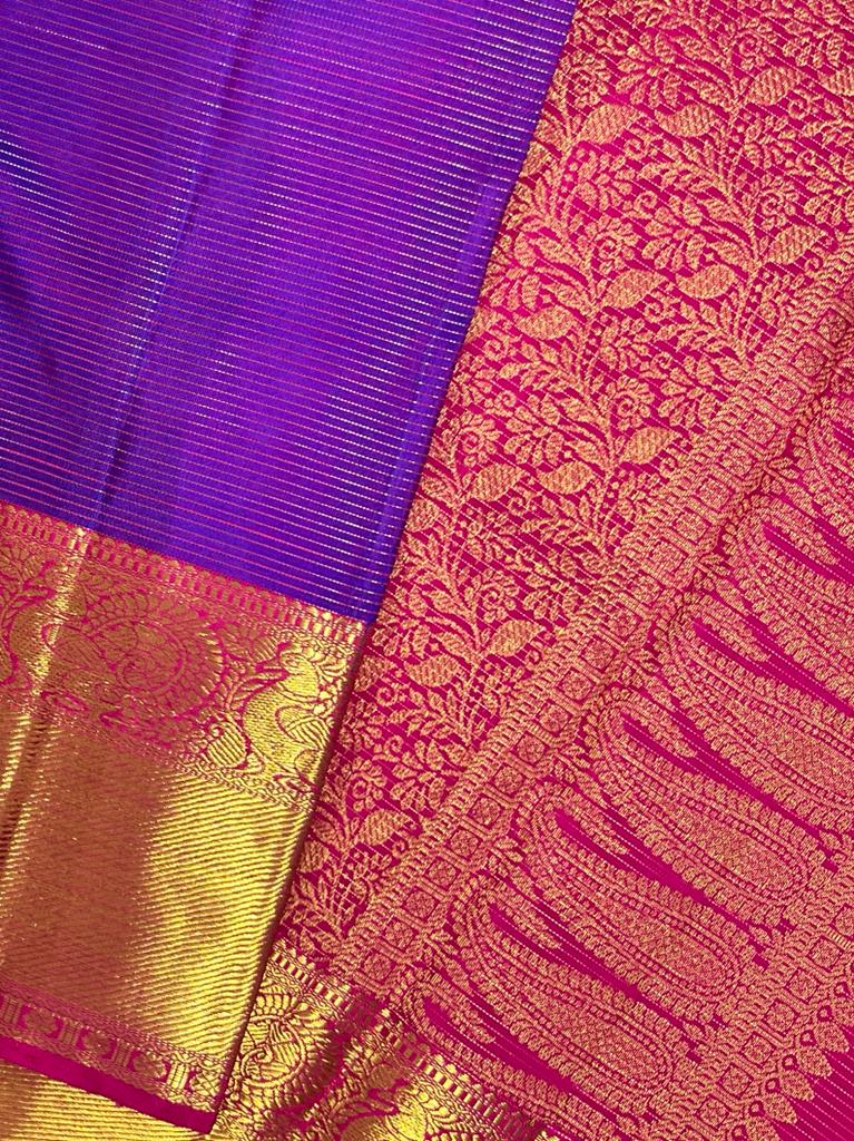 Handwoven Zari Stripes Kancheevaram Silk Saree with Traditional Annam Border -102A