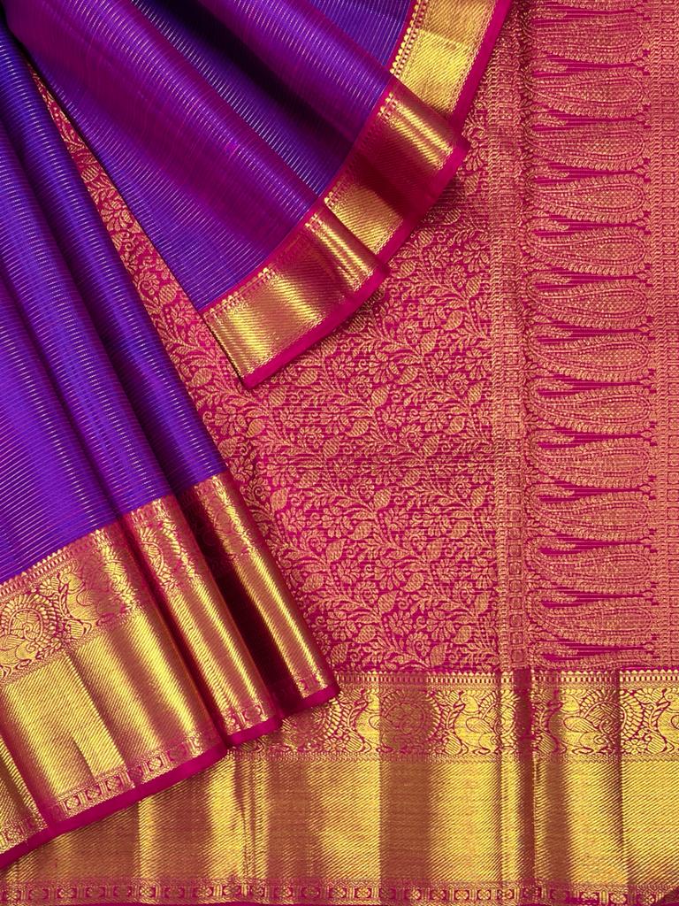 Handwoven Zari Stripes Kancheevaram Silk Saree with Traditional Annam Border and Rich Zari Woven Pallu