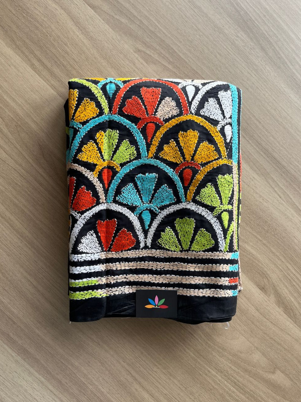 Kantha Stitch Semi Bangalore Silk Saree - 20619