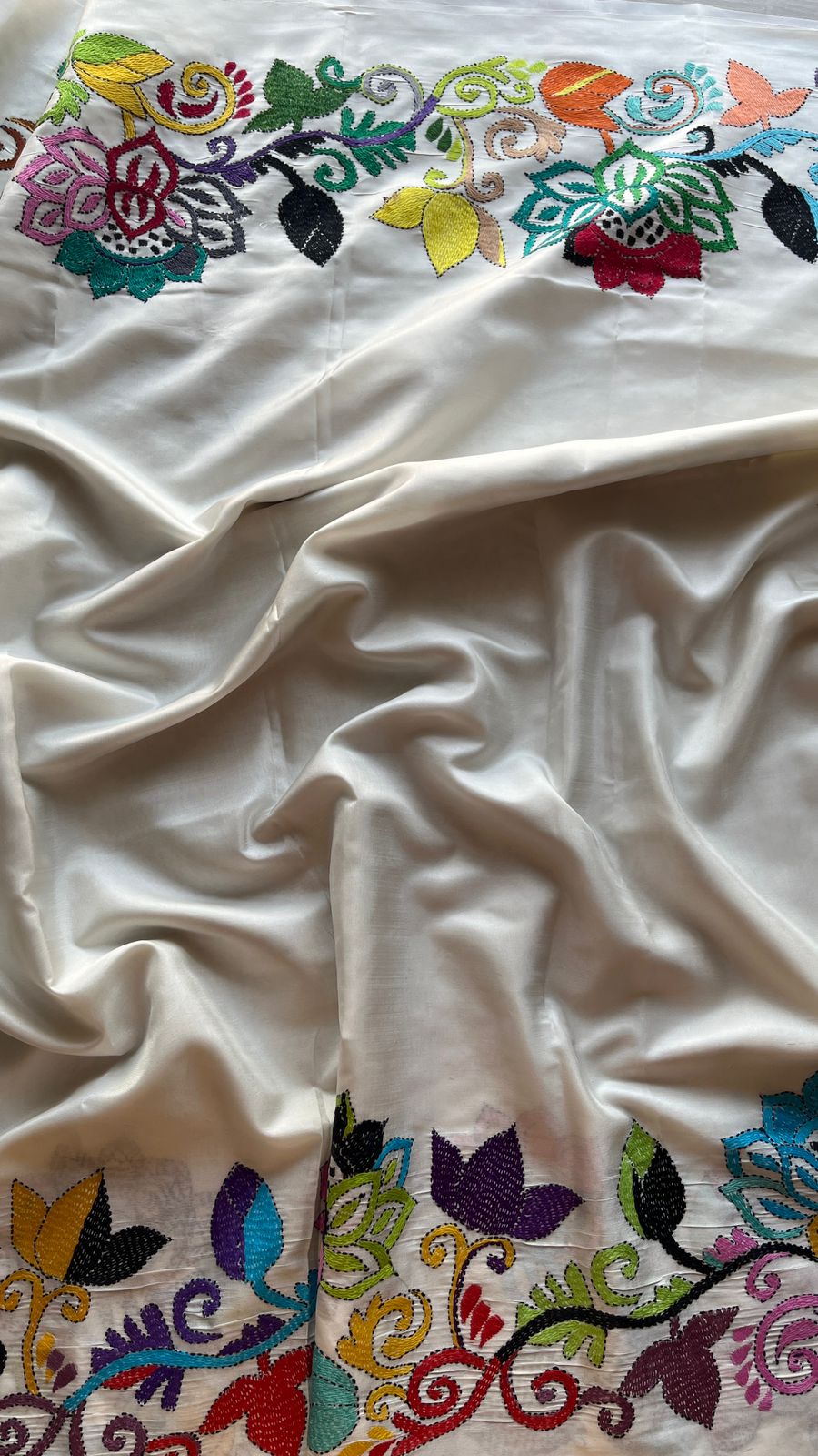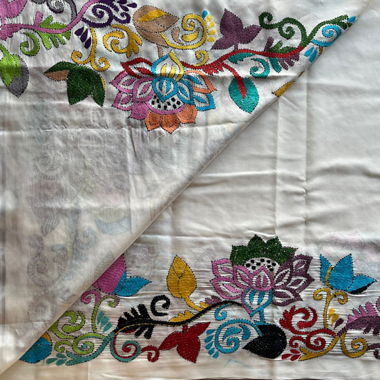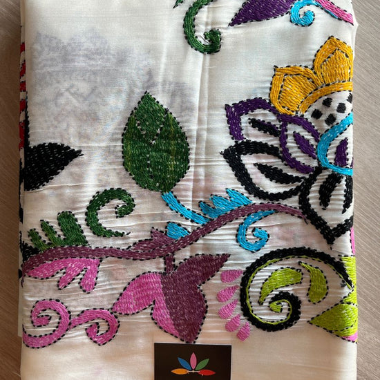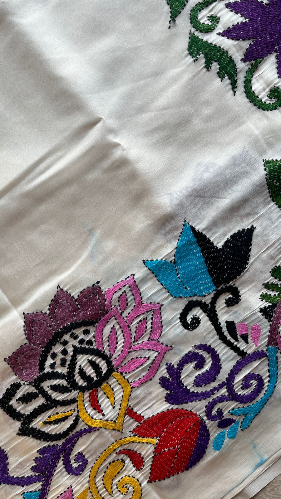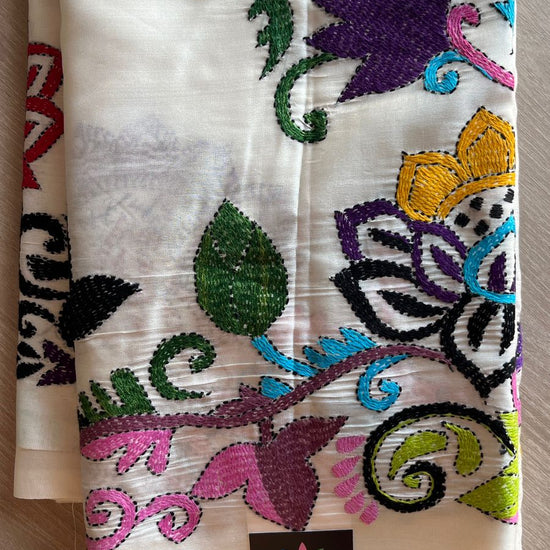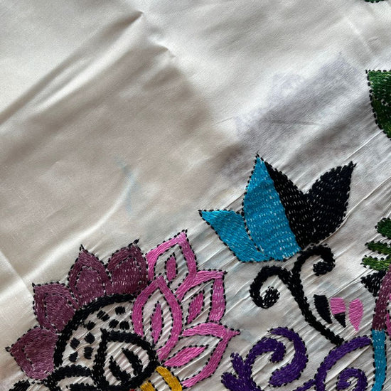 Kantha Stitch Semi Bangalore Silk Saree - 25817