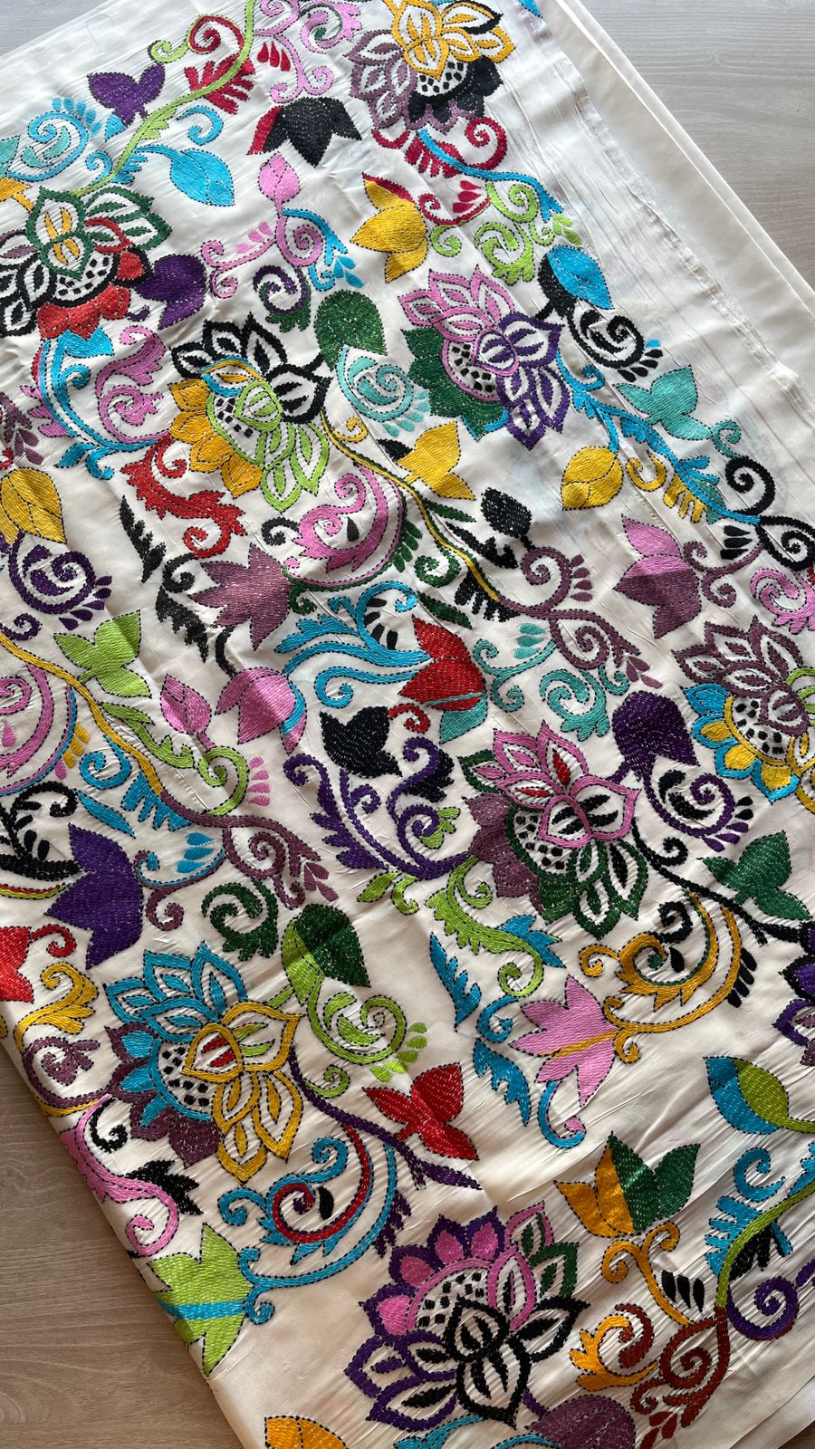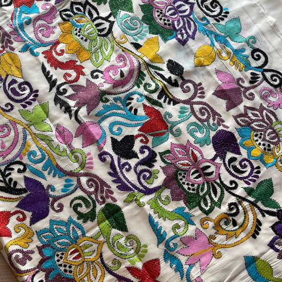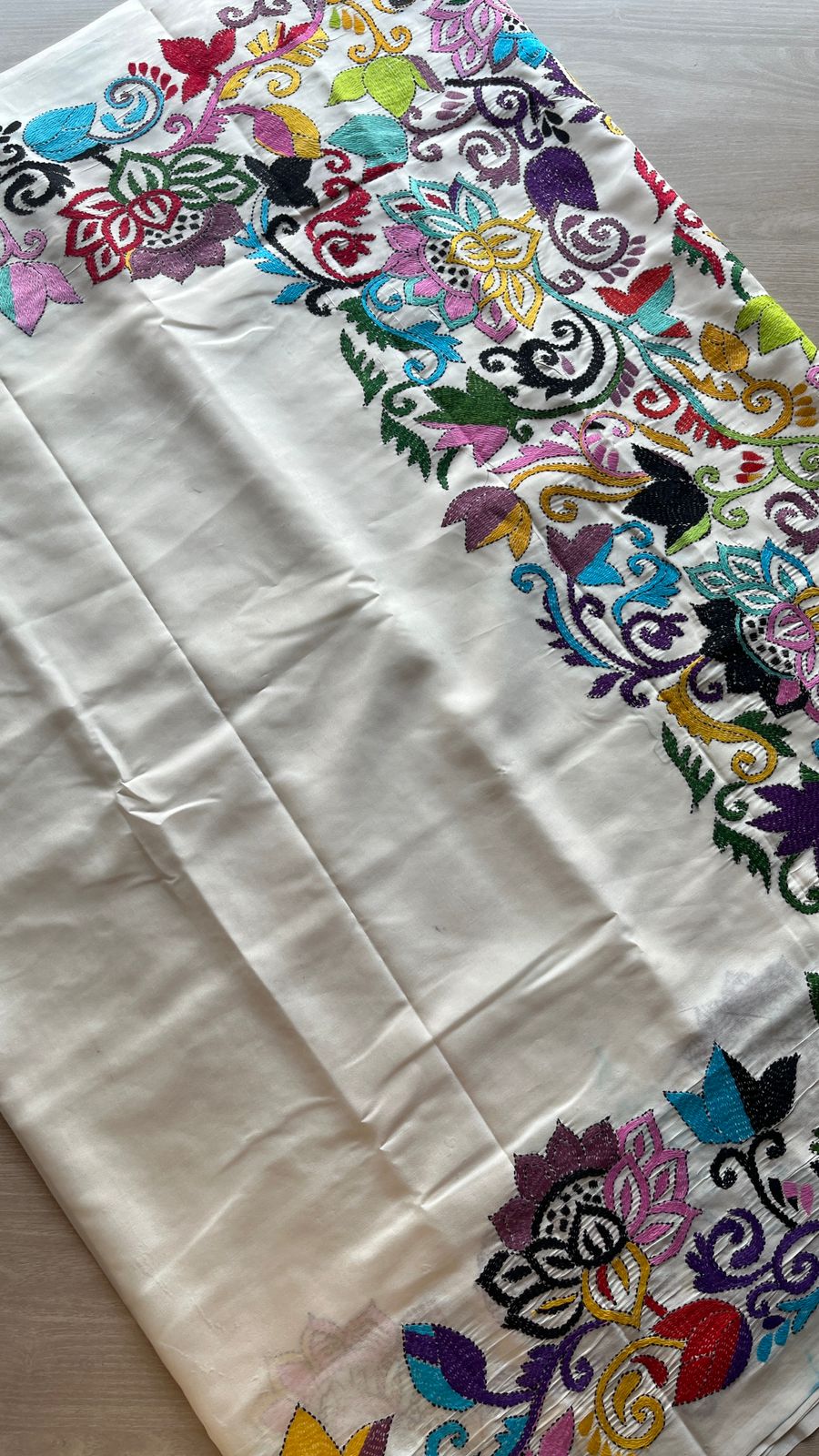 Kantha Stitch Semi Bangalore Silk Saree - 25817