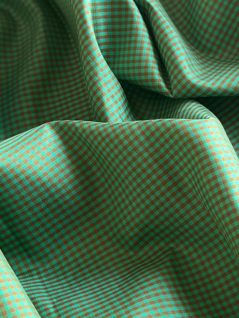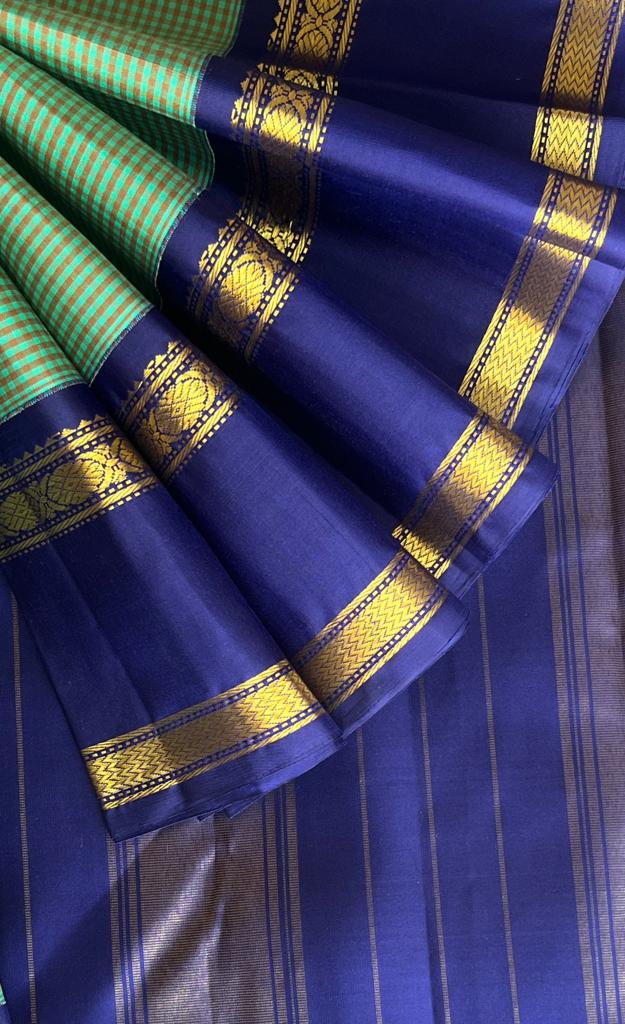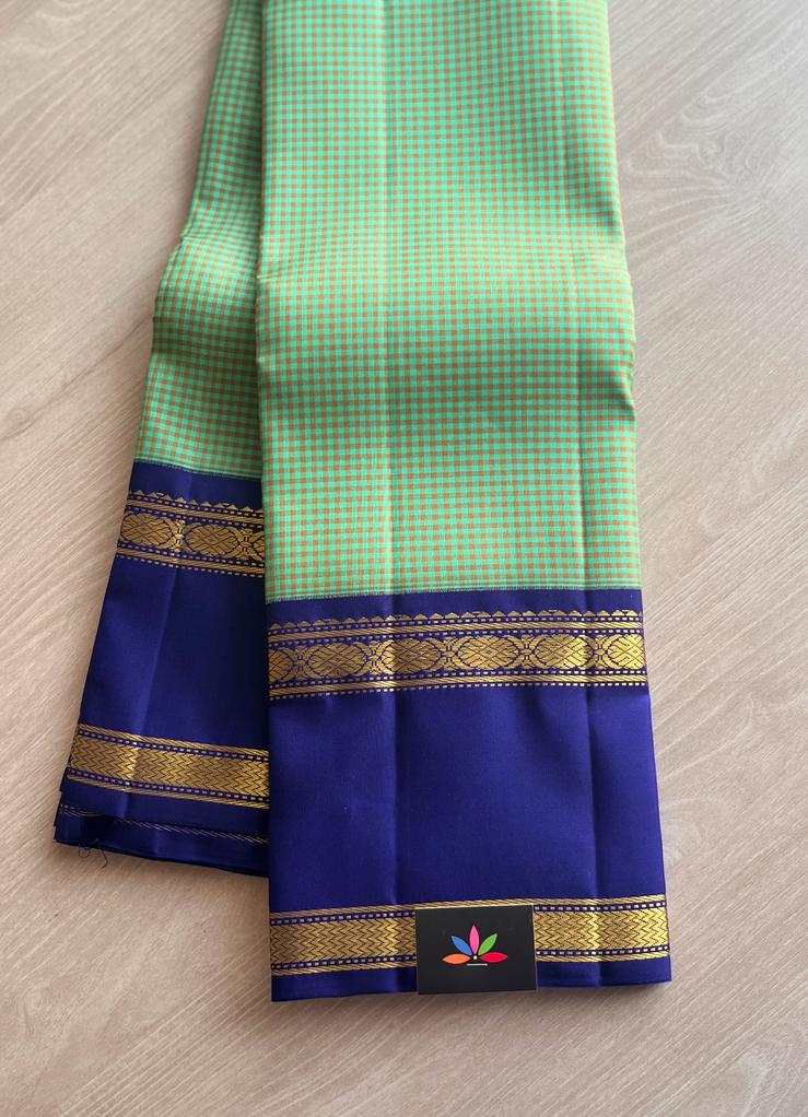 Color: Mint Green with Rust Checks and Contrast Royal Blue Border with Gold Zari