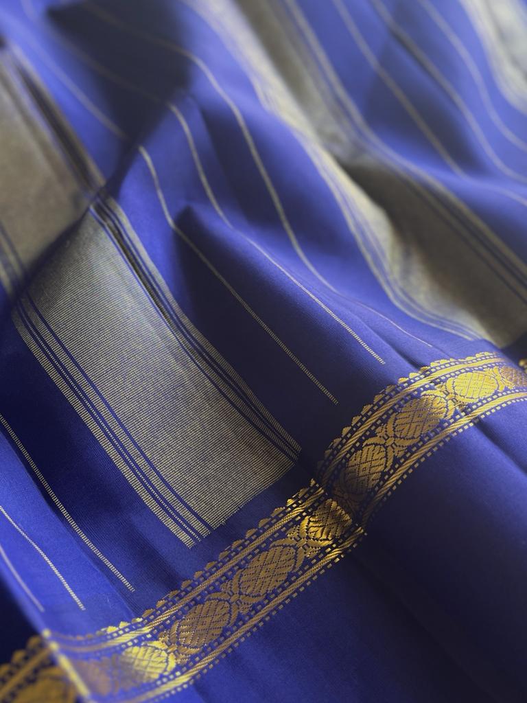 Blouse: Contrast royal blue blouse with zari border (unstitched)