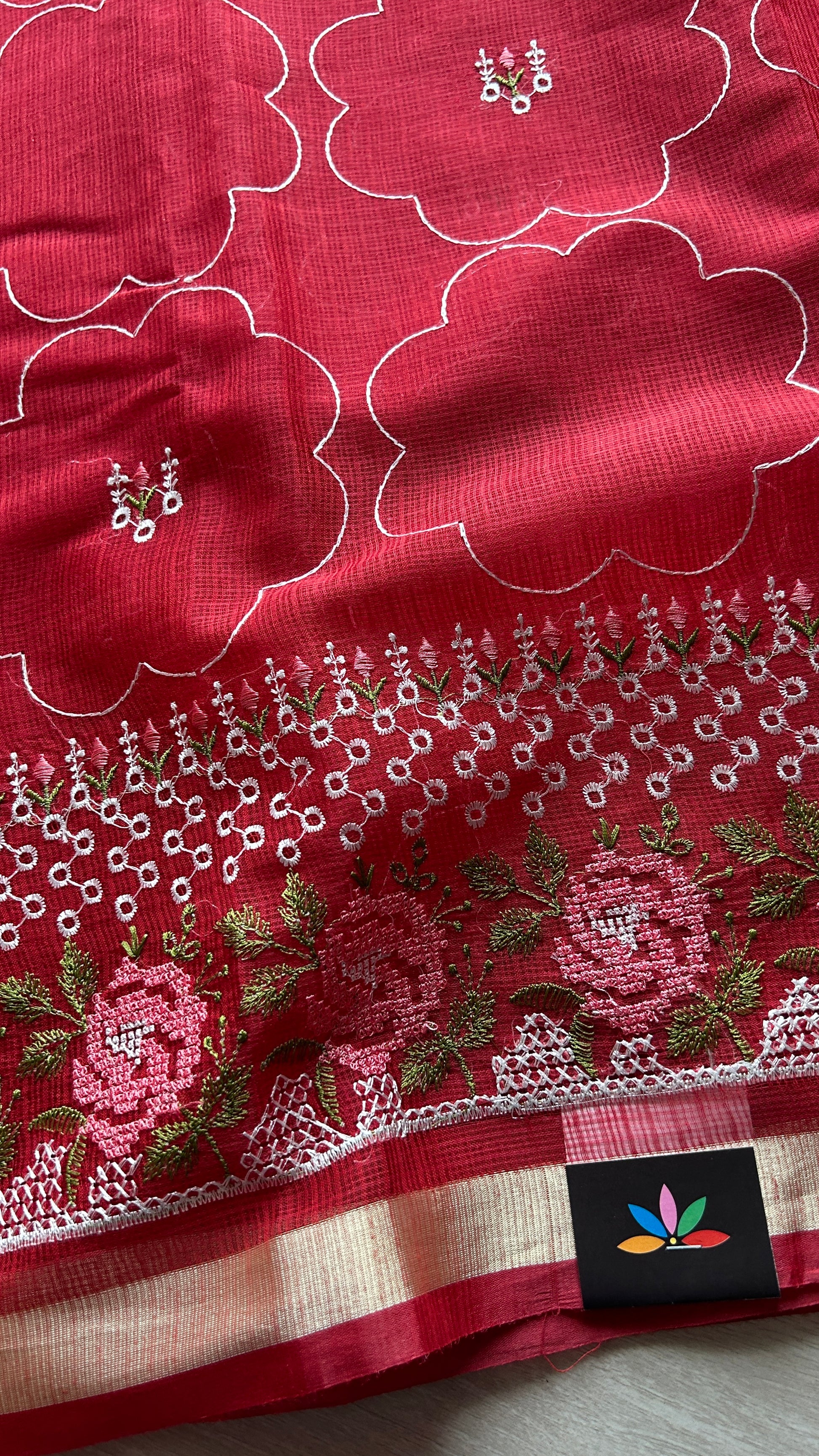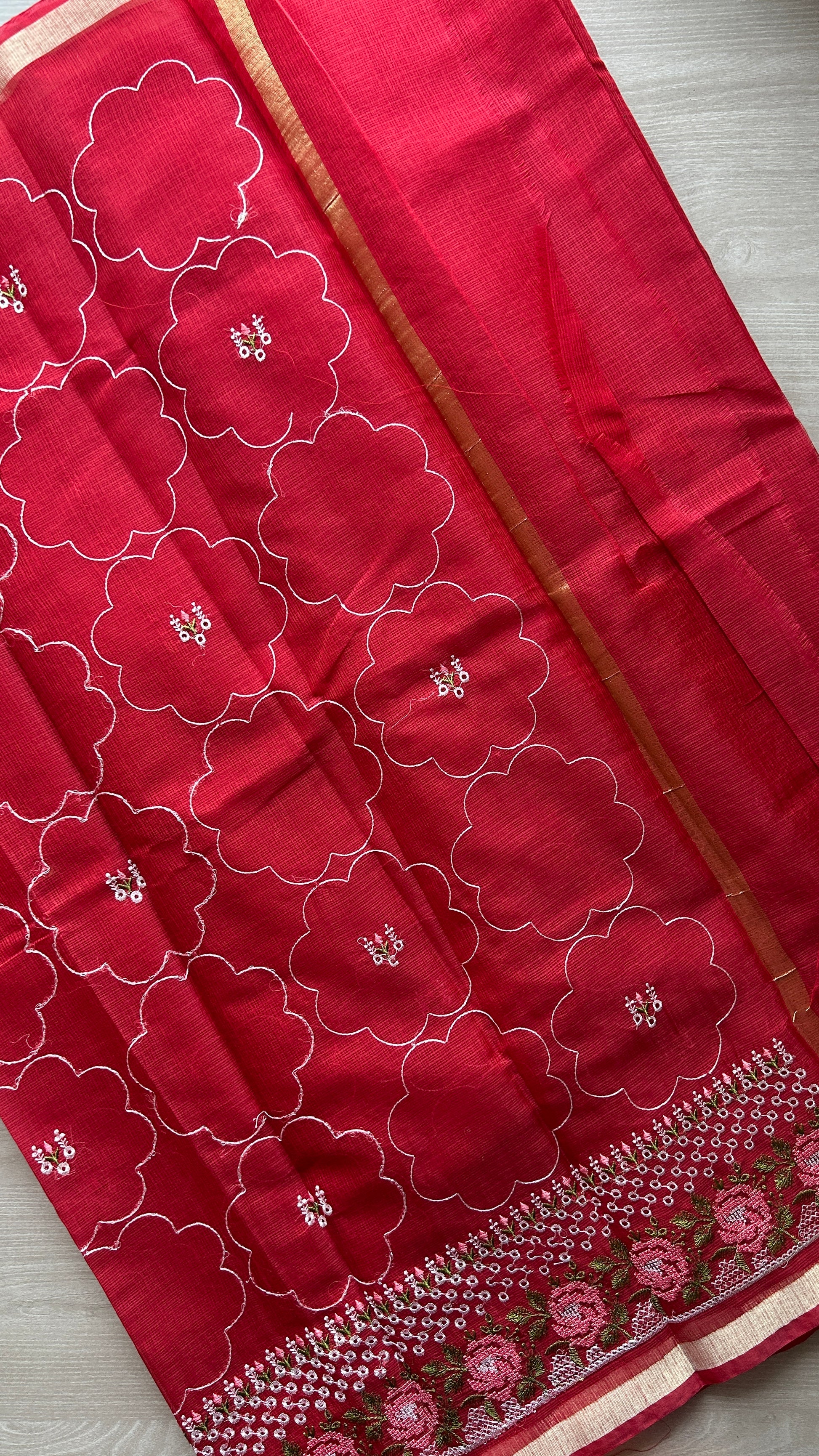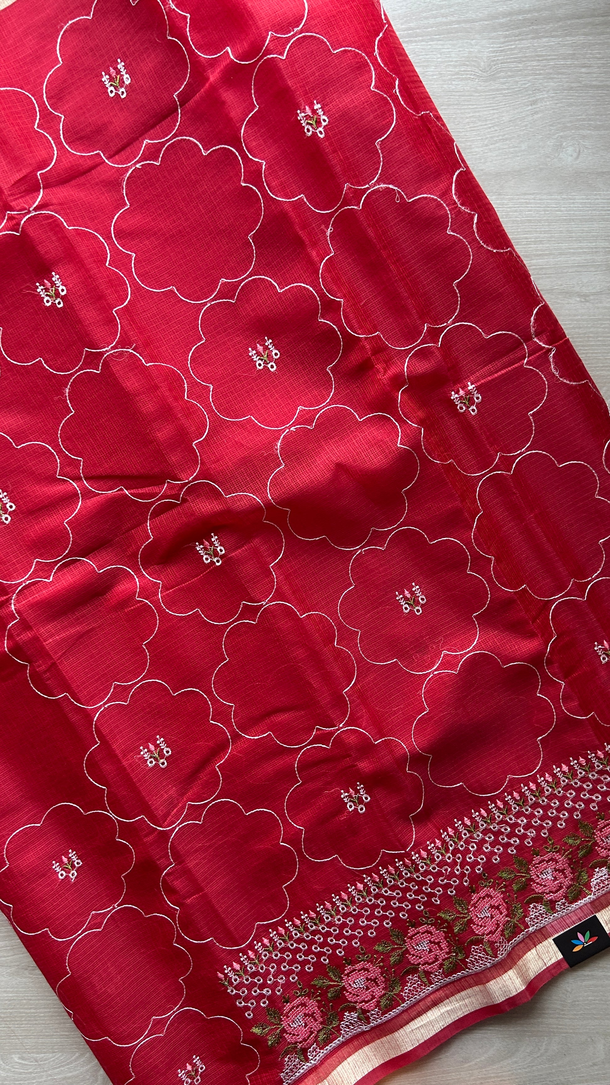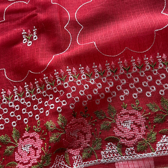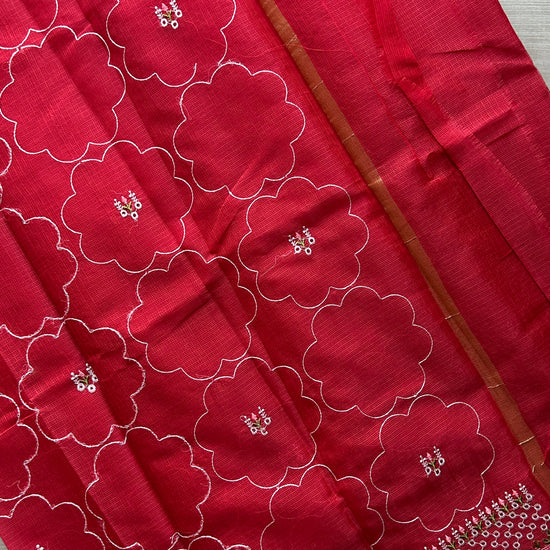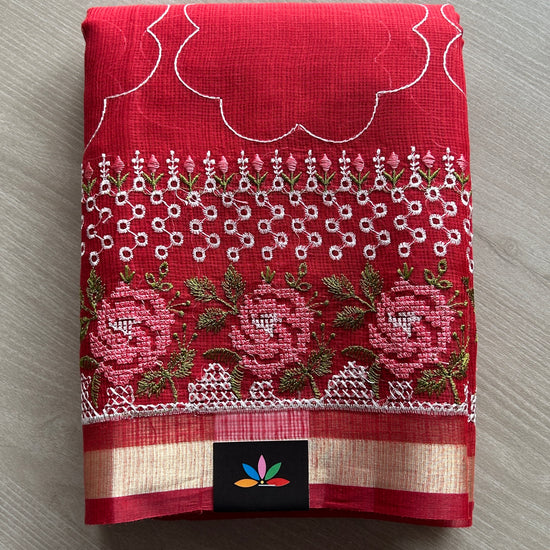Machine Embroidered Blended Kota Saree
