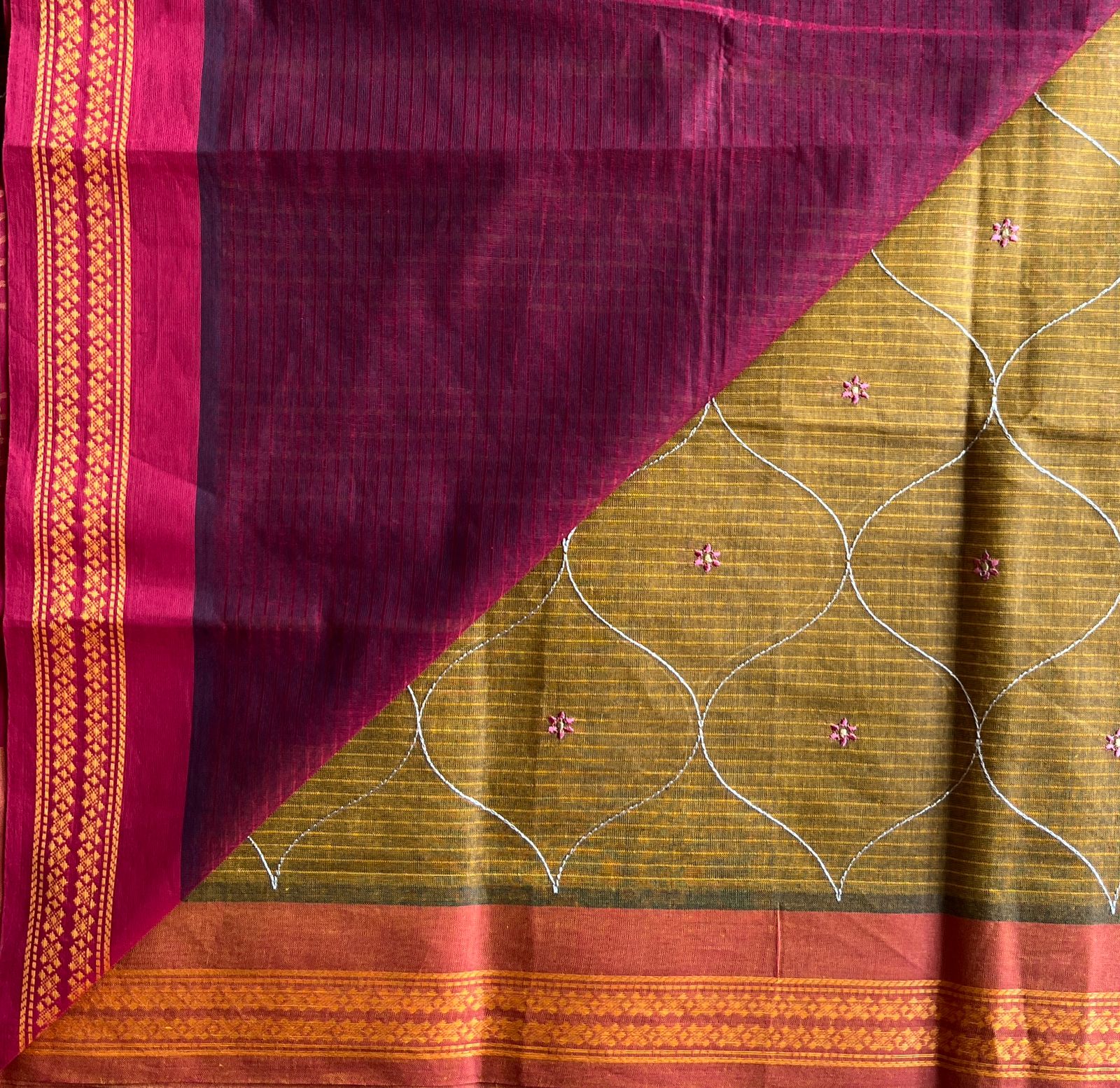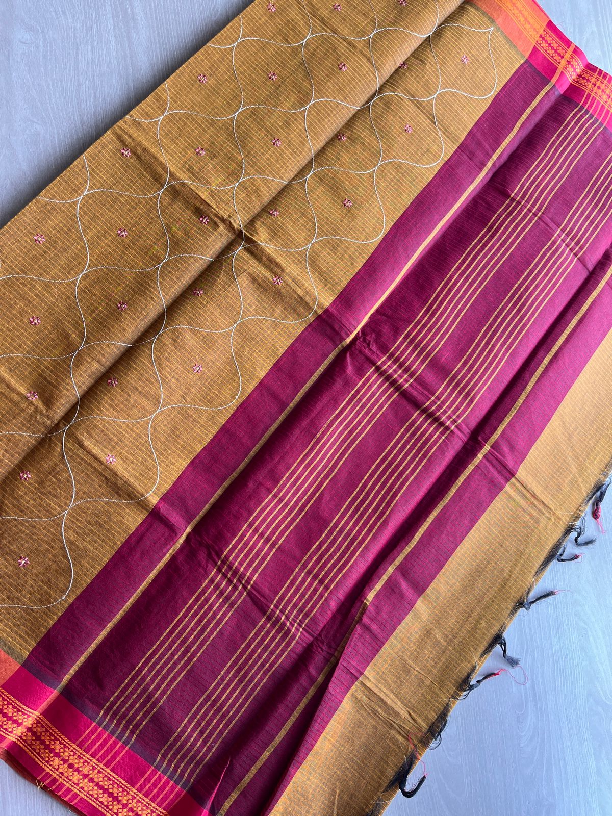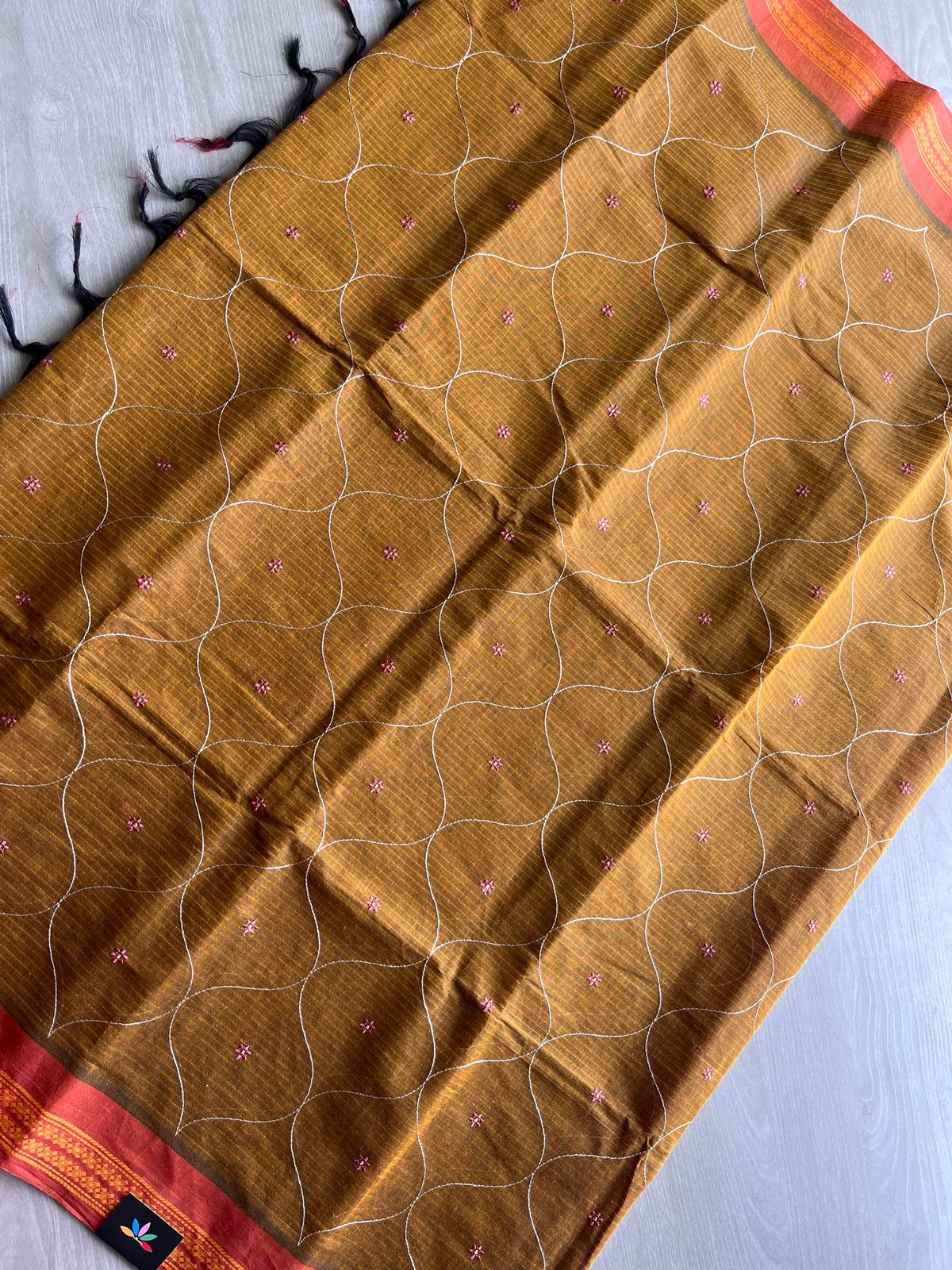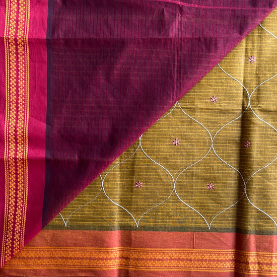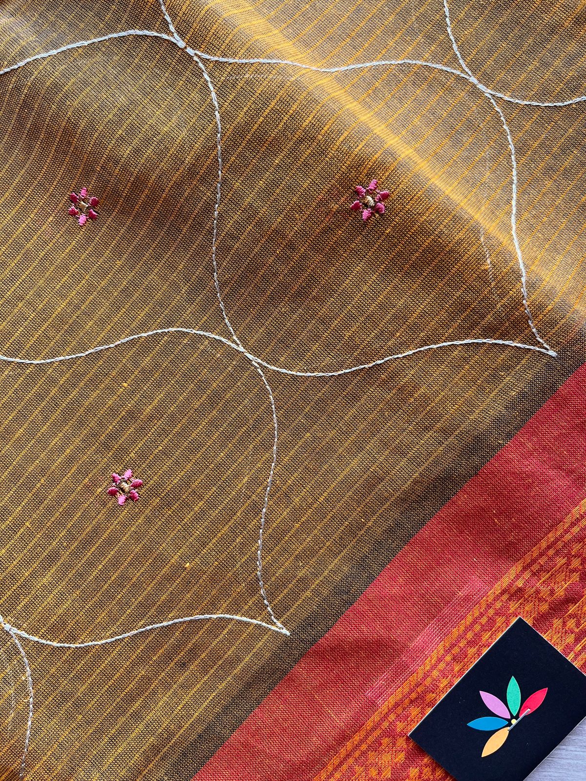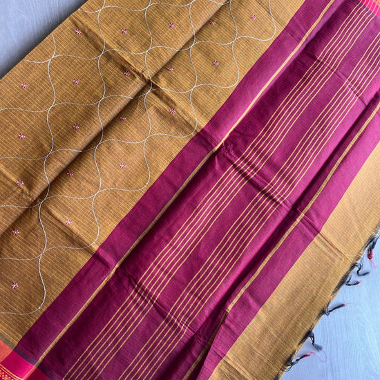 Machine Embroidered Cotton Saree